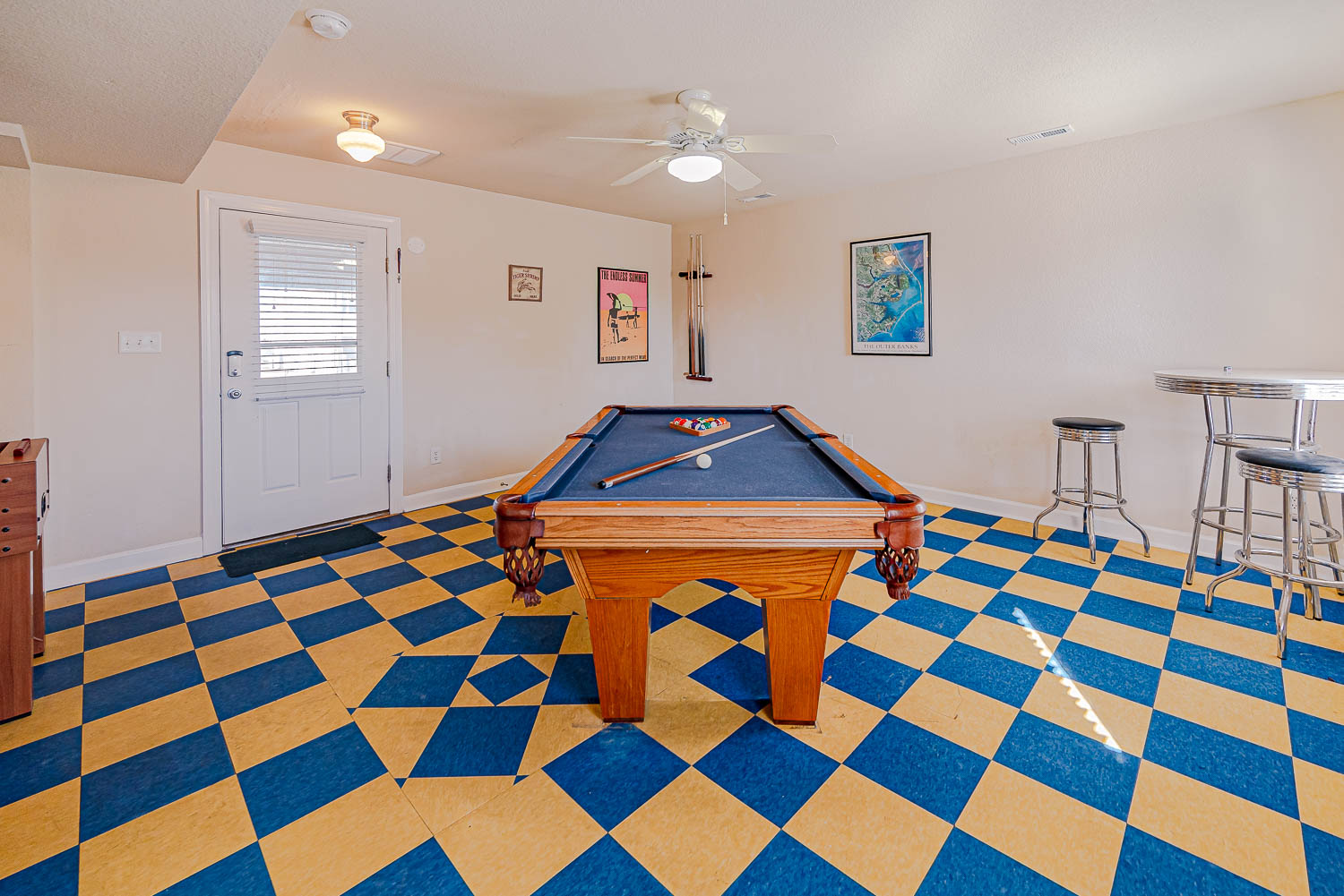 Ground Level: Parking for 4 Cars, Covered Entry, Rec. Room w/Pool Table, Foosball Table, Storage Room, Outside Shower, Charcoal Grill, and Fence.