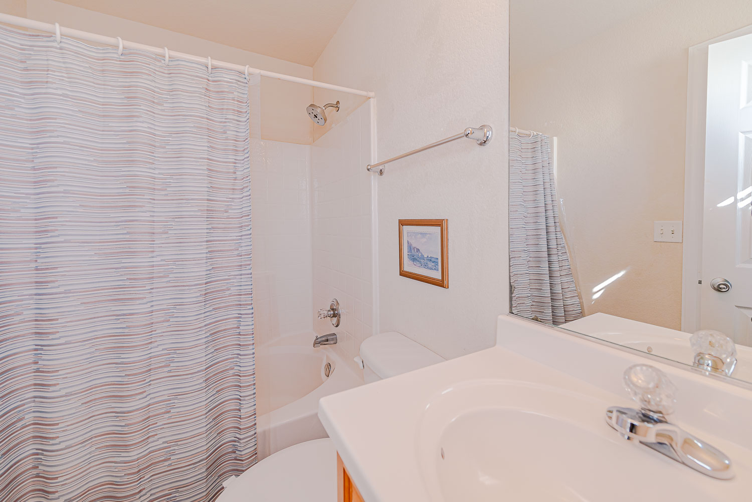Mid Level: 3 Bedrooms (2 Private Suites w/Kings, TVs, Full Baths; 1 w/Duo Bunk, TV), Full Hall Bath, Utility Room, and Covered Deck, Furniture, and Hot Tub w/Privacy Enclosure.
