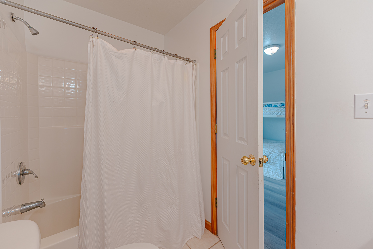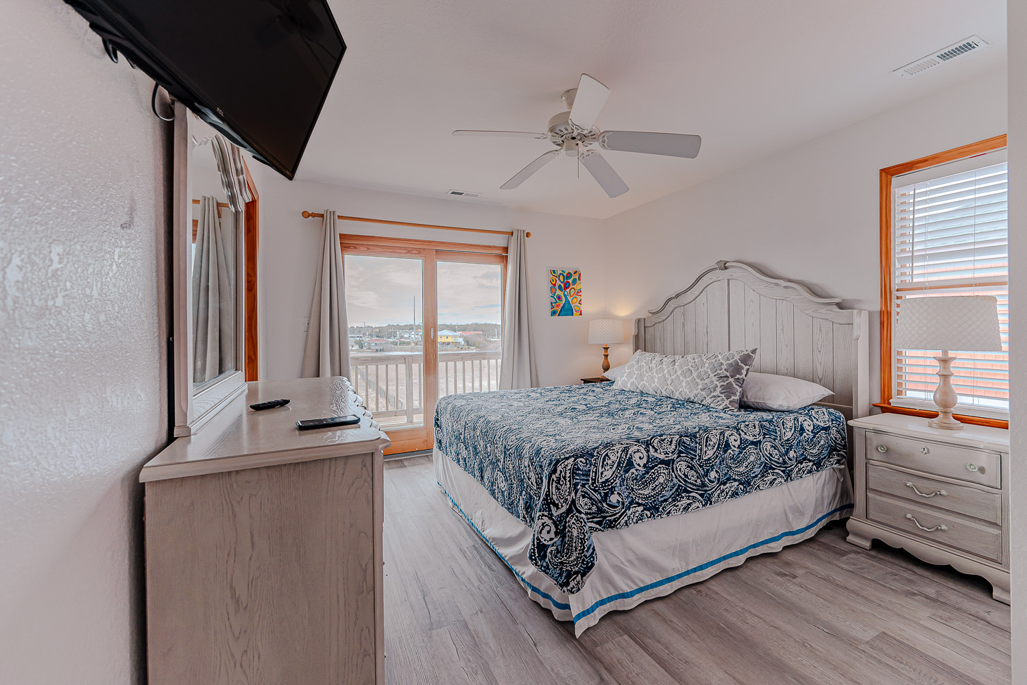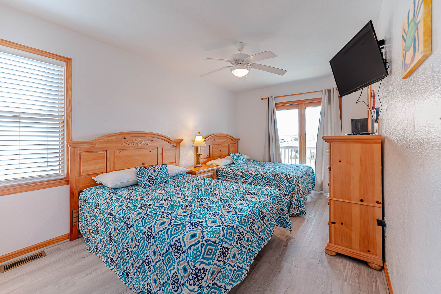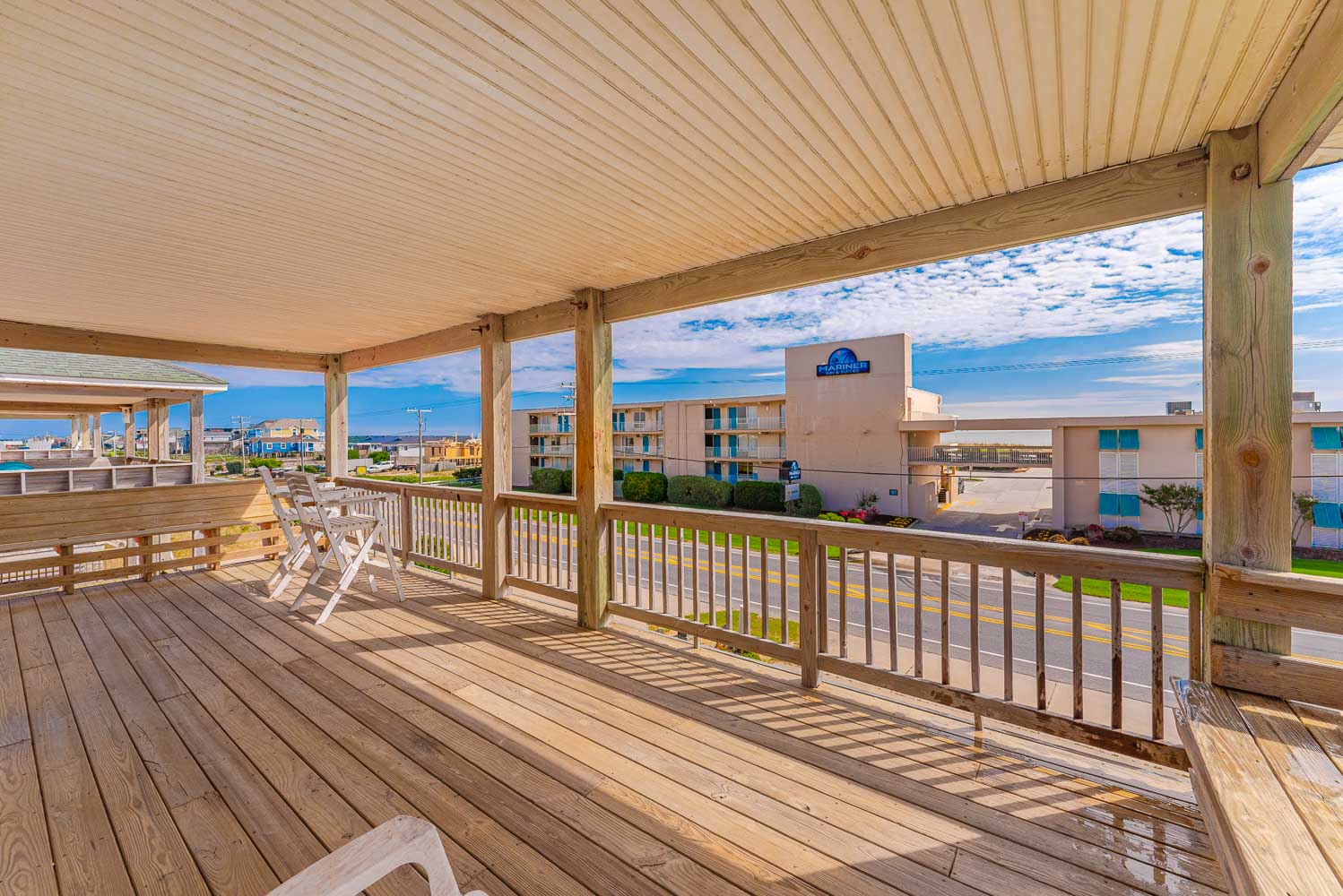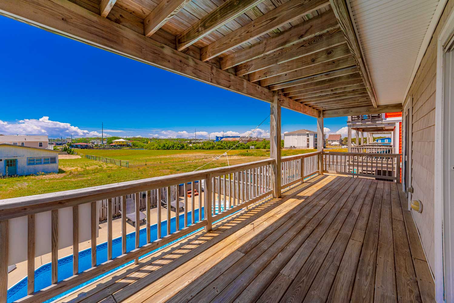 Mid Level: 4 Bedrooms (2 Private Suites w/Queens, Full Baths, & Smart TV, 1 w/2 Doubles, Full Bath, & Smart TV, 1 w/2 Duo Bunks, Full Bath & Smart TV), Front Covered Deck w/Deck Furniture, & Back Covered Deck w/Deck Furniture Overlooking Pool Area.
