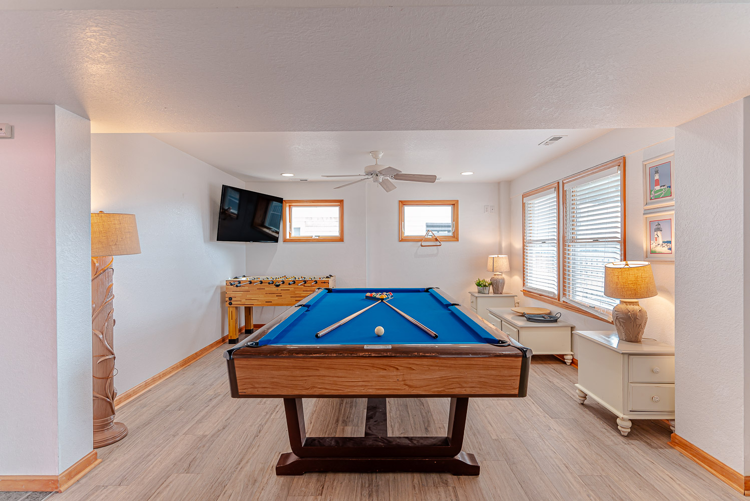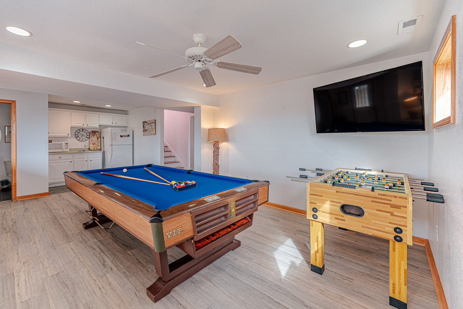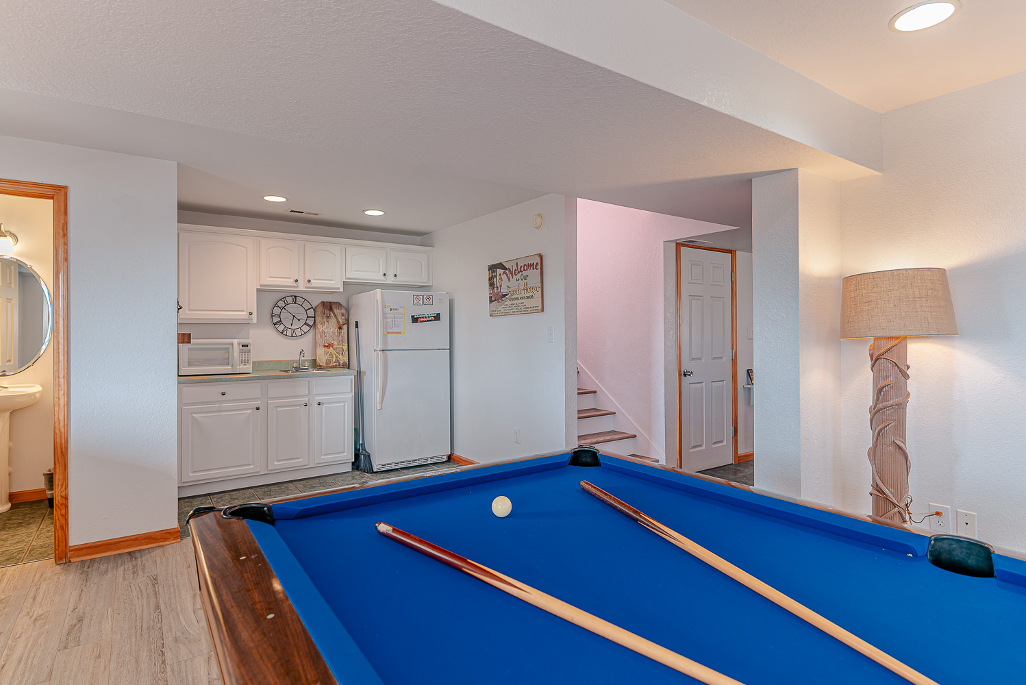Ground Level: Parking for 4 Cars, Covered Entry, Rec. Room w/Pool Table & Foosball Table, TV, Wet Bar, Half Bath, Laundry Area, Private Suite w/King, Full Bath & Smart TV, Private Swimming Pool - Open Seasonally, Hot Tub, Enclosed Outside Shower, & Charcoal Grill.