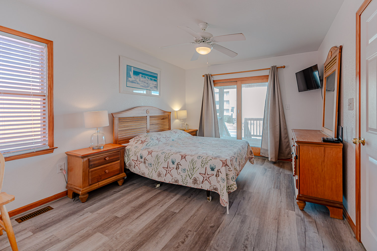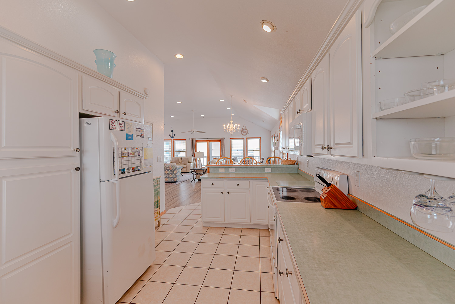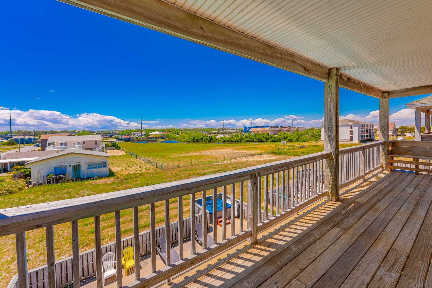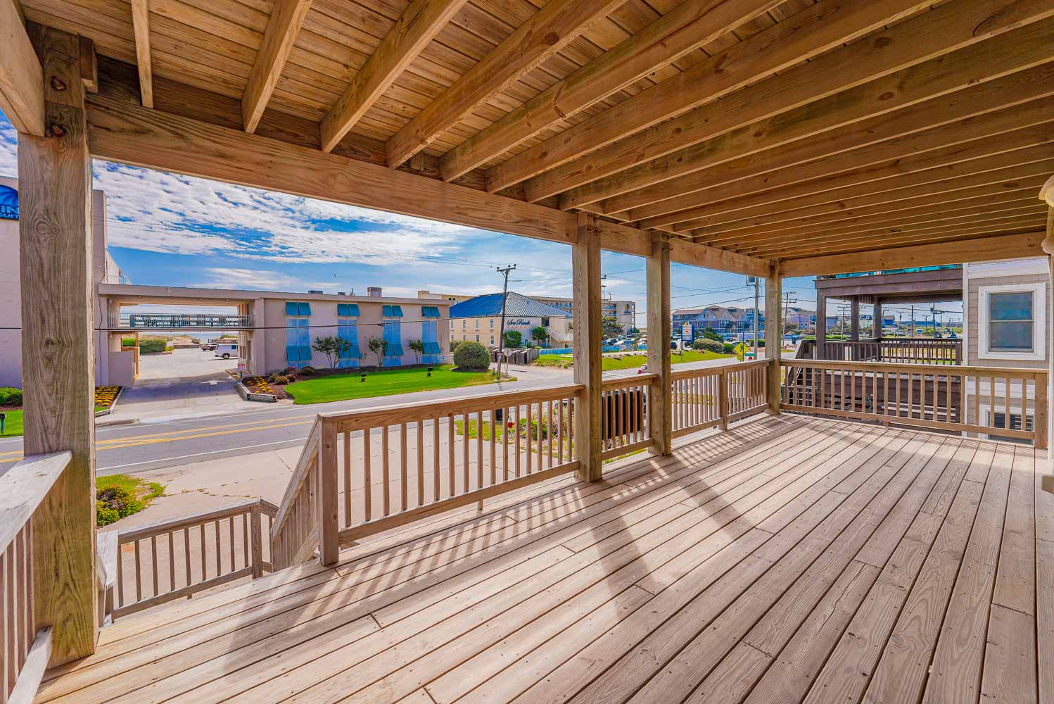Top Level: Spacious Living/Dining/Kitchen Area, TV, DVD, Half Bath, Partial Ocean Views, Private Suite w/King, Full Bath & Smart TV, Front Covered Deck w/Deck Furniture & Ocean Views, & Back Covered Deck Overlooking Pool Area.