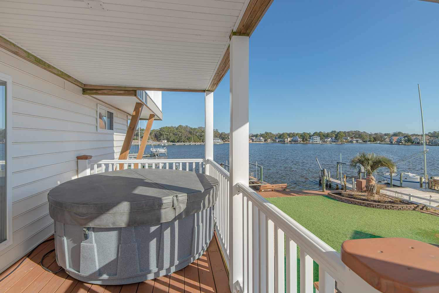 Ground Level: Ample Parking, Two Car Garage, Steps to Covered Entry, Patio Area, Outdoor Tiki Bar,Private 8 x 15 Swim Spa - Open Seasonally, Outside Shower, Landscaped Yard, Walkway Along Water, & Boat Dock.