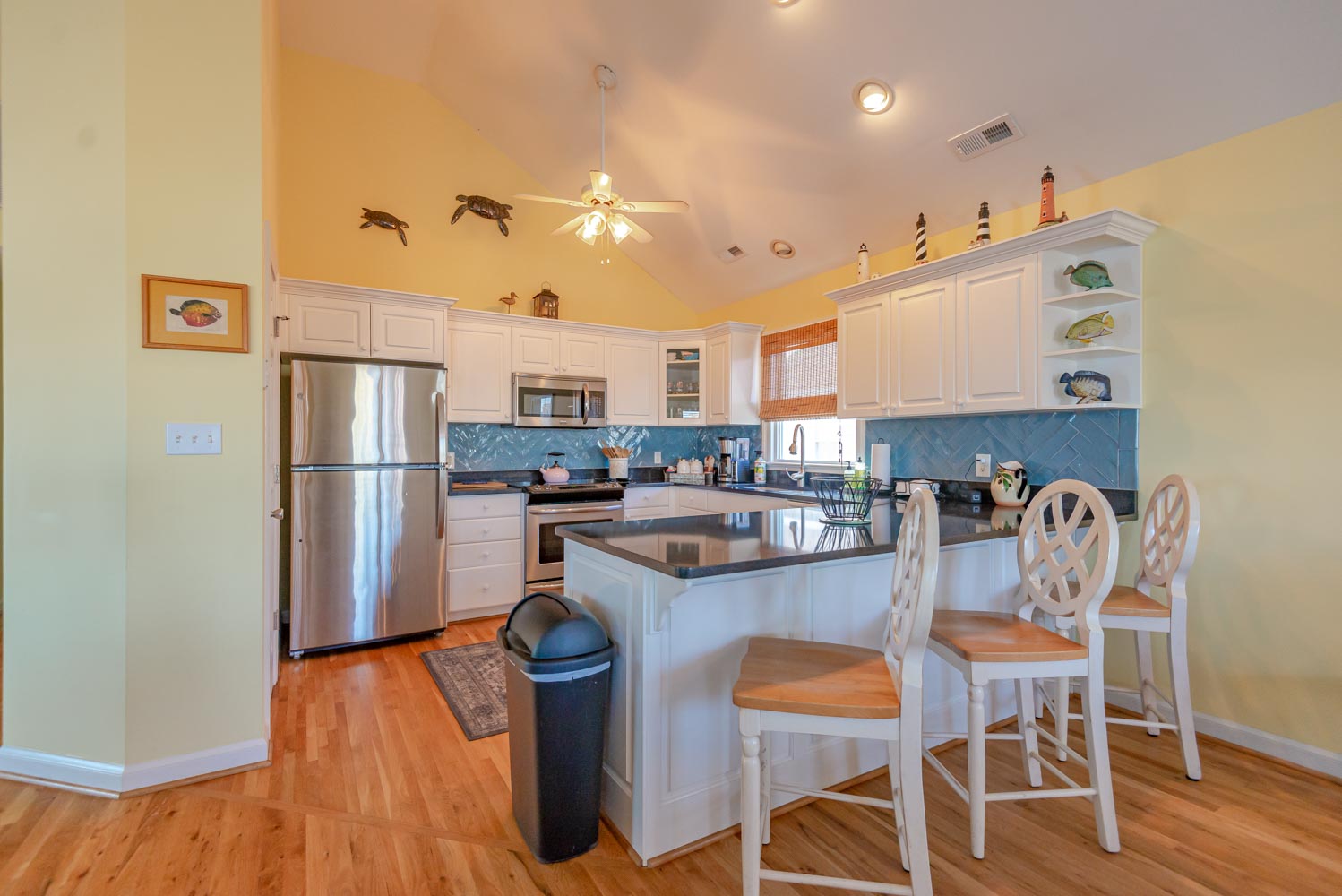 Was so pleasantly surprised to find so many thoughtful amenities ready for our stay. Every need was considered. From hand soap, lotion, detergent, kitchen detergent, foil, zip lock bags, puppy treats, poop bags, We loved having the bikes there to use and the handy beach cart. They thought of everything!!!