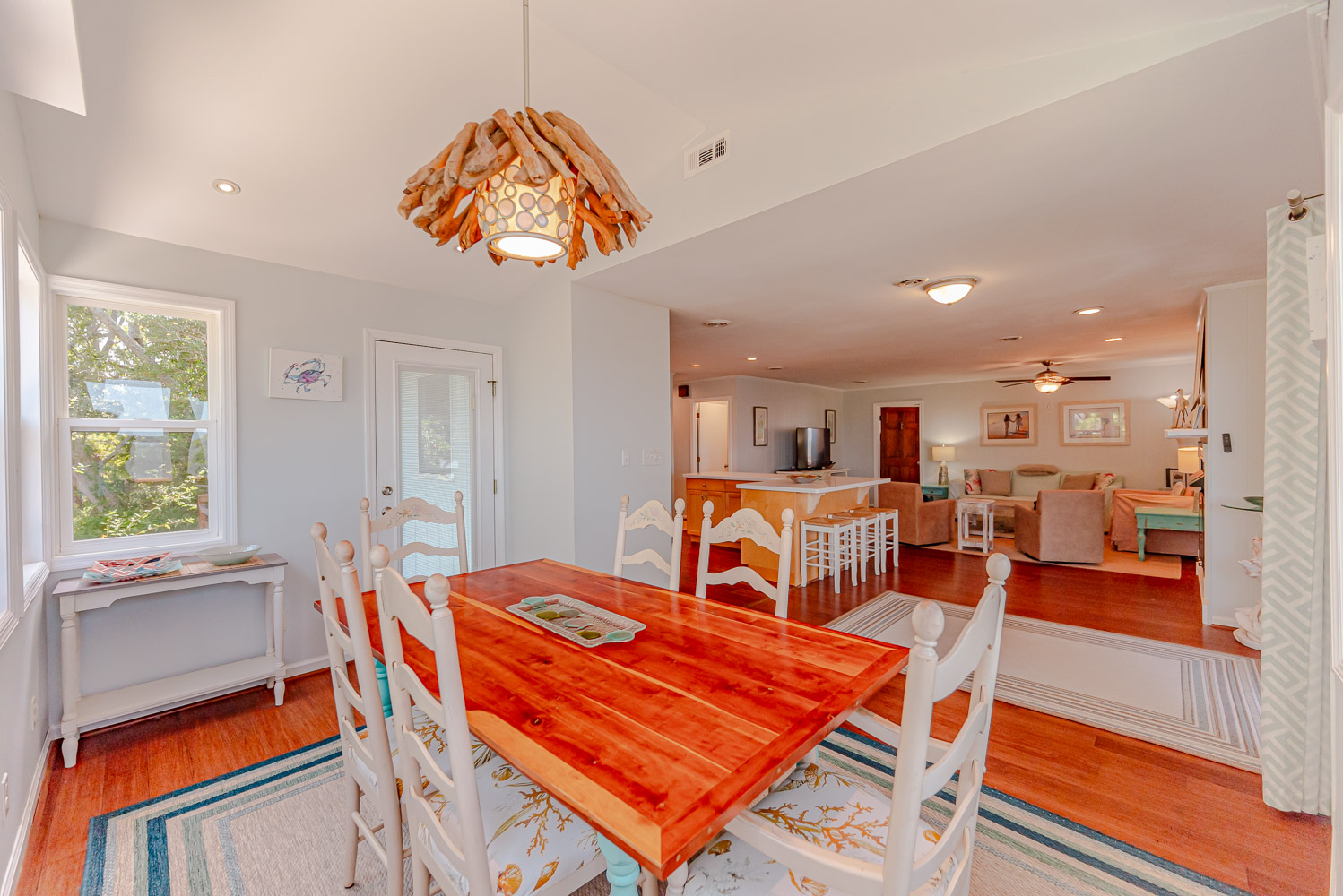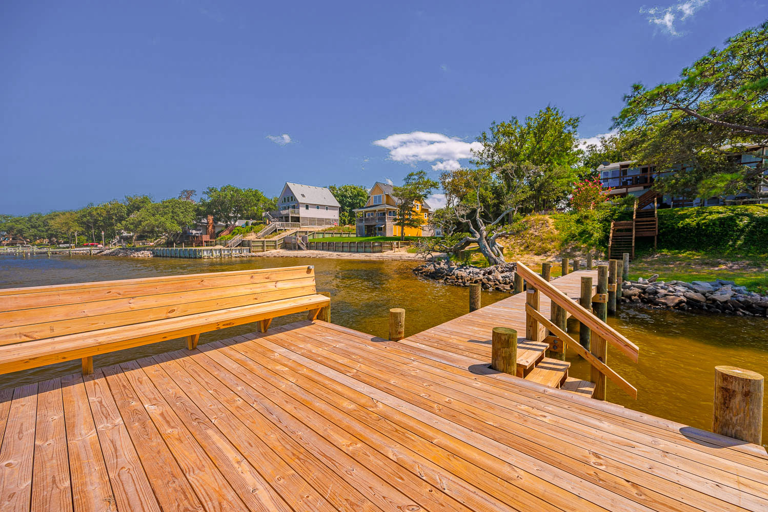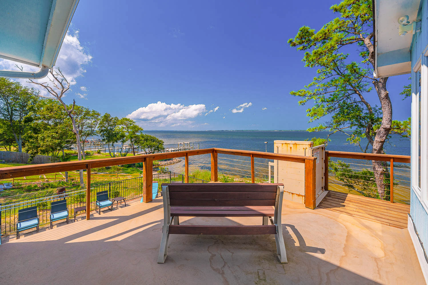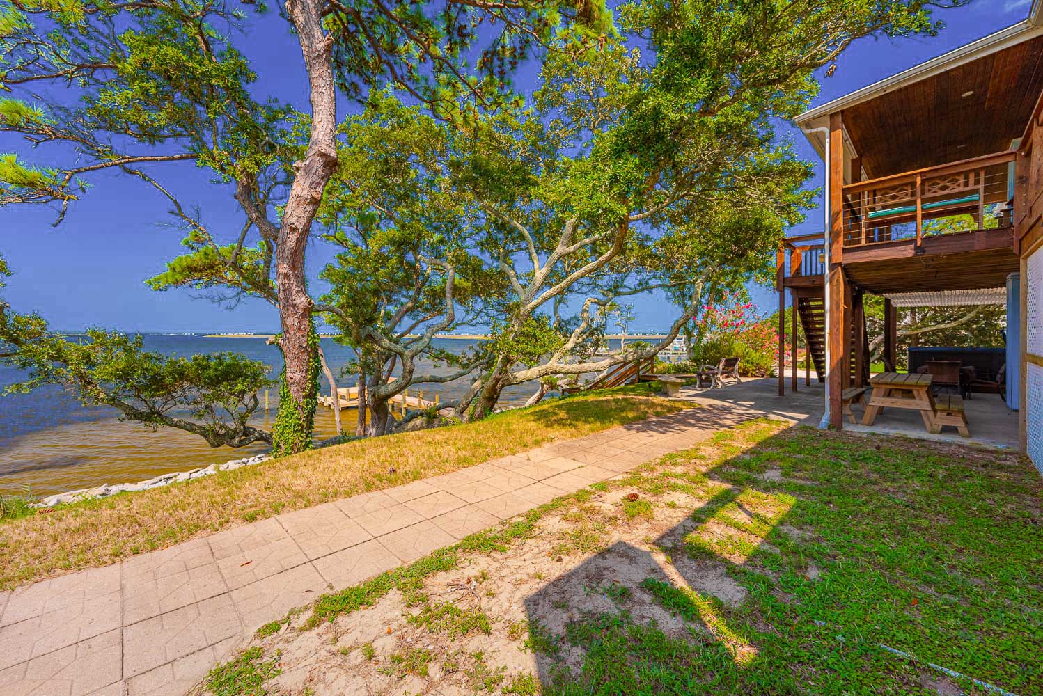 Main Level: Living/Dining/Kitchen Areas, Outstanding Sound Views, Hardwood Floors, 4 Bedrooms (Grand Private Suite w/King, TV, Full Bath, Private Sunroom; Private Suite w/Queen, TV, Full Bath; 1 w/Queen; 1 w/2 Singles), Full Hall Bath, Covered Deck, and Sun Deck with Deck Furniture.