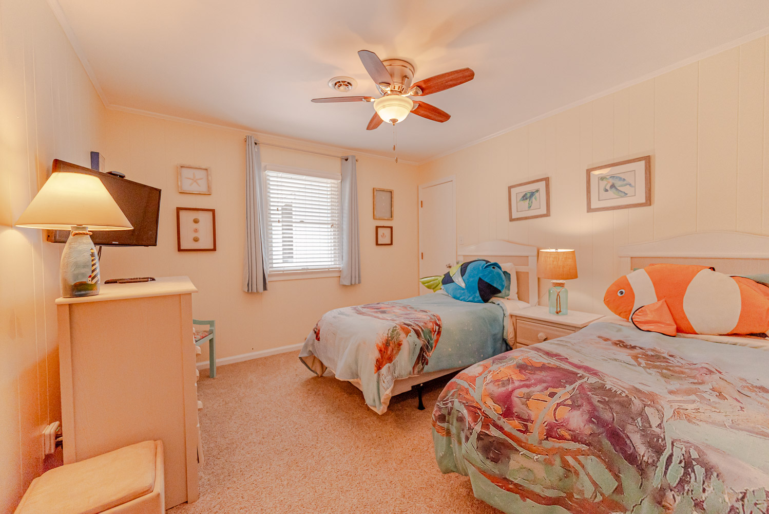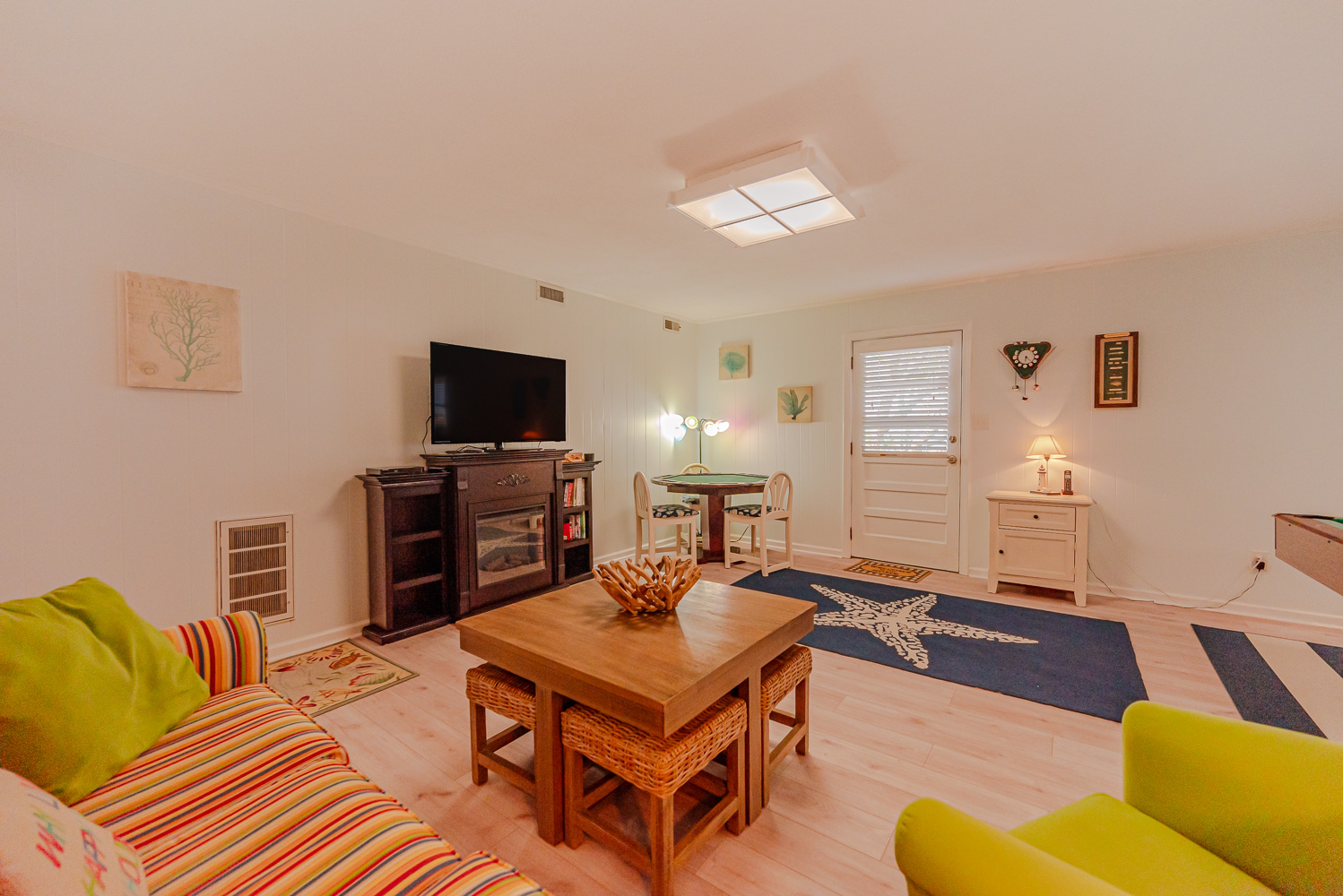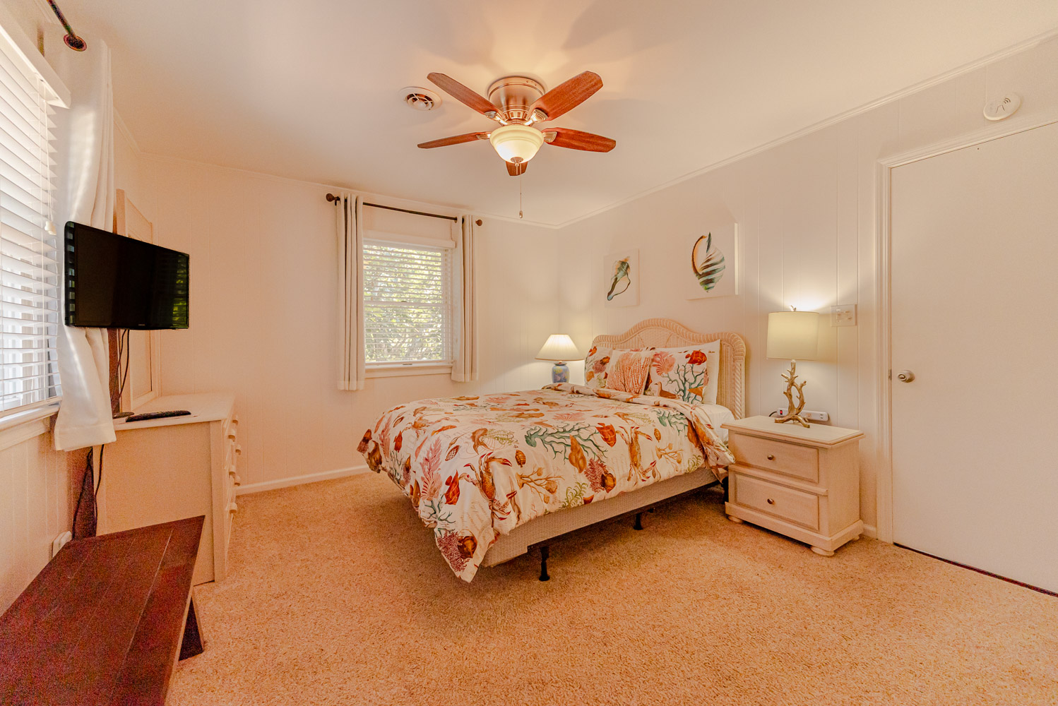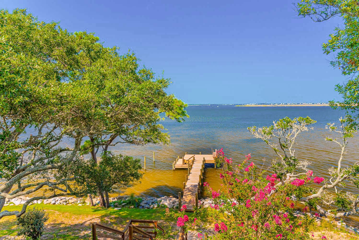 Main Level: Living/Dining/Kitchen Areas, Outstanding Sound Views, Hardwood Floors, 4 Bedrooms (Grand Private Suite w/King, TV, Full Bath, Private Sunroom; Private Suite w/Queen, TV, Full Bath; 1 w/Queen; 1 w/2 Singles), Full Hall Bath, Covered Deck, and Sun Deck with Deck Furniture.