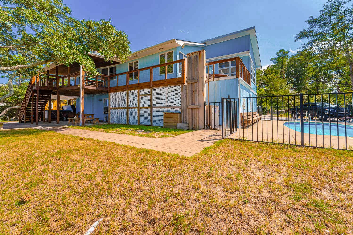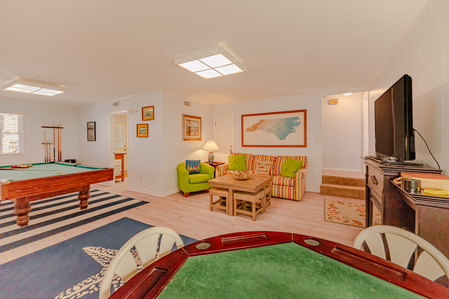 Ground level: Parking for 4 Cars, Entry to Home, Rec. Room, Pool Table, Large Flat Screen TV, Sleep Sofa; Laundry Area, Washer/Dryer, Commode w/Privacy Screen, Access to Patio Area, Private Swimming Pool - Open Seasonally), Hot Tub, Gas Grill, Outdoor Furniture, and Sound Views.