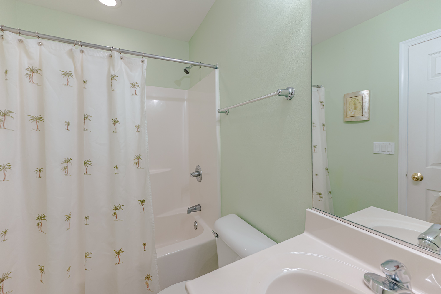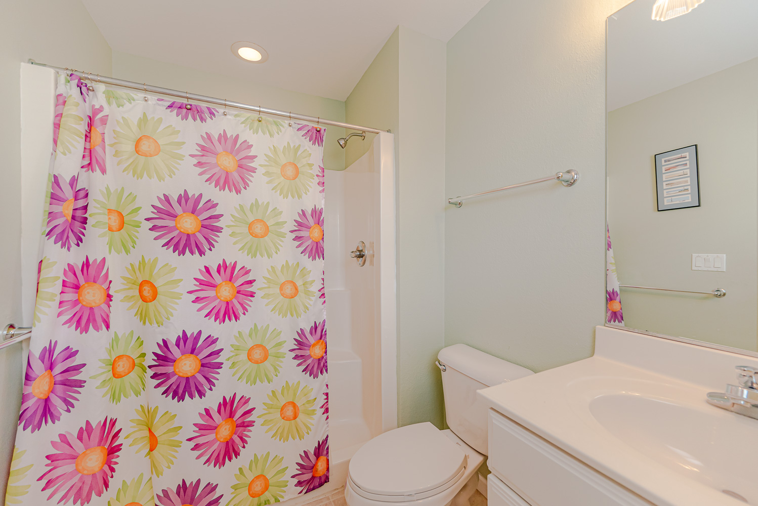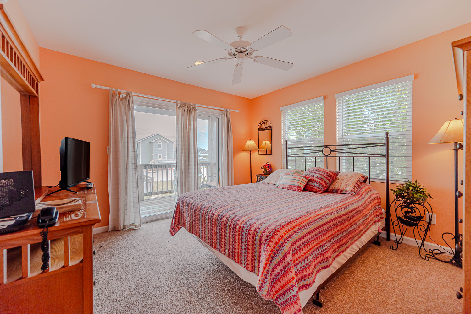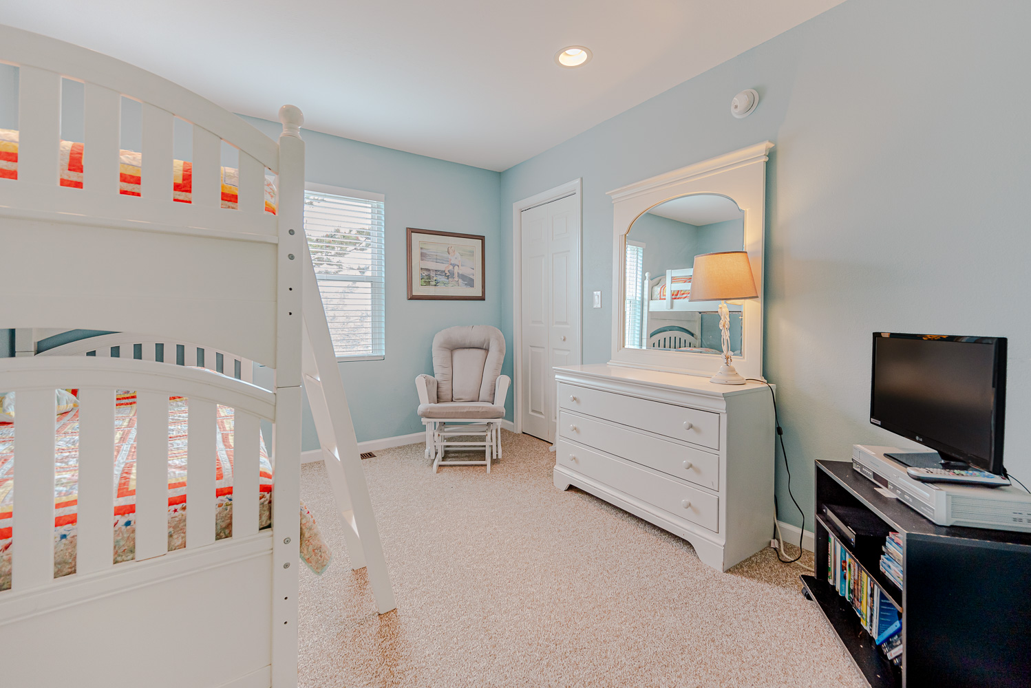 Mid Level: 4 Bedrooms (2 Private Suites w/Queens, Full Baths, 1 w/Queen, 1 w/Bunk Set w/Trundle), Full Hall Bath, and 2 Covered Decks.