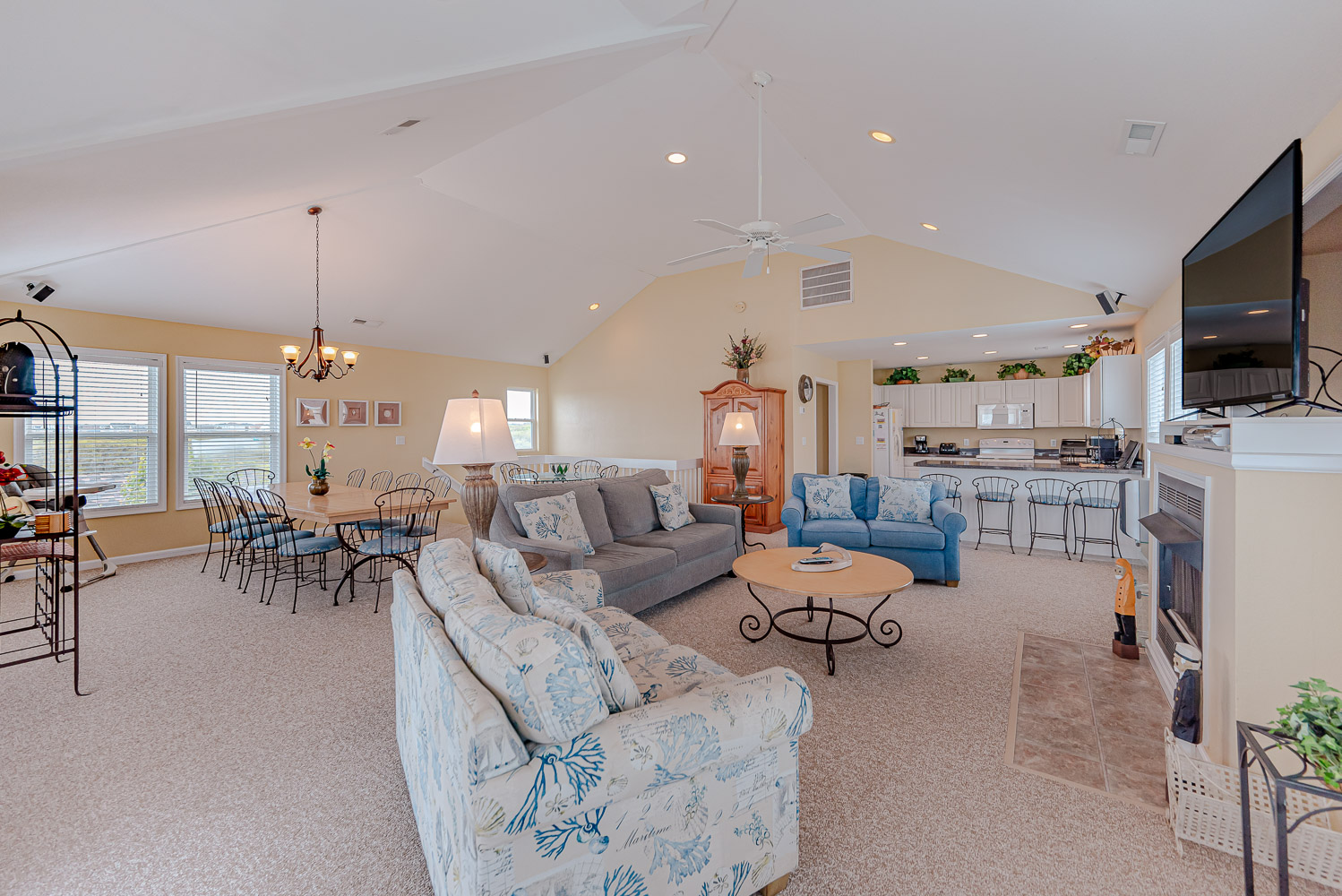 Top Level: Spacious Living/Dining/Kitchen Area, TV w/Digital Cable, Surround Sound Stereo Entertainment System, Gas Fireplace, Unforgettable Views, Half Bath, Private Suite w/King, Full Bath, and 2 Sun Decks.