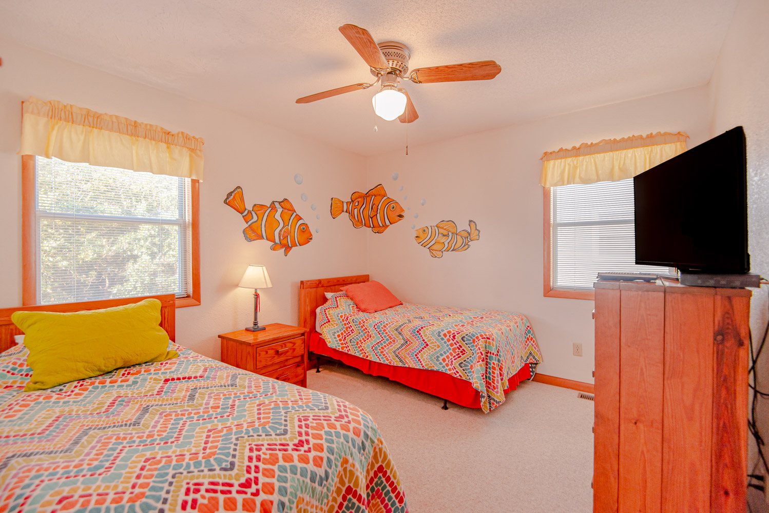 Mid Level: 3 Bedrooms (1 w/Queen, HDTV; 1 w/Double, HDTV; 1 w/2 Singles, HDTV), Full Bath, and Covered Deck w/Deck Furniture.