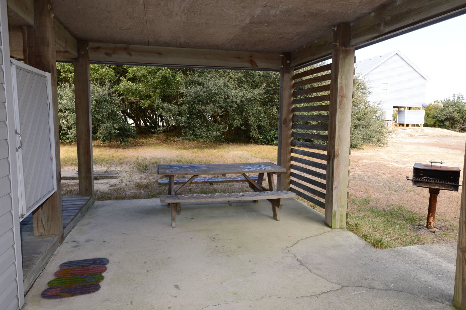 Ground Level: Parking for 3 Cars, Covered Entry, Steps to Mid Level, Laundry Area, Large Enclosed Outside Shower, Picnic Table, Fish Cleaning Station, and Charcoal Grill.