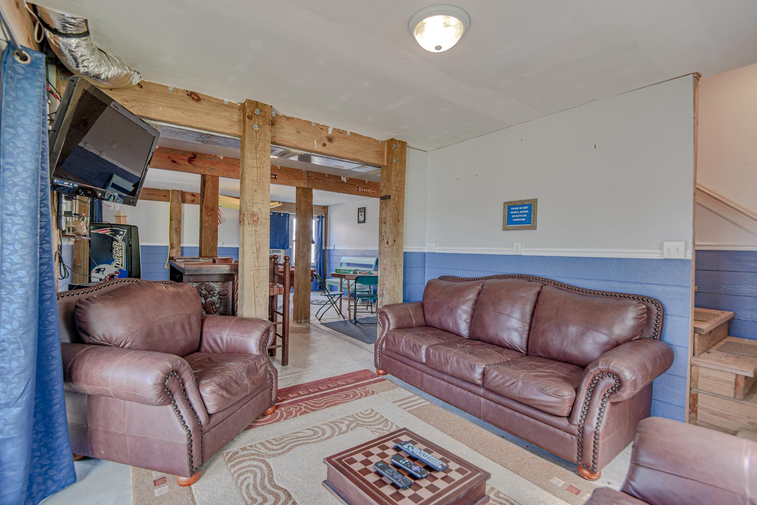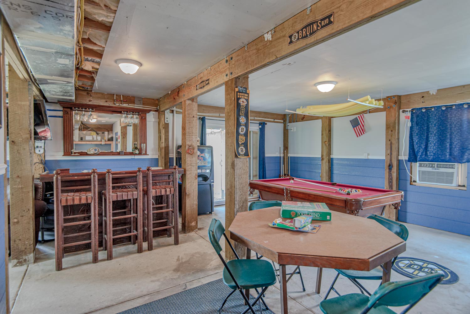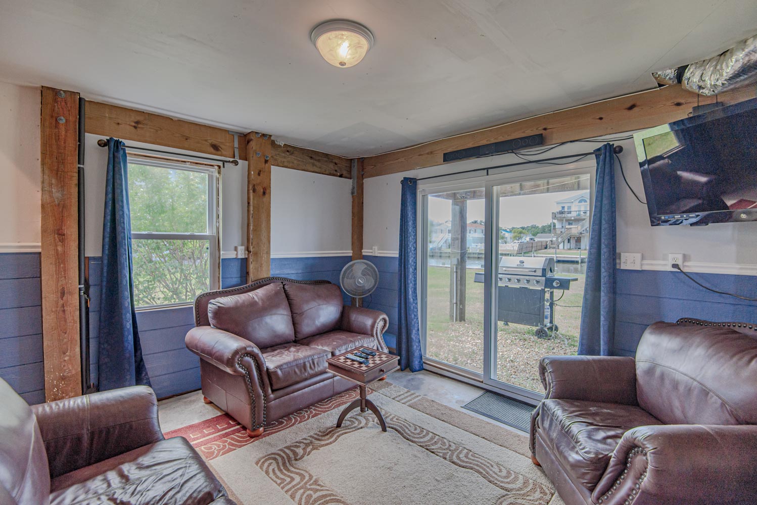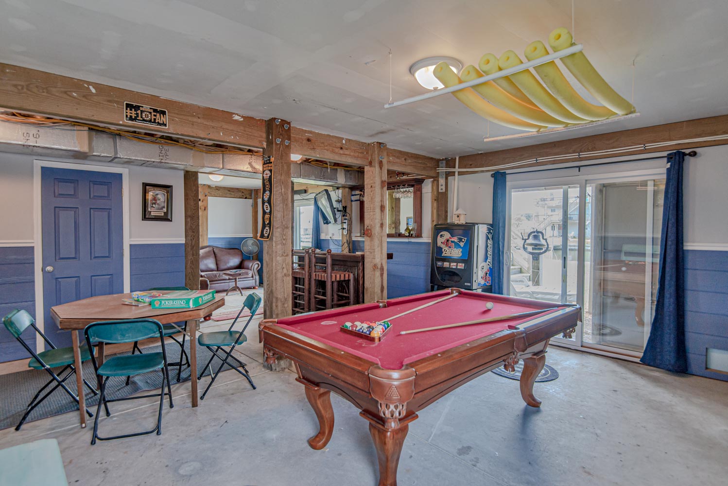 Ground Level: Parking for 3 Cars, Den w/HDTV, Blu-Ray/DVD, Sound Bar, Pool Table, Foosball, Card Table, Window Cooling Unit, Enclosed Outside Shower, and Boat Dock.