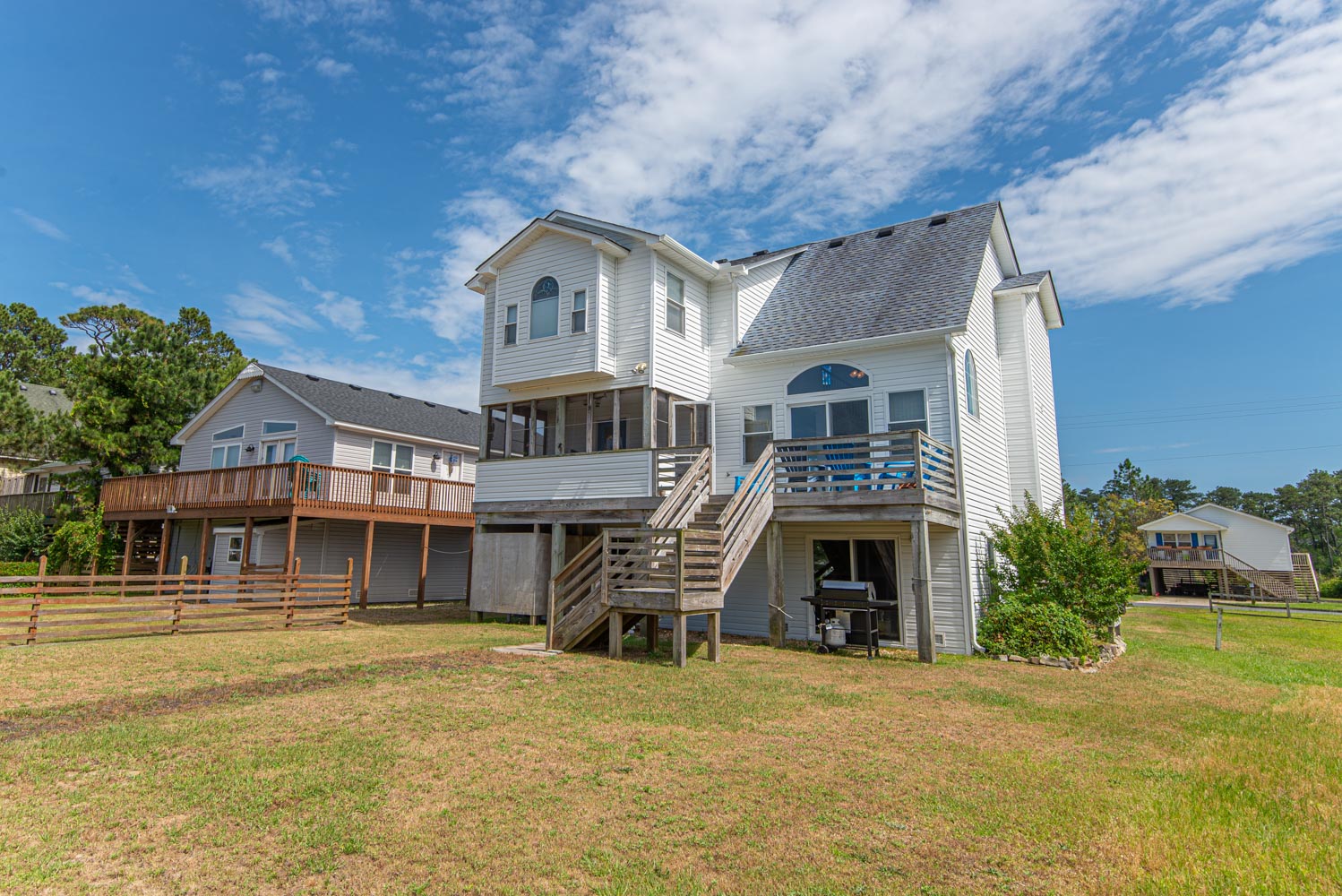 Mid Level: Living/Dining/Kitchen Area, Flat Screen HDTV, DVD, Hardwood Floors, Bedroom w/Queen, HDTV, DVD; Full Hall Bath, Screened Porch, Sun Deck, and Gas Grill.