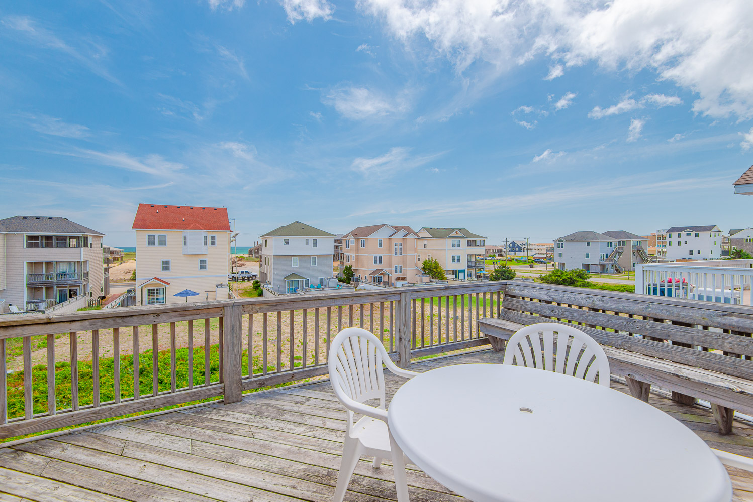 Top Level: Spacious and Very Comfortable Living/Dining/Kitchen Area, TV, DVD, Queen Sleep Sofa, Half Bath, Private Suite w/King, TV, and Full Bath (Shower), and Sun Deck w/Deck Furniture.