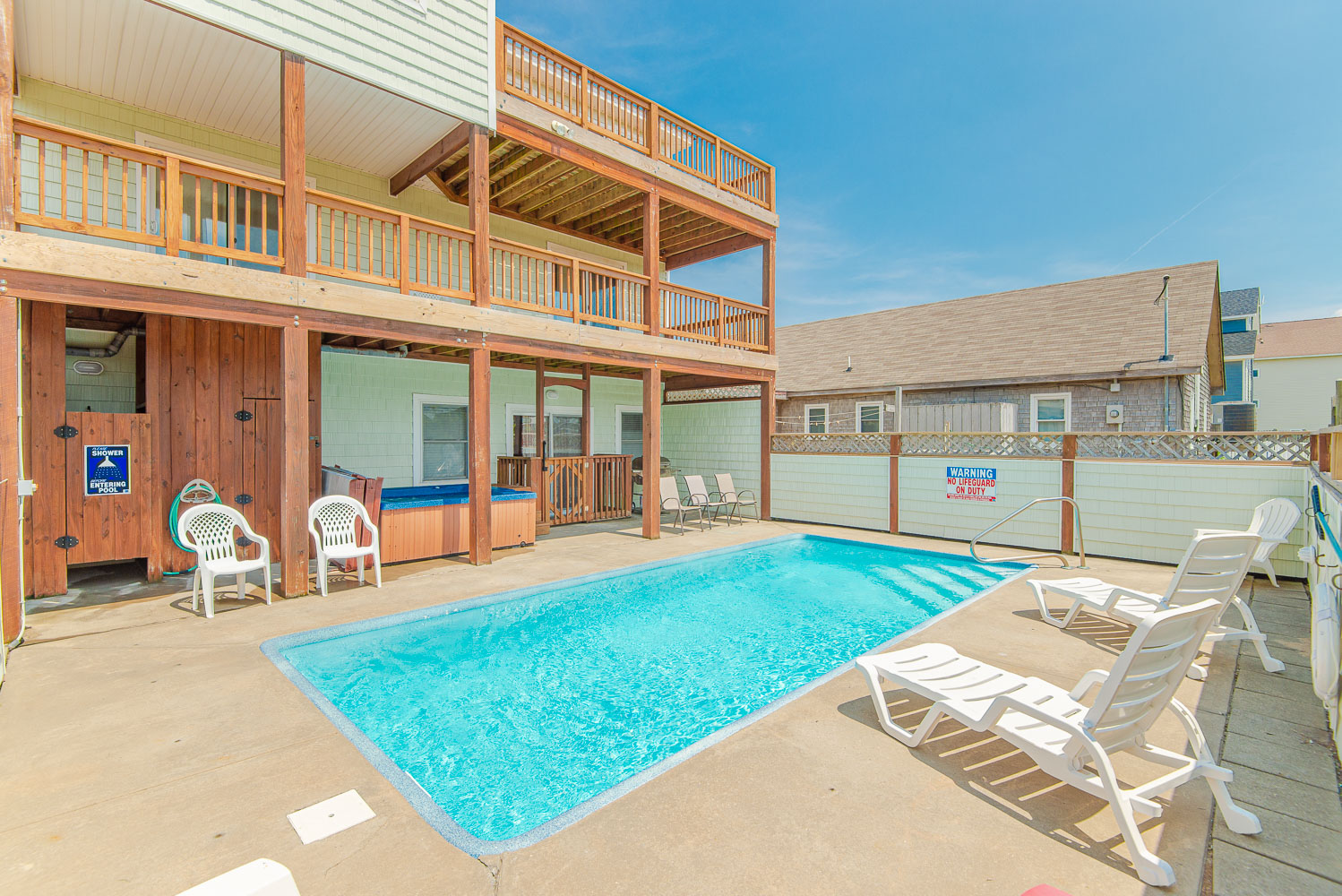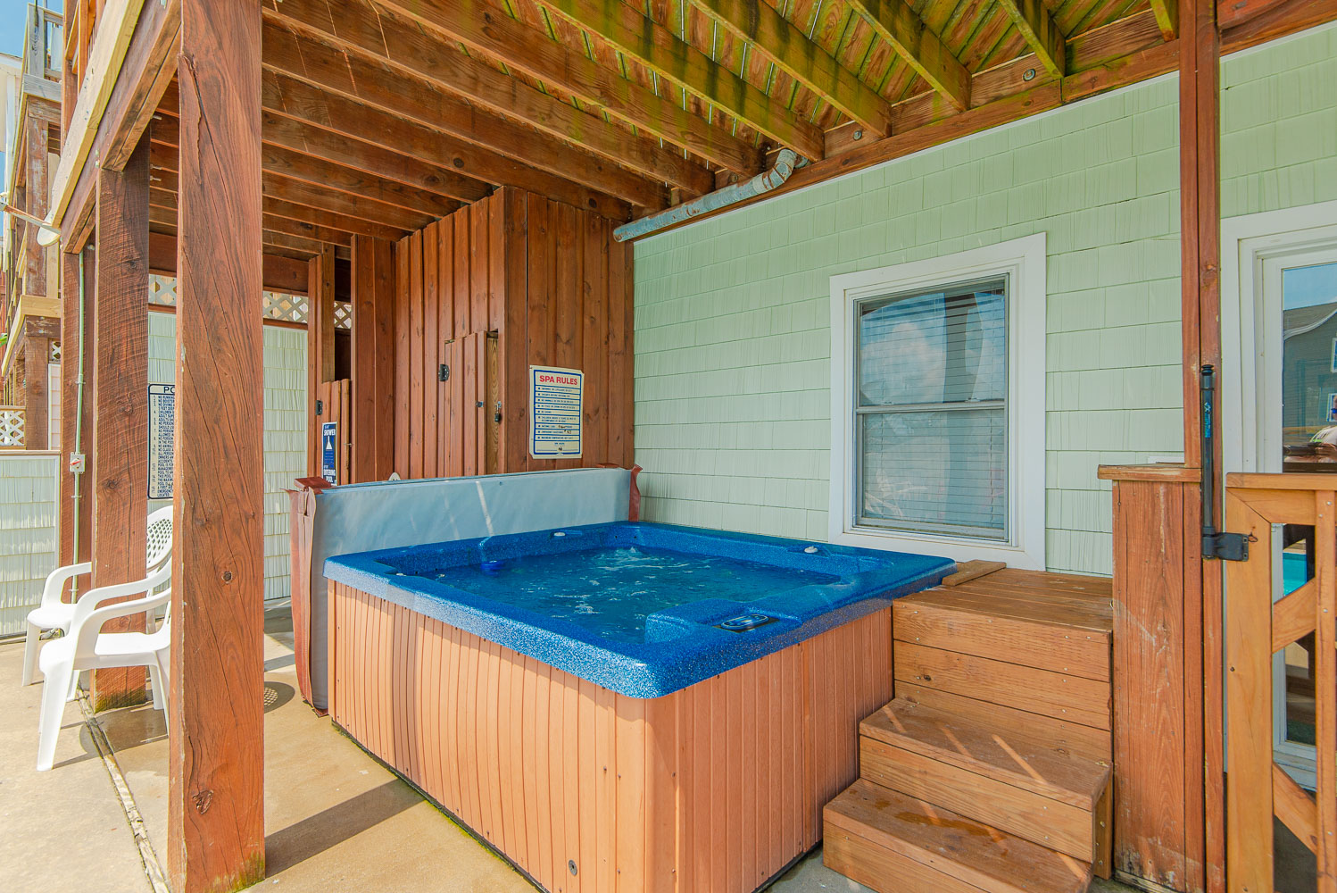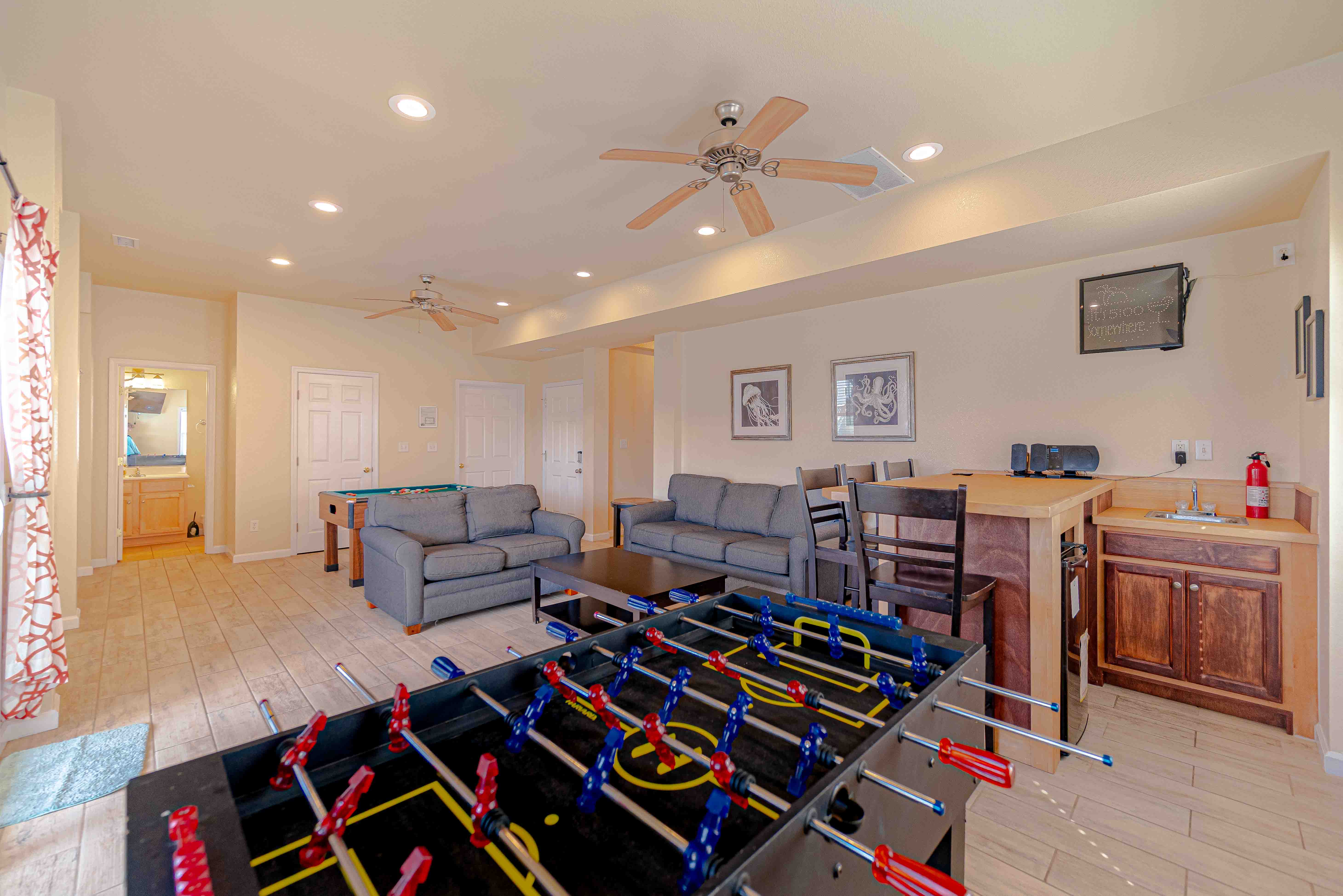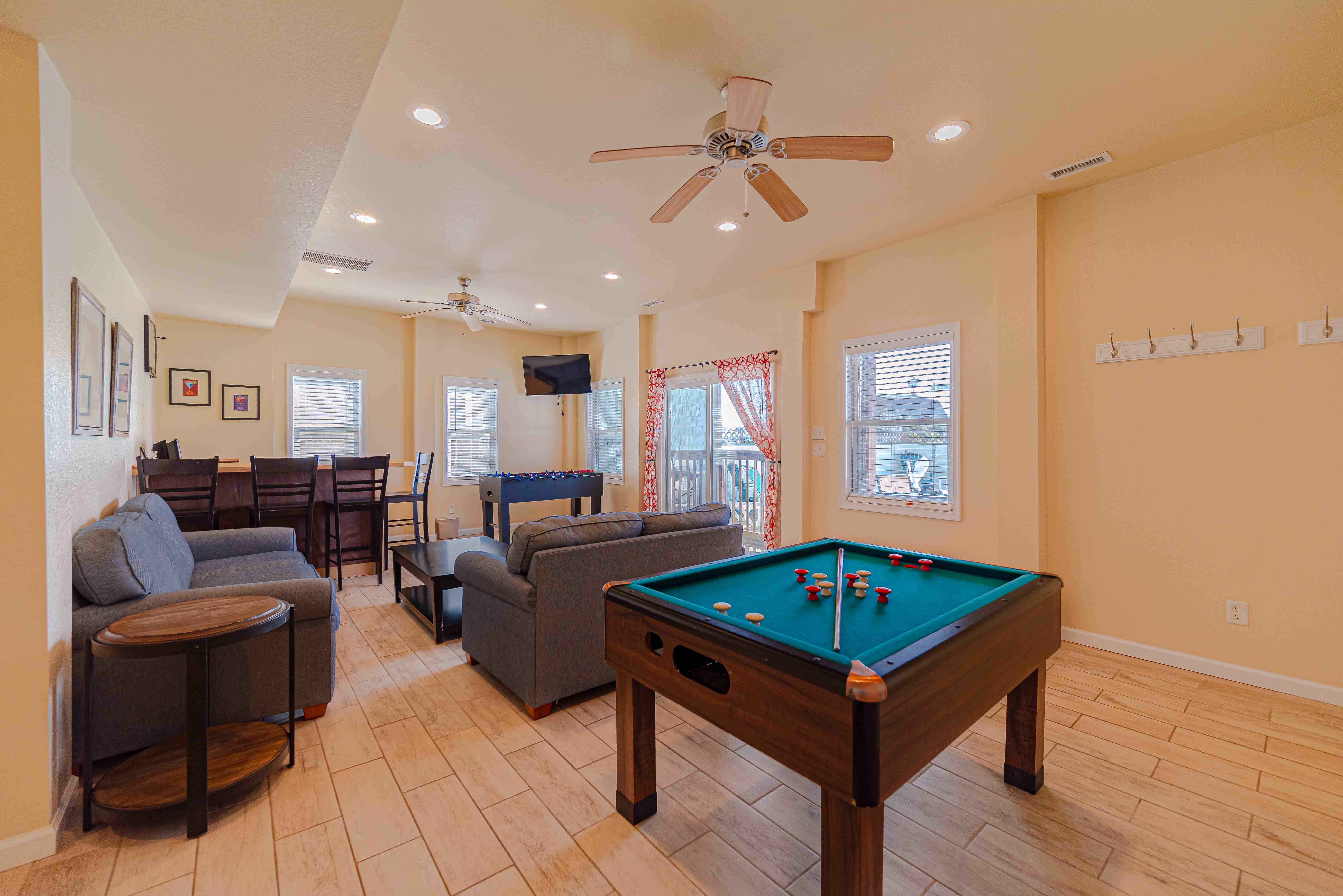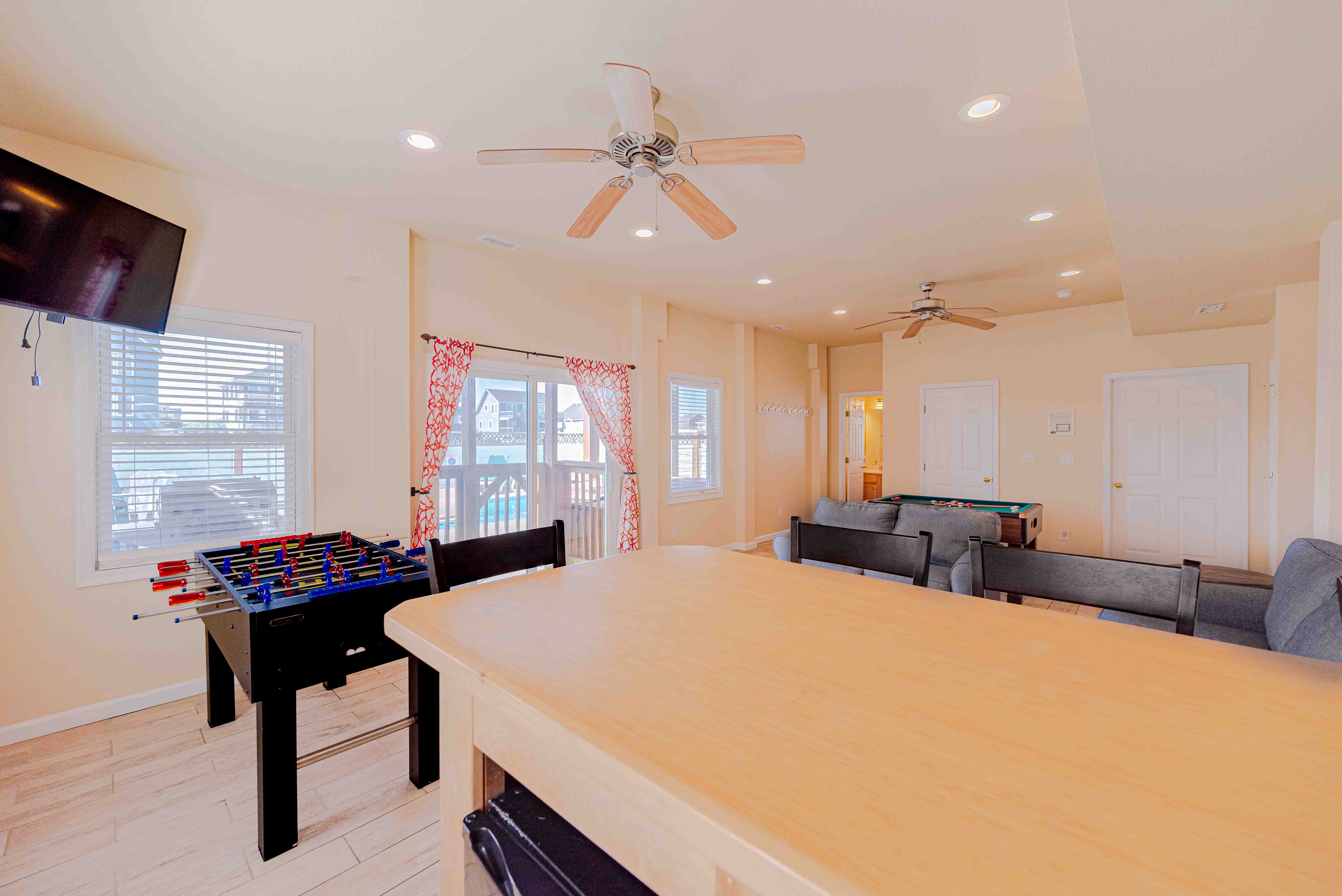 Ground Level: Parking for 4 Cars, Entry to Home, Rec. Room w/Foosball & Bumper Pool, Wet Bar w/Mini-Refrigerator, Flat Panel TV, Full Bath, & Access to Patio area w/Hot Tub, Private Swimming Pool - Open Seasonally , Enclosed Outside Shower, & Gas Grill.