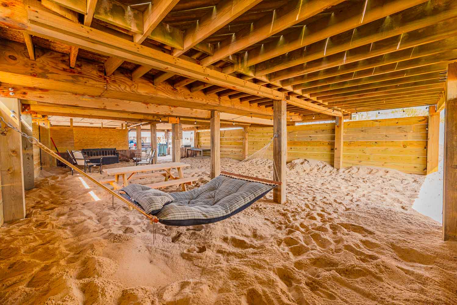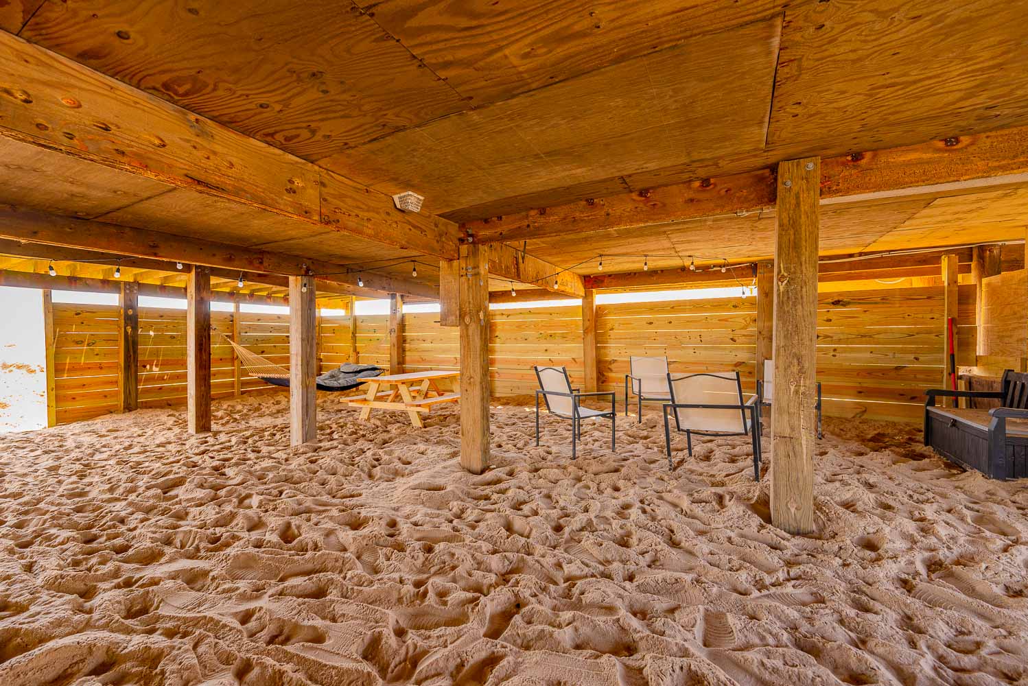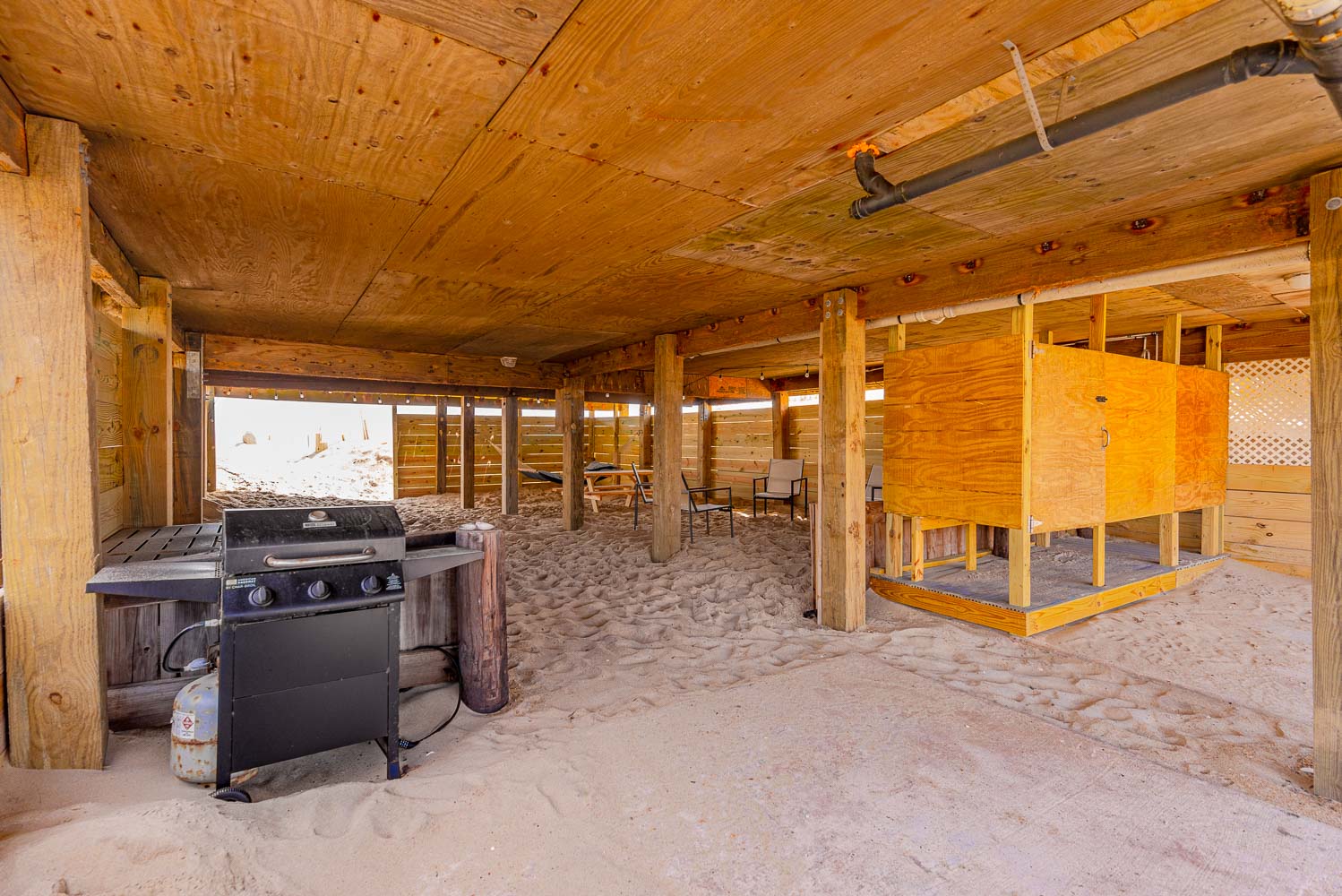 Ground Level: Parking for 4 Vehicles, Sitting Area w/Picnic Table, Enclosed Outside Shower w/Dressing Area, Gas Grill, & Sand Path Over Dune to the Beach.