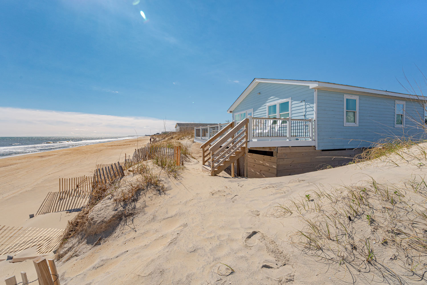 "Deja View" is a recently updated Coastal themed retreat that offer unsurpassed views of the Ocean & Beach. Enjoy days spent on your private oceanfront deck watching the sunrise over the Atlantic, the waves rolling in & beach goers strolling along the beautiful beach. This home is charming, bright & modern with updates in 2023 that included a new kitchen, new baths, new furnishings, TV's in all bedrooms, & lovely décor. Situated directly on the beach, Deja View is a rare gem that provides four bedrooms, two baths, a ground level sitting area & sun deck that has 180 degree views that will make you want to return year after year. Ideally situated within the oceanfront dunes, your family will appreciate the direct access to the beach & ocean along with all the activities that include swimming, fishing, surfing or just relaxing to the sounds of the surf.