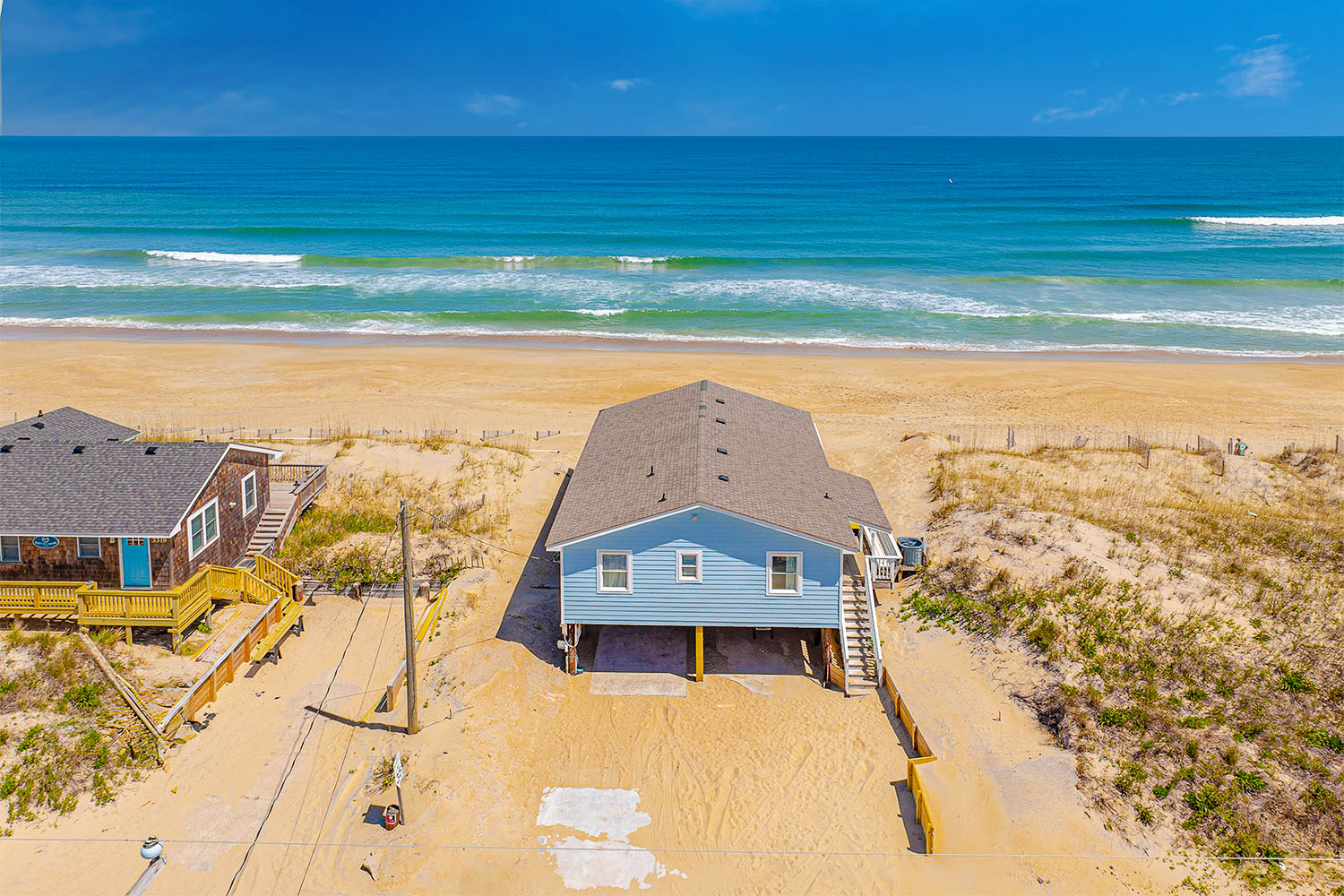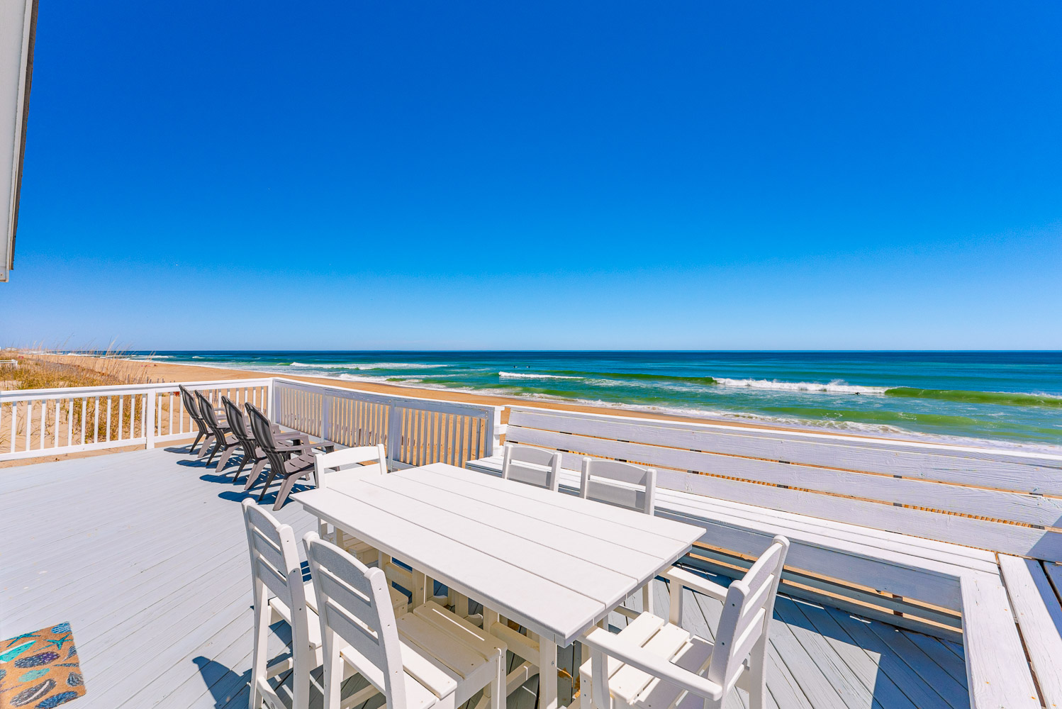 "Deja View" is a recently updated Coastal themed retreat that offer unsurpassed views of the Ocean & Beach. Enjoy days spent on your private oceanfront deck watching the sunrise over the Atlantic, the waves rolling in & beach goers strolling along the beautiful beach. This home is charming, bright & modern with recent updates that include a new kitchen, new baths, new furnishings, & décor. Situated directly on the beach, Deja View is a rare gem that provides four bedrooms, two baths, a ground level sitting area & sun deck that has 180 degree views that will make you want to return year after year. Ideally situated within the oceanfront dunes, your family will appreciate the direct access to the beach & ocean along with all the activities that include swimming, fishing, surfing or just relaxing to the sounds of the surf.