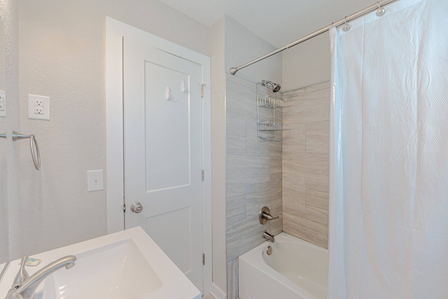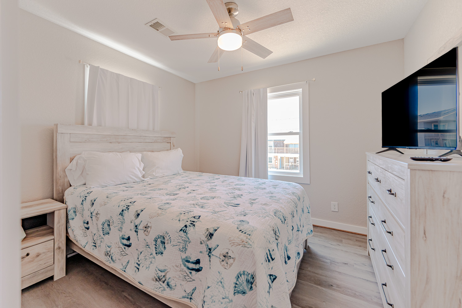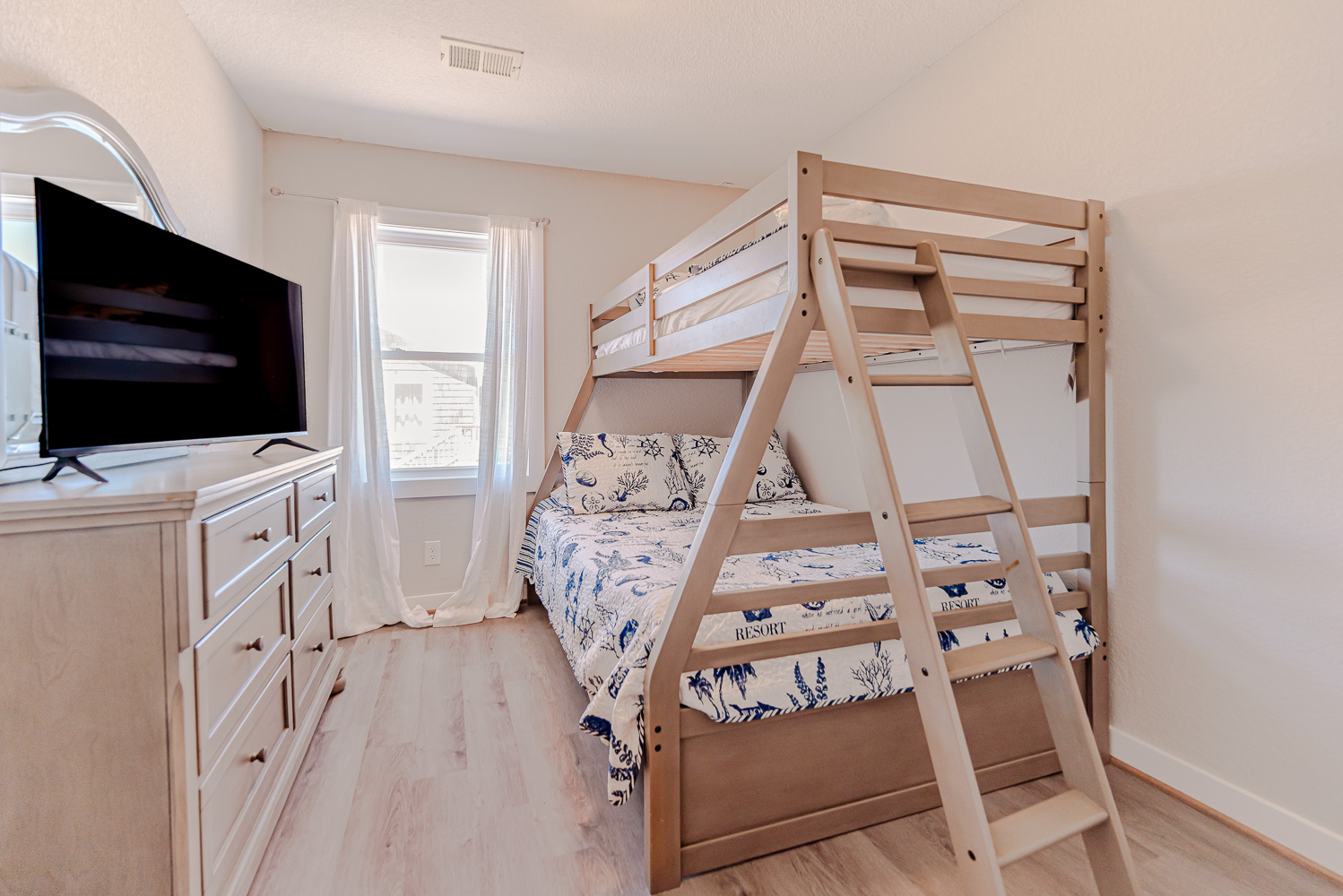 Main Level: Living/Dining/Kitchen Area, TV, Outstanding Ocean & Beach Views, 4 Bedrooms (Private Suite w/Queen, TV, & Full Bath w/Shower; 1 w/Queen & TV, 1 w/Queen; & 1 w/Duo Bunk & TV), Full Hall Bath, Laundry, Covered Porch, Sun Deck w/Stairs to Ground, Sand Path Over Dune to Beach.