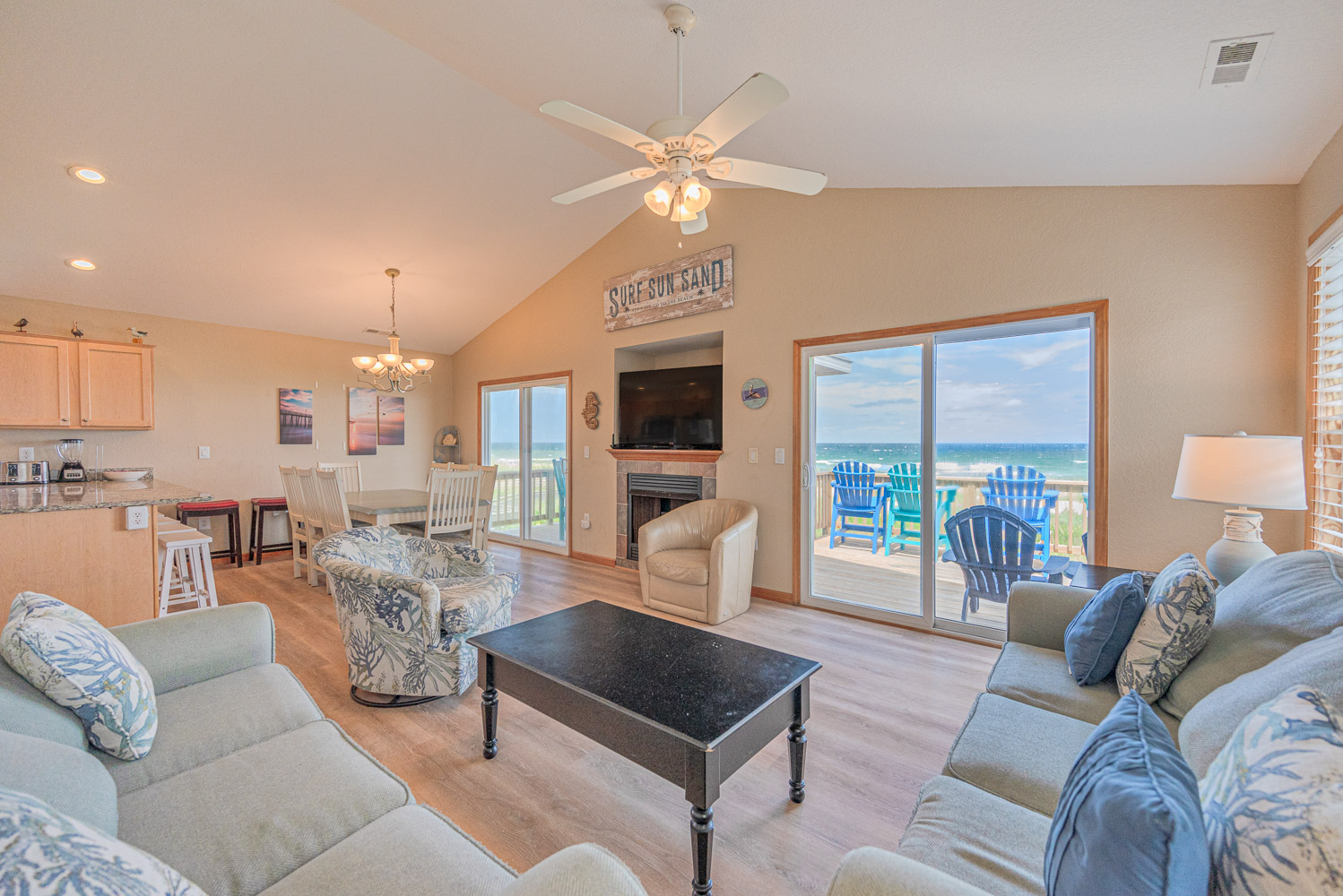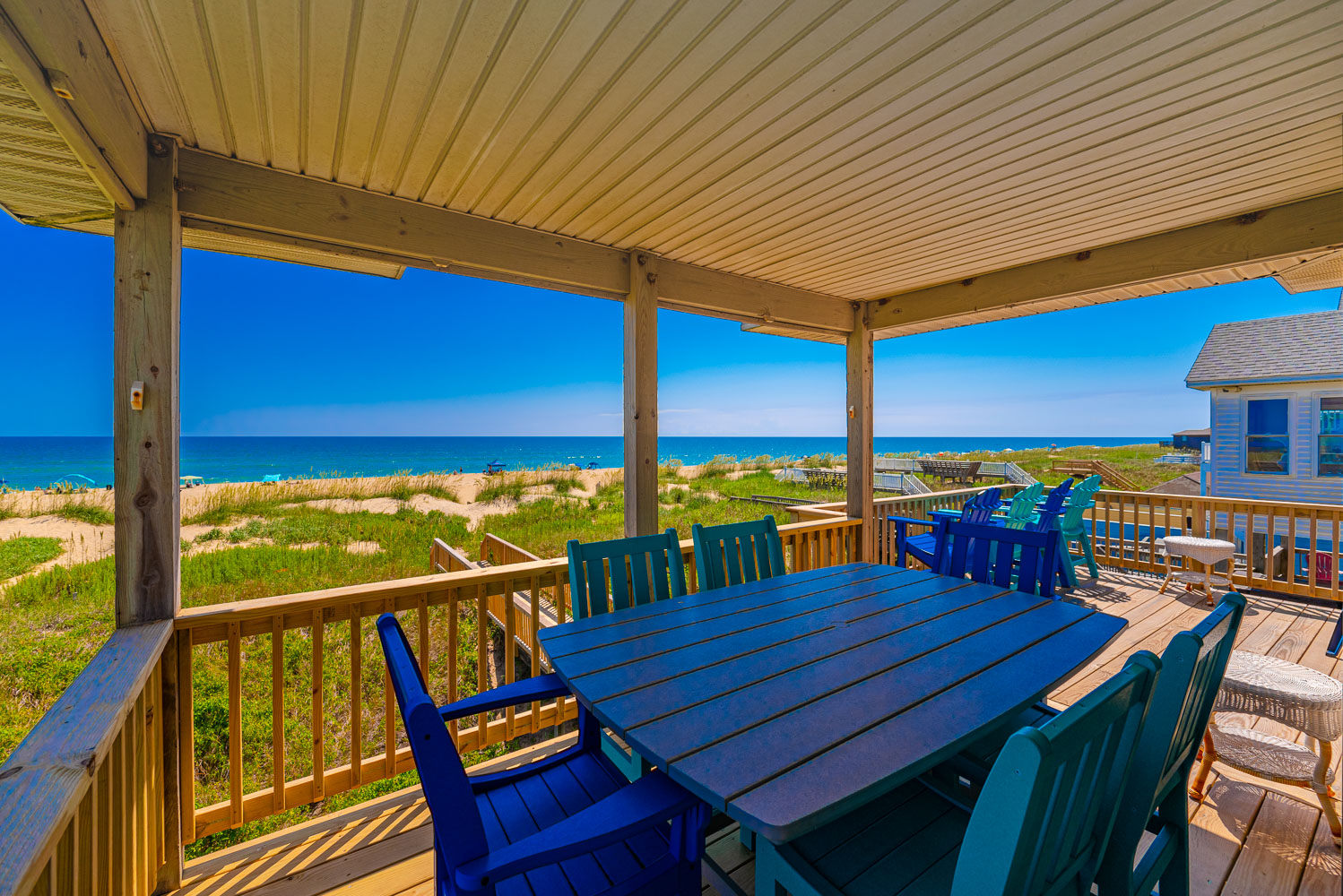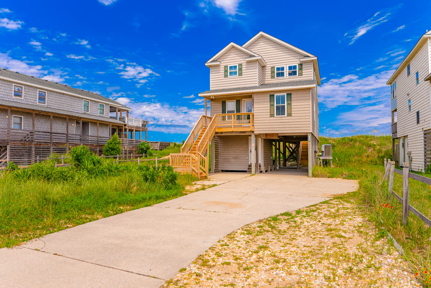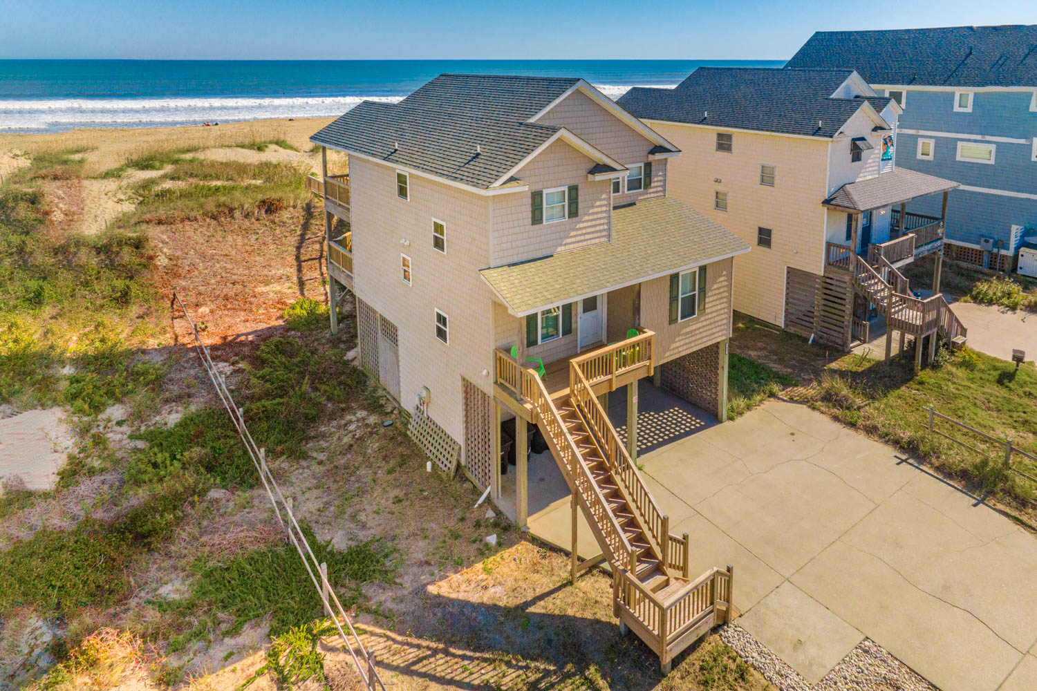 Well equipped with ample space to relax and enjoy your vacation, this home offers an ideal place to unwind after a day spent on the beach. From the mid level deck, a private walkway takes you across the dune to a sand path straight to the ocean. The convenient location is close to dining, shopping and area attractions.
