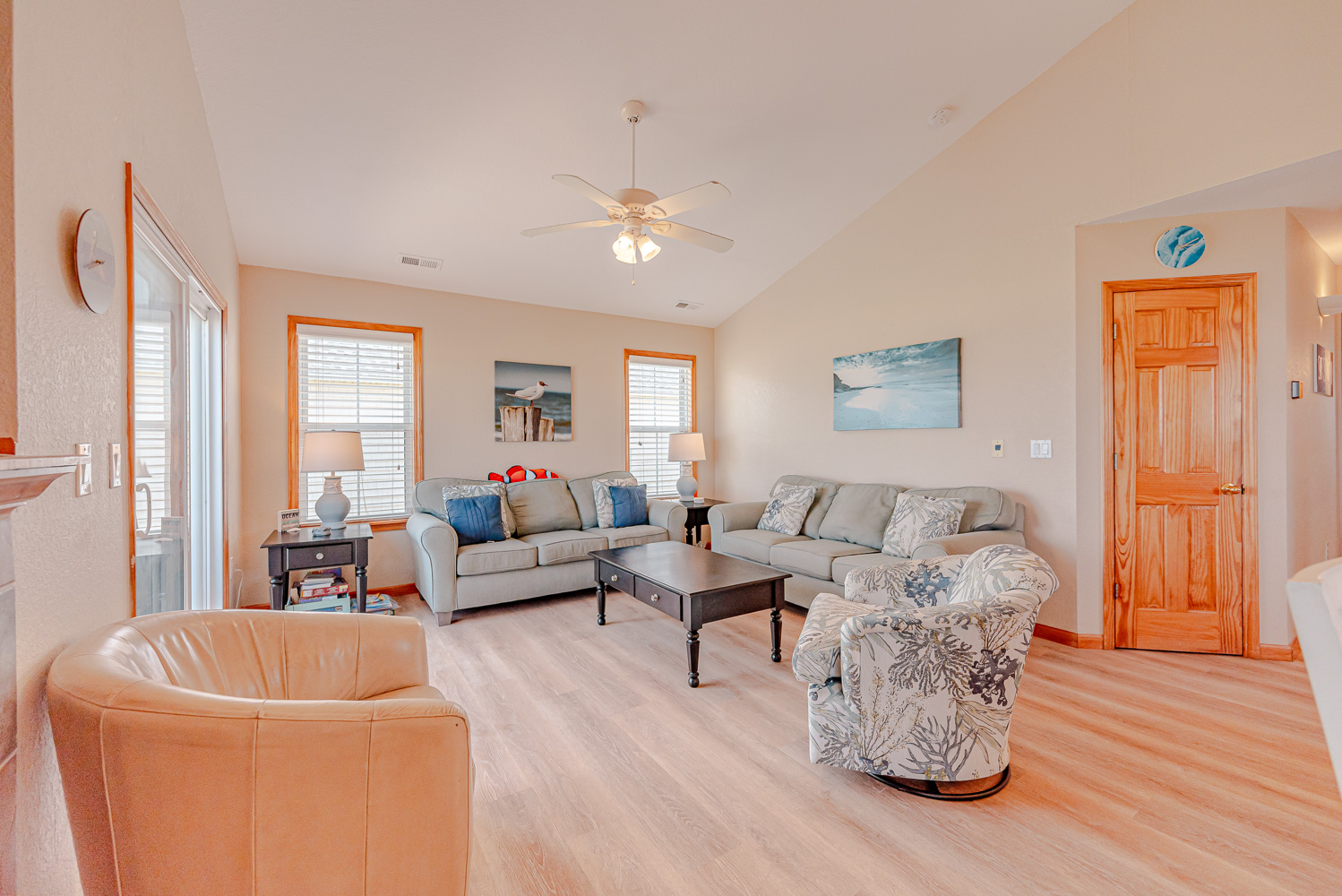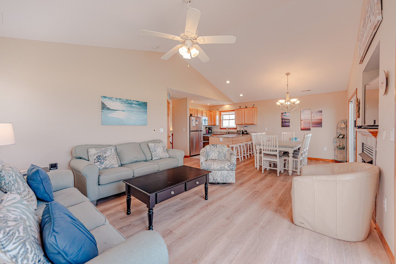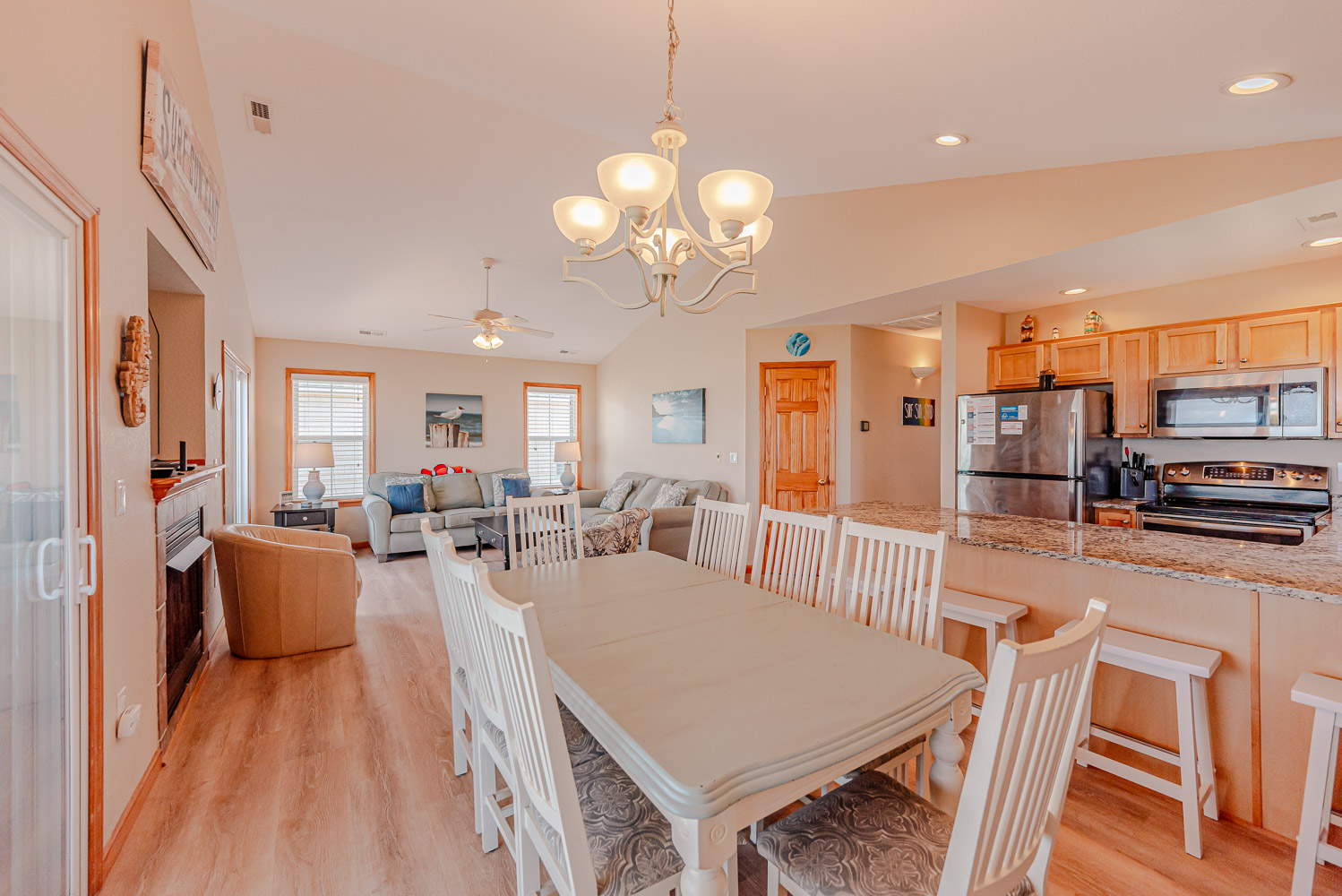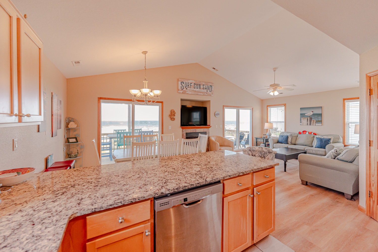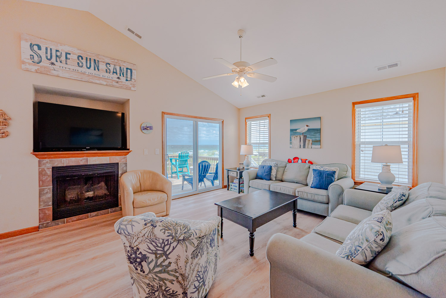 Well equipped with ample space to relax and enjoy your vacation, this home offers an ideal place to unwind after a day spent on the beach. From the mid level deck, a private walkway takes you across the dune to a sand path straight to the ocean. The convenient location is close to dining, shopping and area attractions.