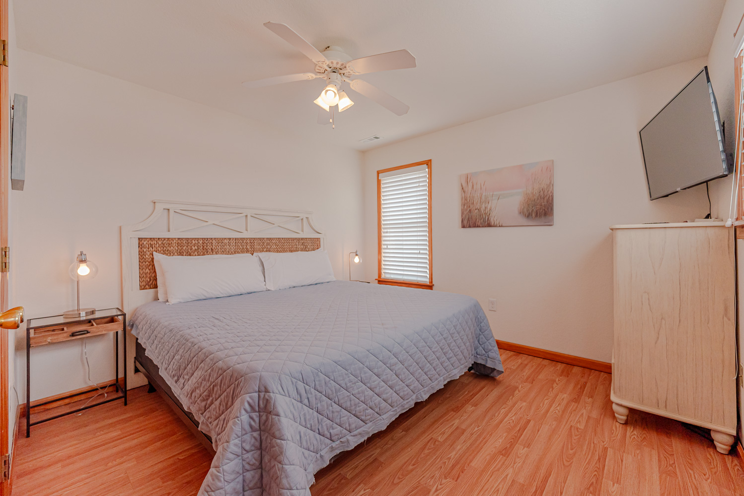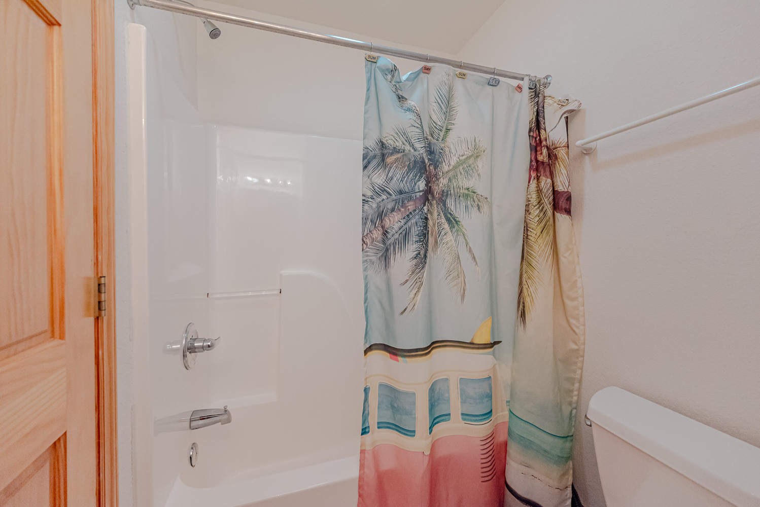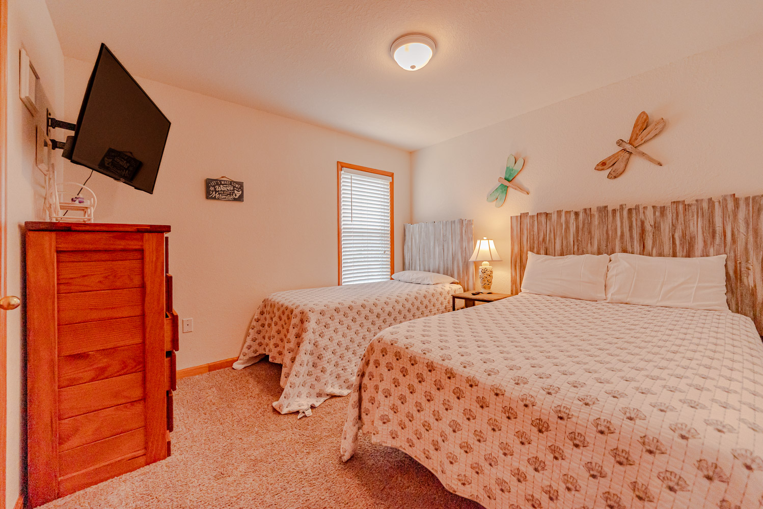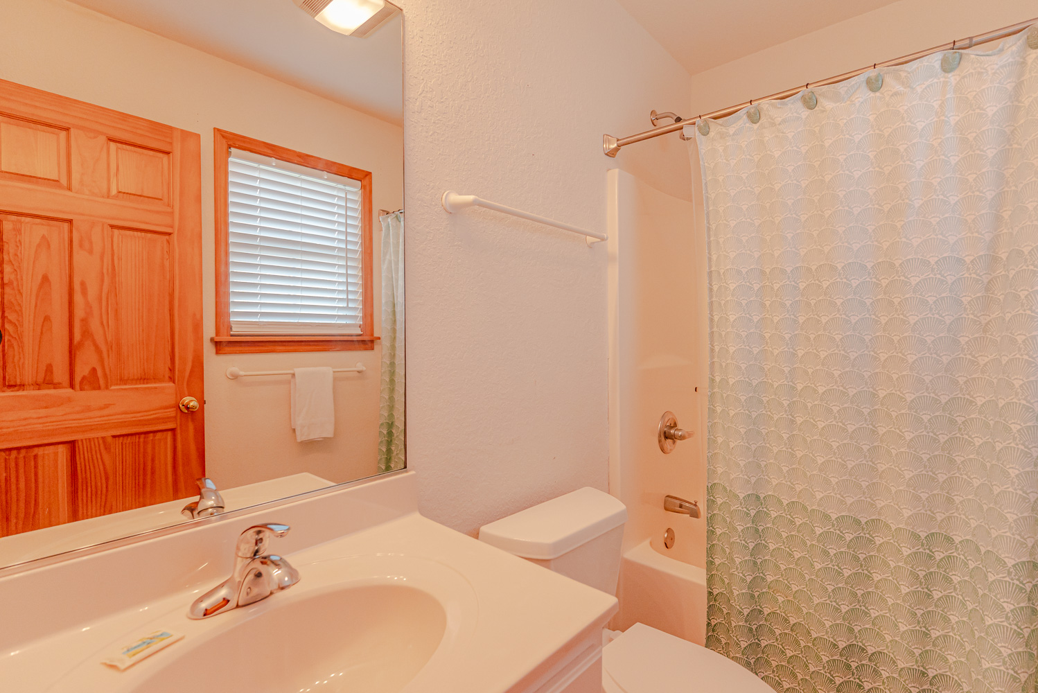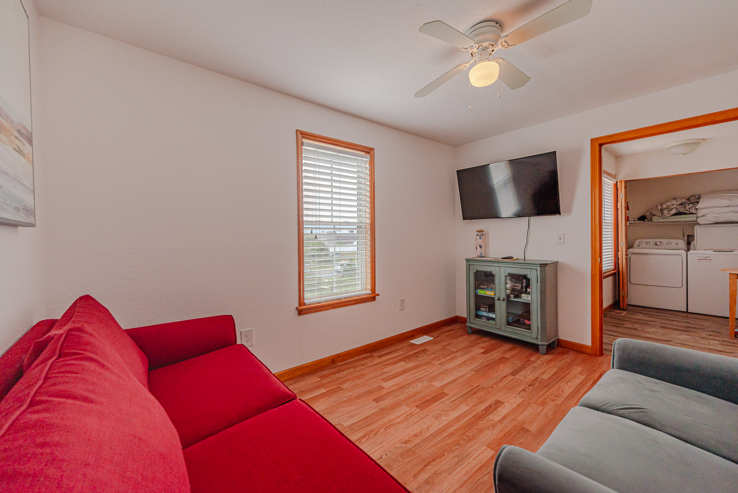 Mid Level: 3 Bedrooms (Private Suite w/Queen, TV, Full Bath w/Tub/Shower; 1 w/Queen, TV; 1 w/Double, Single, TV), Full Hall Bath w/Tub/Shower, Laundry Area, and Access to Covered Porch w/Hot Tub, Beautiful Ocean Views, and Private Walkway to Beach.