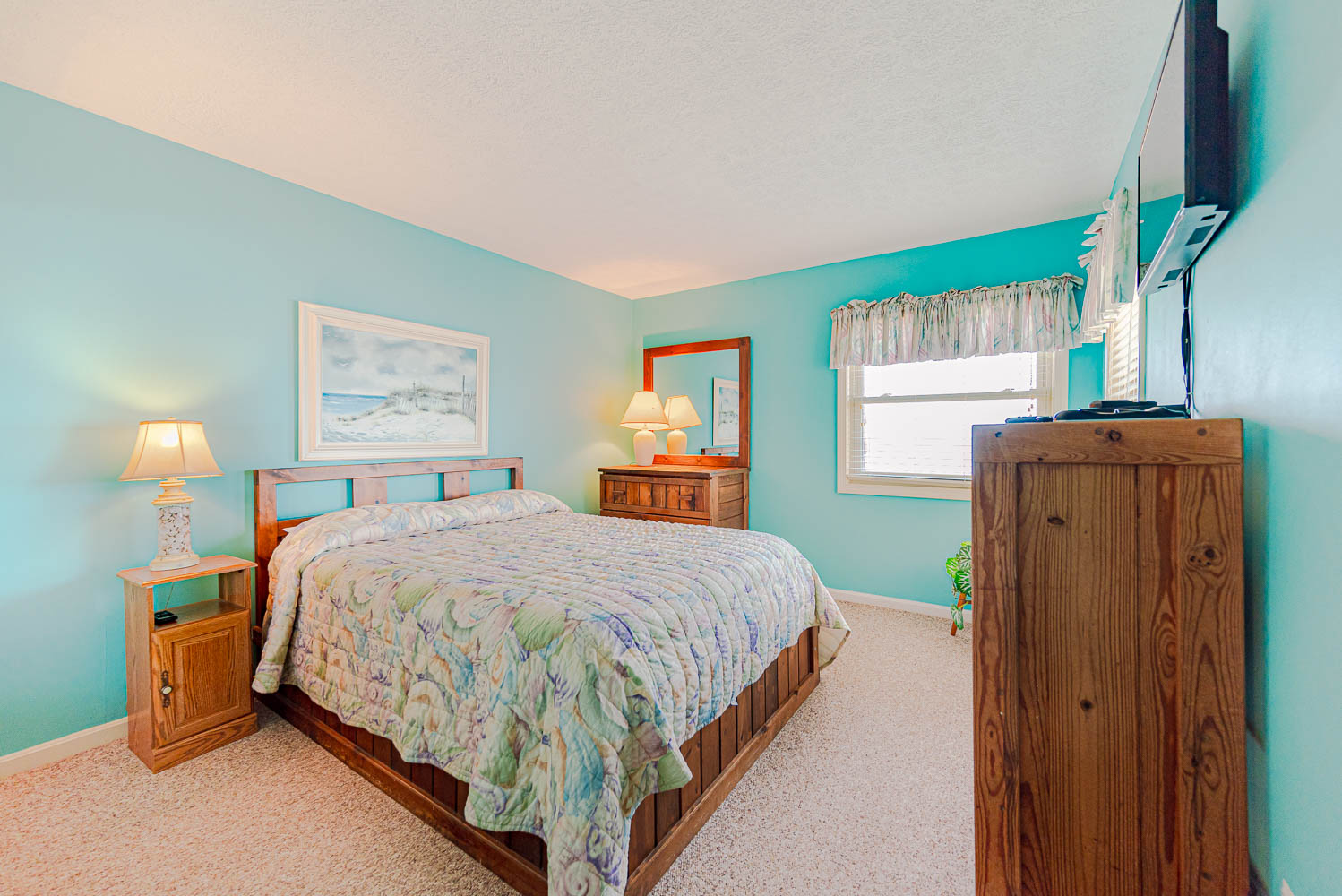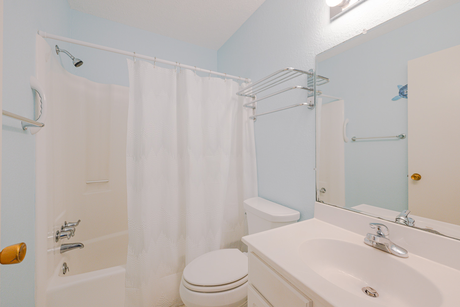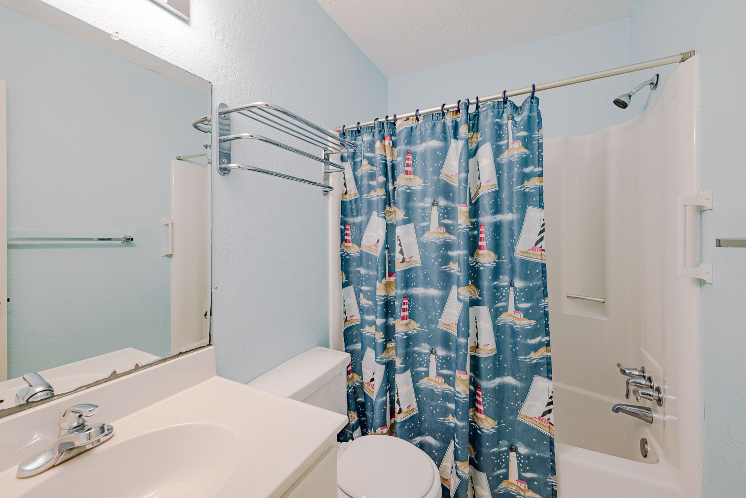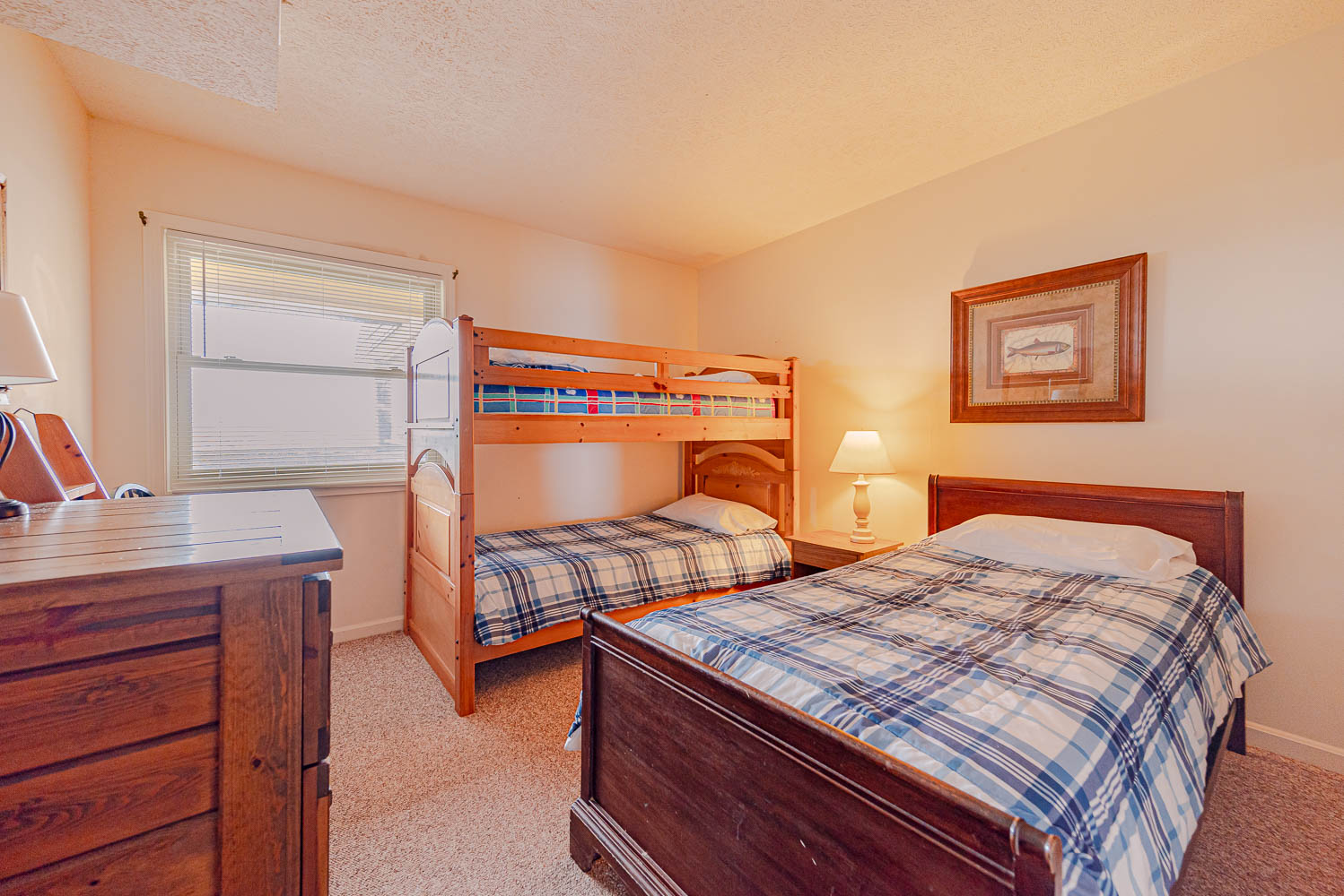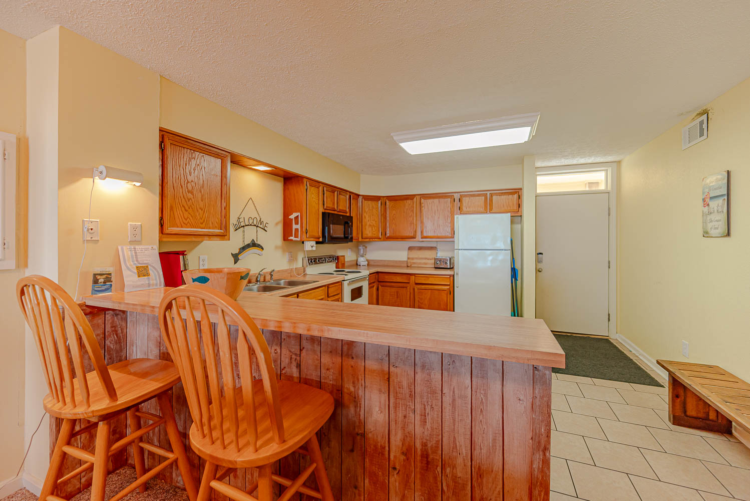 Top Level Unit: Living Area w/TV, Wet Bar w/Ice Maker, & Excellent Ocean Views, Dining Area w/Seating for Six (6), Kitchen Area w/Breakfast Bar, Covered Porch, 2 Bedrooms (Private Suite w/Queen, TV, & Full Bath w/Tub/Shower, 1 w/Bunk Set, Single), & Full Hall Bath w/Tub/Shower.