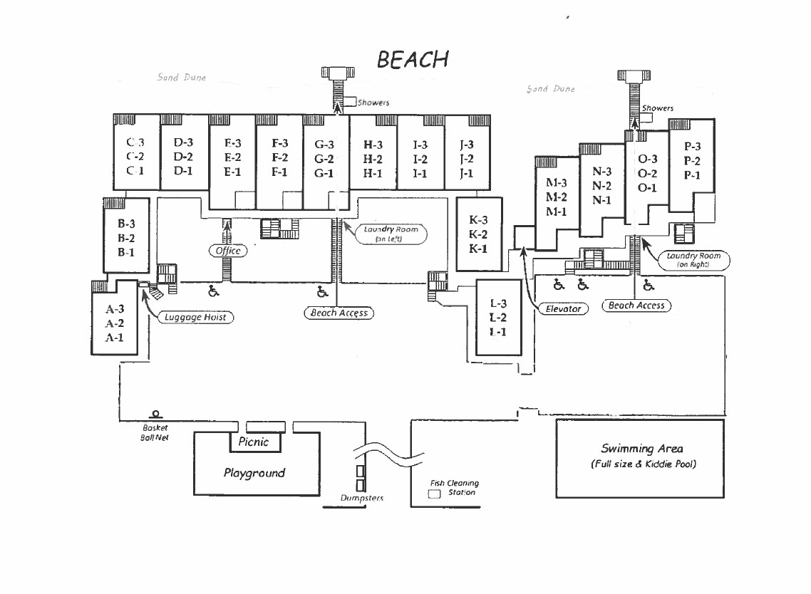 Ground Level: Parking for 2 Cars, Community Swimming Pool, Kiddie Pool, Playground, Picnic Area, Elevator, & Walkway to Beach w/Outside Shower/Footwash.