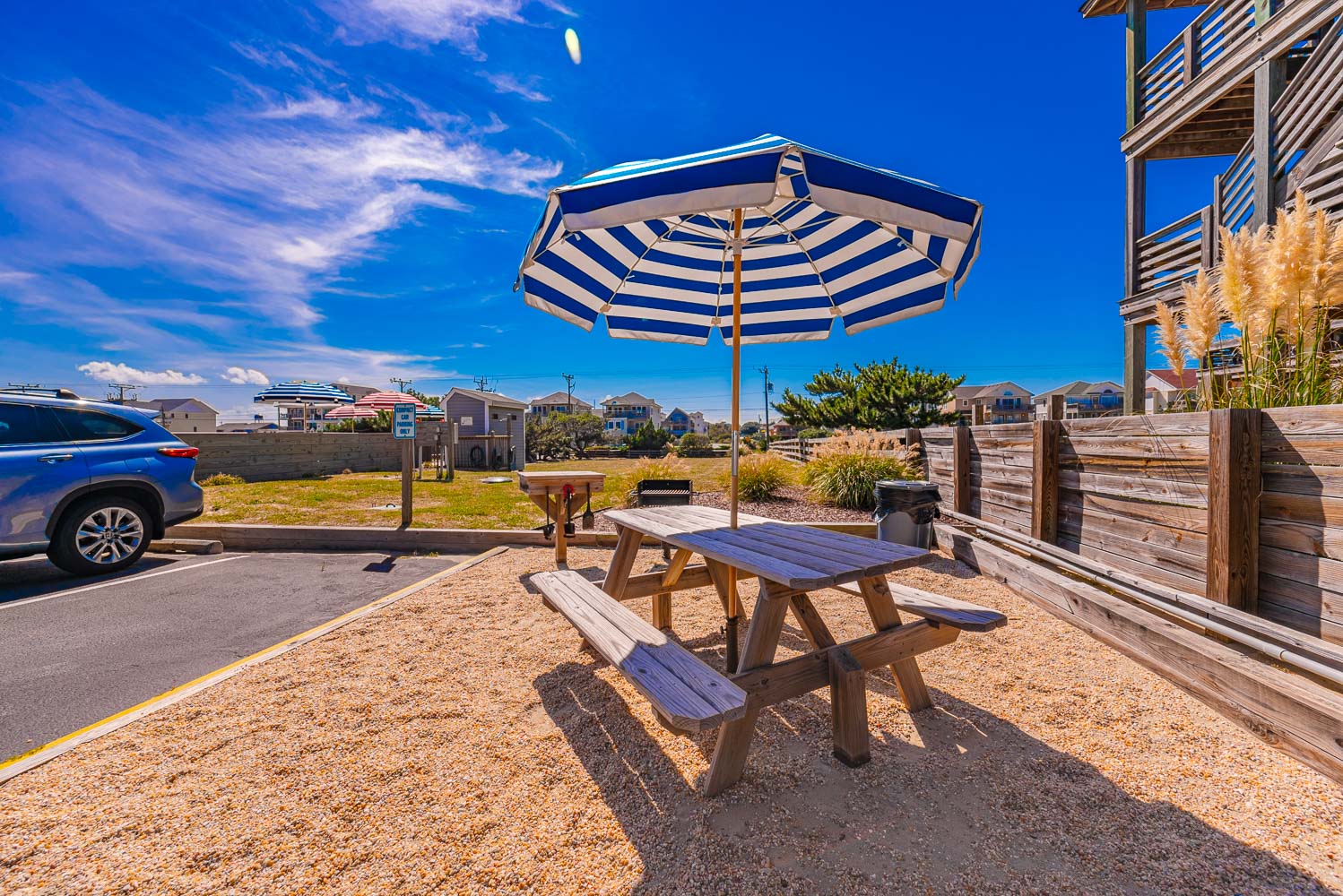 Ground Level: Parking for 2 Cars, Cargo Lift, Steps to 1st Floor, Community Swimming Pool, Pool Furniture, Community Picnic Area w/Grill, and Direct Access to Dune Top Deck w/Built-In Seating and Steps to Beach.