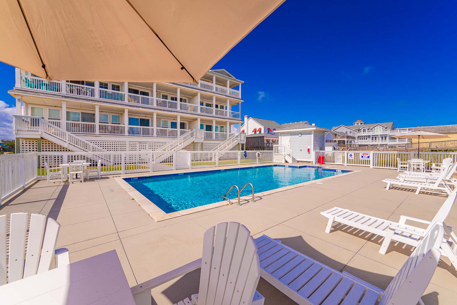 Ground Level: Parking for 2 Cars (One (1) Designated Space Underneath Building & One (1) in Open Parking Lot), Storage for Unit, Oceanfront Community Swimming Pool, Grilling Area w/Picnic Tables, & Walkway to Beach.