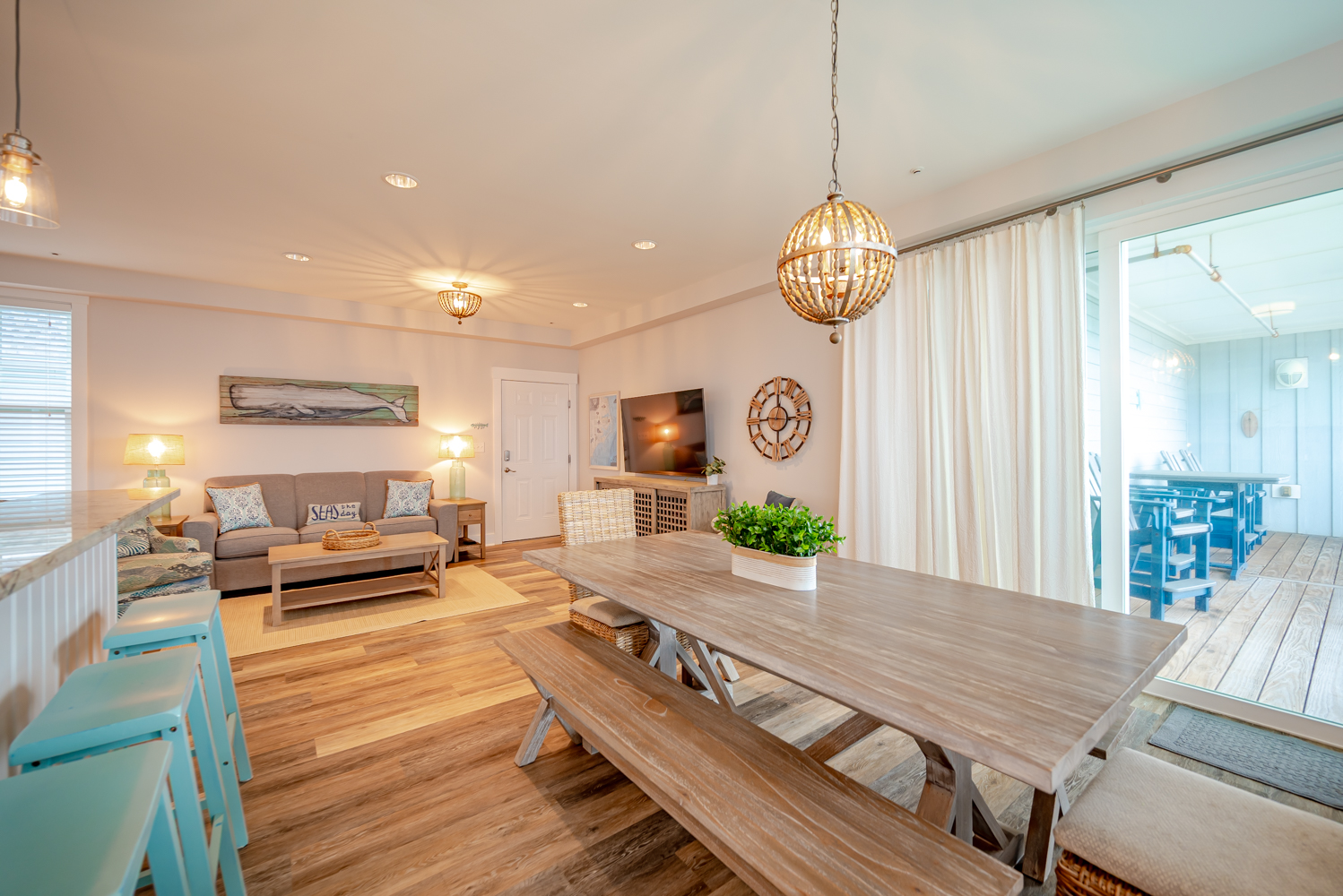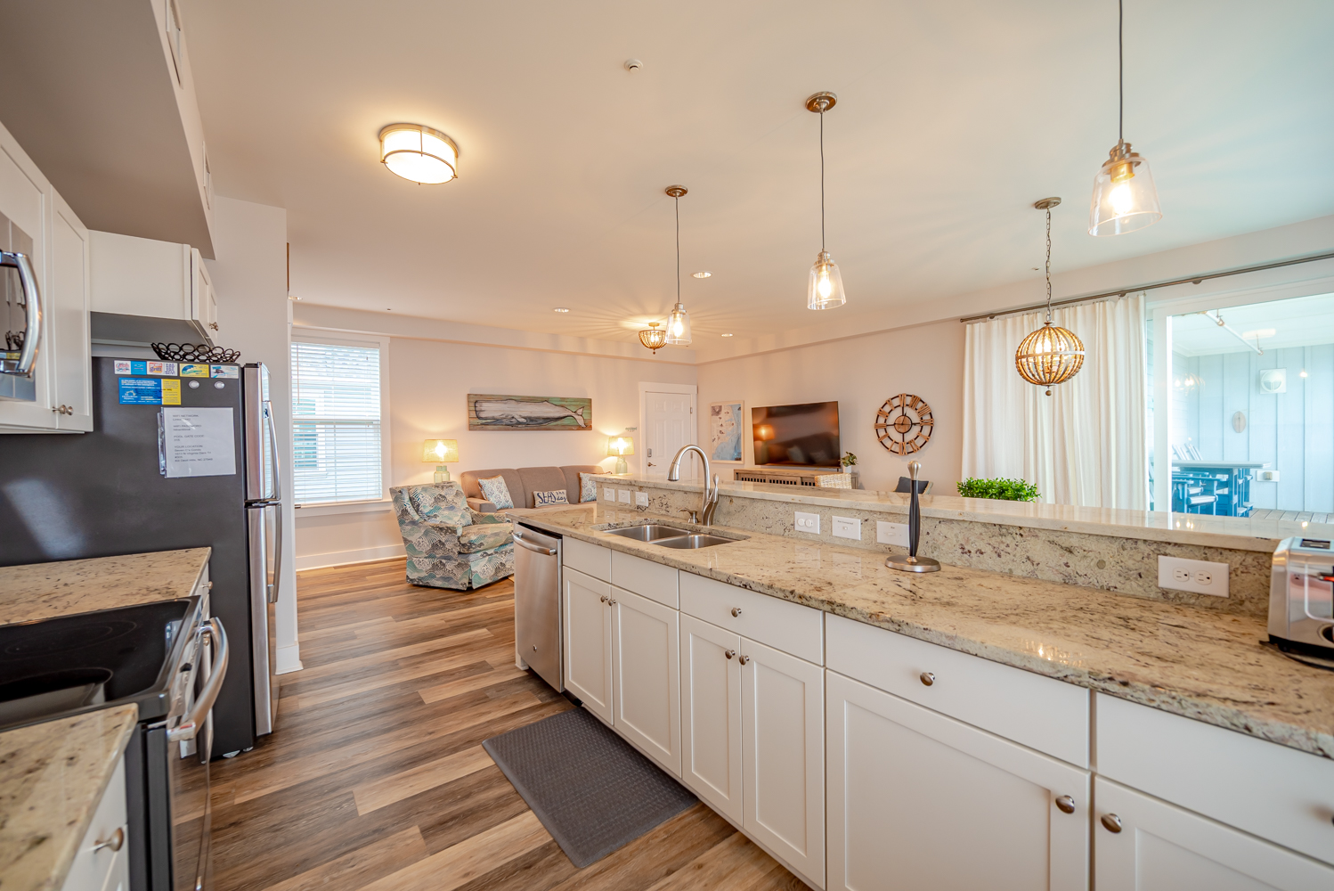 Main Floor: Living/Dining/Kitchen Area, TV, Lovely Furnishing & Décor, Granite Counters, Stainless Steel Appliances, Premium Wood-Look Flooring, Bar Seating, Covered Porch, Ocean Views, Full Hall Bath, Laundry Area, 2 Bedrooms (Private Suite w/Queen, TV, Ocean Views, Full Bath w/Walk-In Shower, & Private Covered Porch w/Views of the Wright Brothers Memorial; 1 w/Duo Bunk & TV).