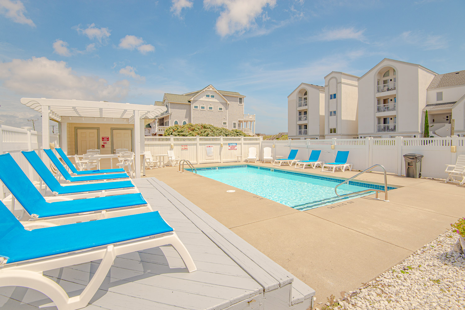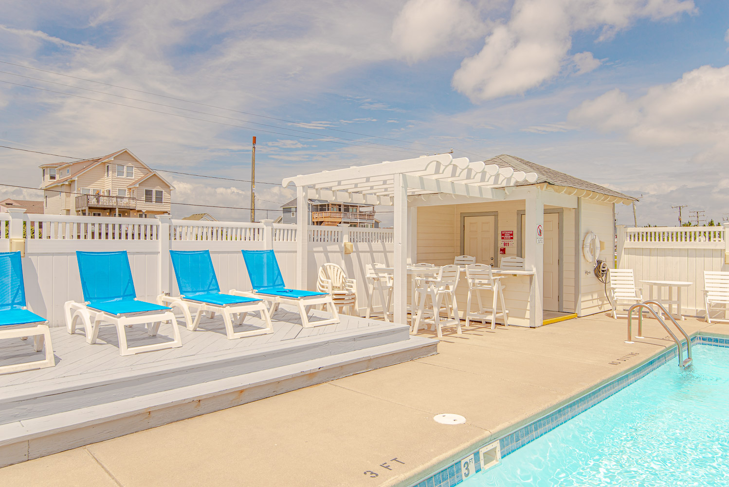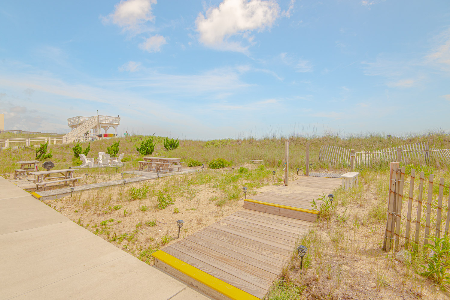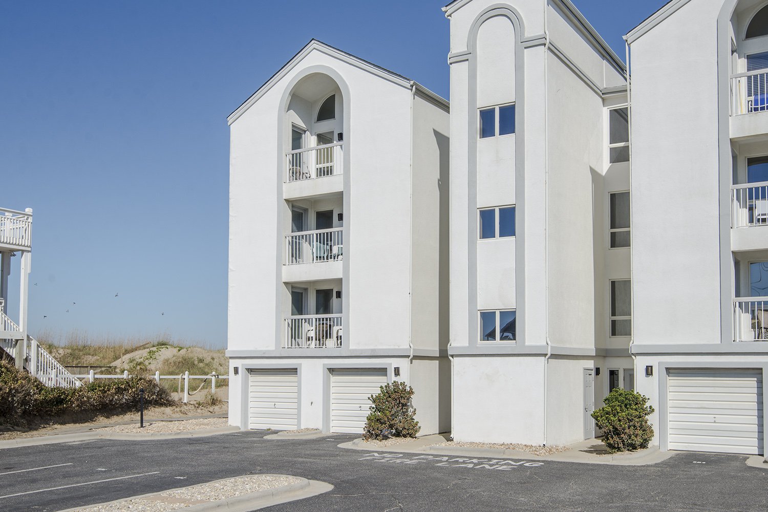 Ground Level: 2 Parking Spaces, Access to Lobby, Elevator, Community Grilling Area, Picnic Tables, Sitting Area, Community Swimming Pool, Pergola w/Seating, Outside Shower, and Walkway to Beach.