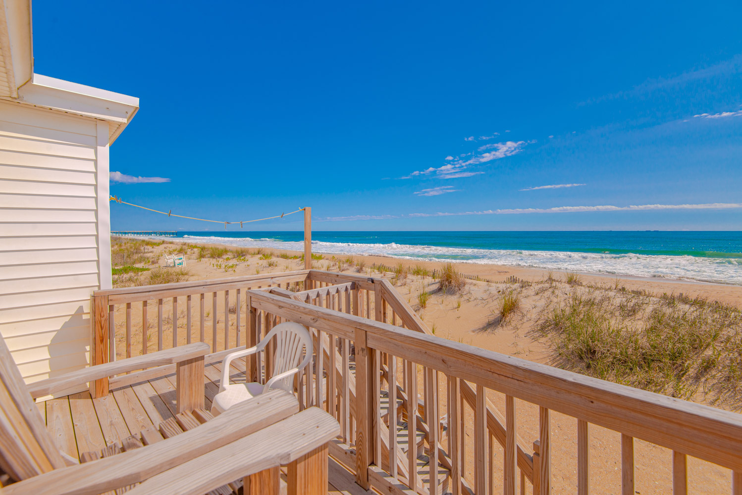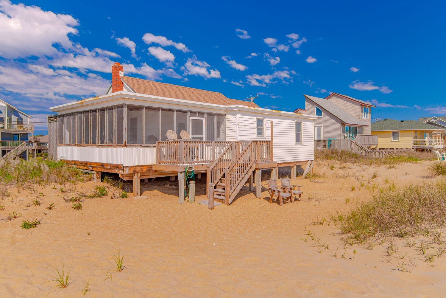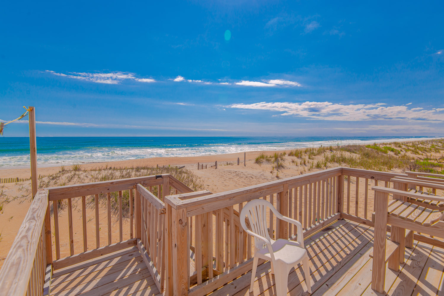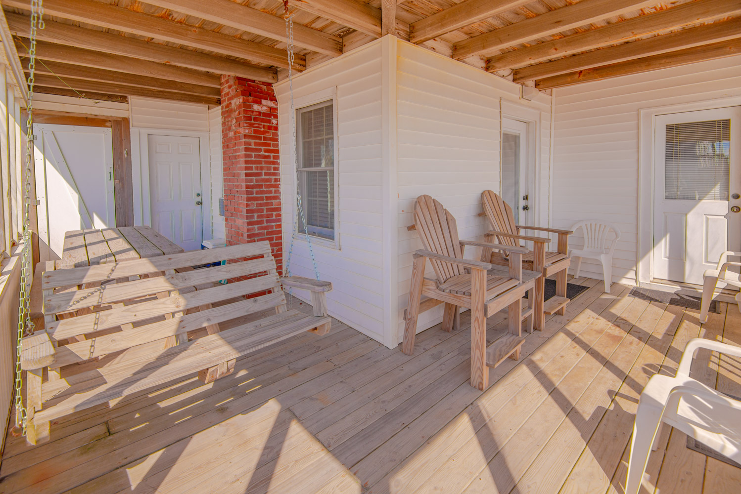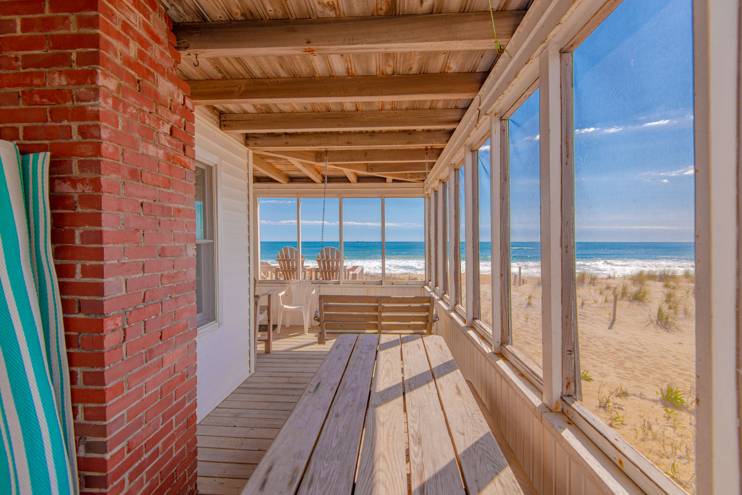 Main Level: Living Area, Roku Smart TV, DVD; Dining Area, Kitchen Area w/Island Bar Seating; 3 Bedrooms (1 w/Queen, 1 w/2 Doubles, 1 w/Double); Full Hall Bath w/Shower; Screen Porch, Deck Furniture, Porch Swing, Picnic Table, Enclosed Outside Shower, Oceanfront Sun Deck w/Chairs, Gate, and Steps to Beach.