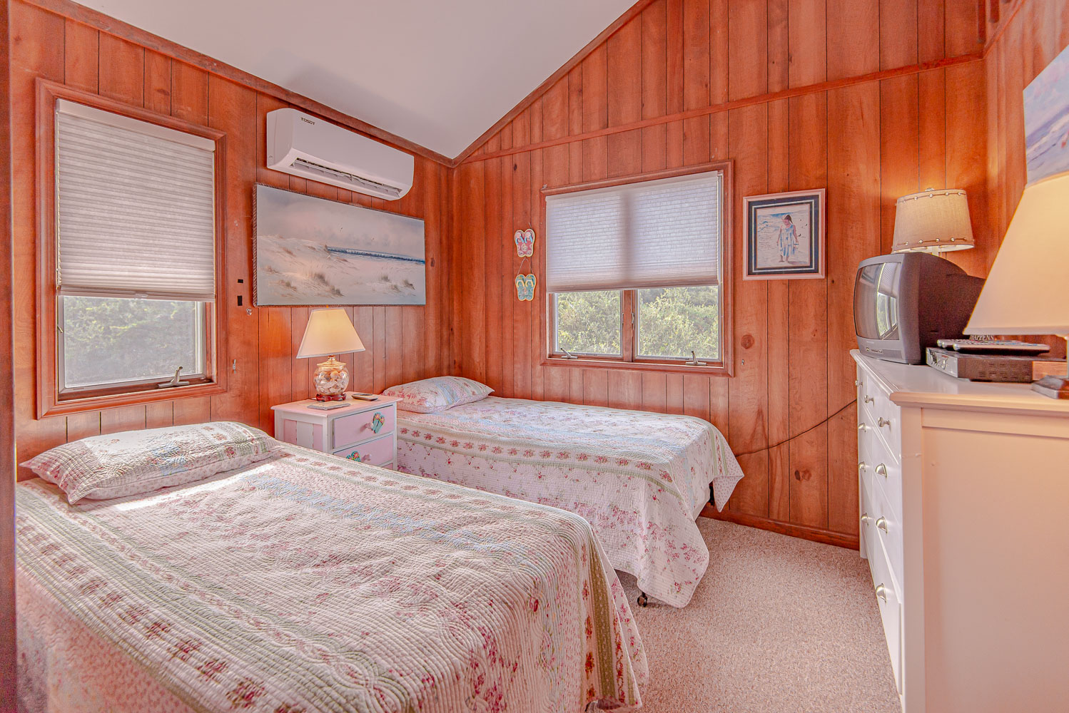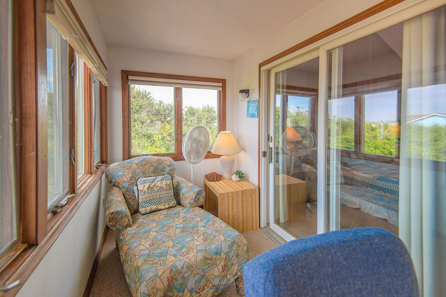 Top Level: 2 Bedrooms w/Mini-Split AC Units (1 w/King, 42 Inch Flat Screen; 1 w/2 Singles), Full Bath w/Wall Hair Dryer, Loft w/Sitting Area, and Sun Room.