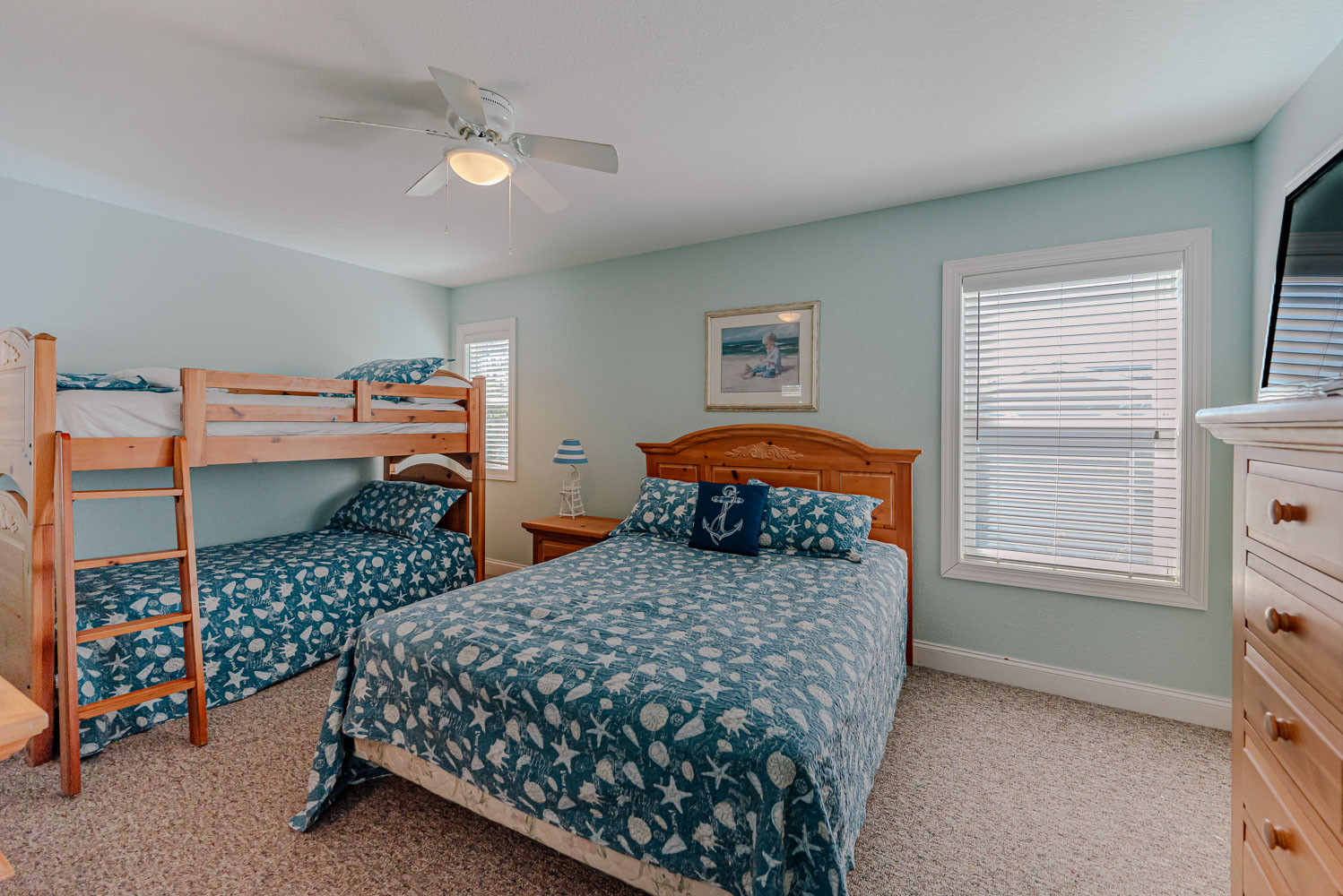 Mid Level: 3 Bedrooms (Private Suite w/Queen, Full Bath, Private Covered Deck; 1 w/Queen, 1 w/Queen, Bunk Set); Shared Full Bath, Covered Deck w/Furniture.
