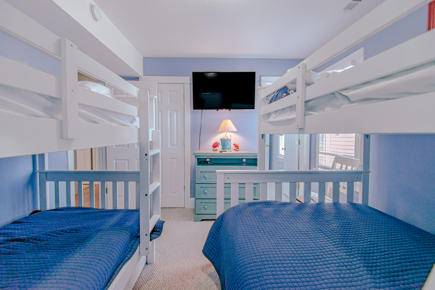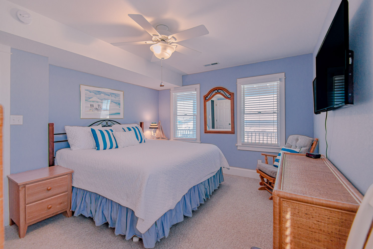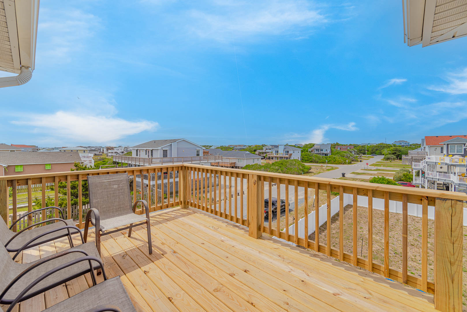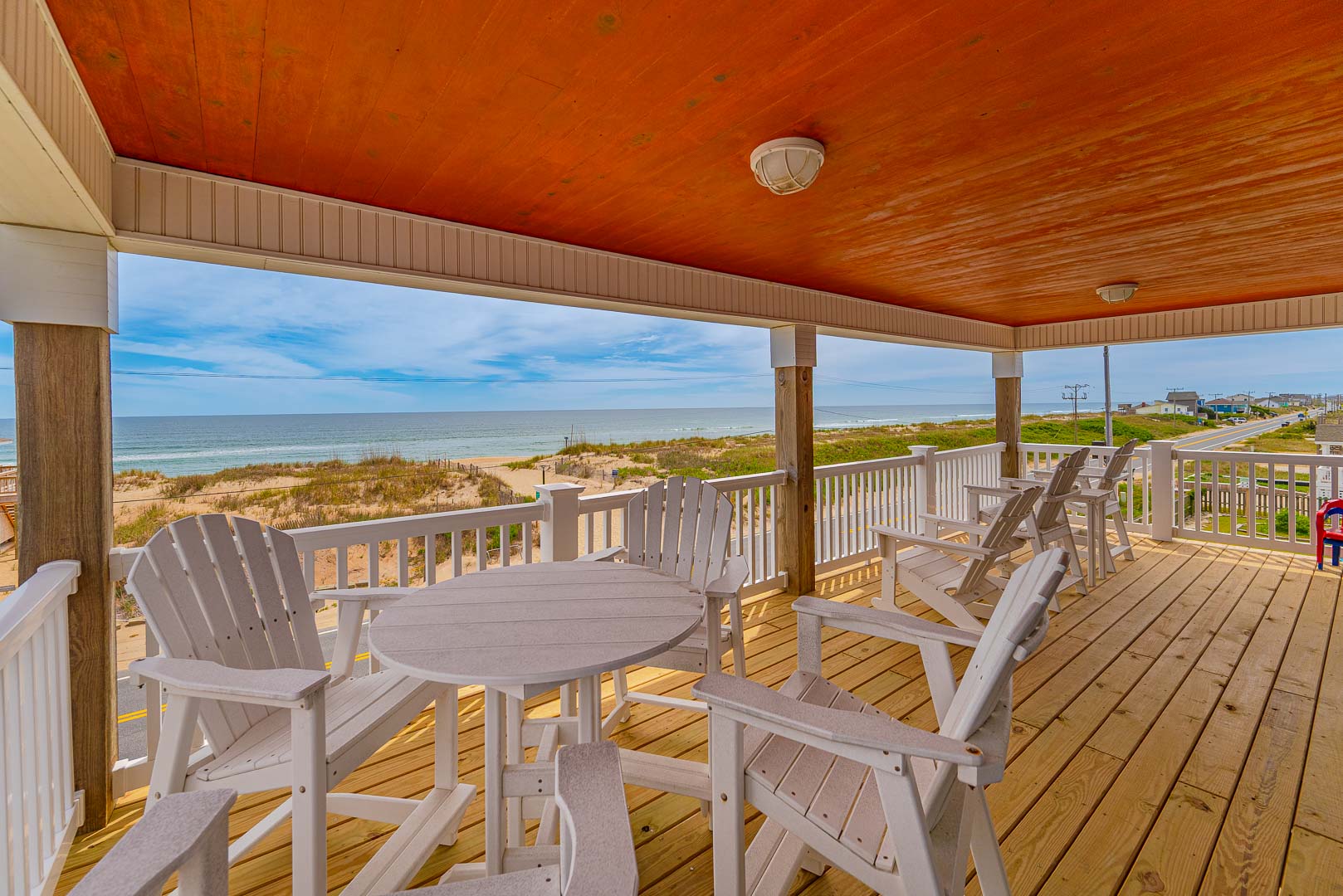 Mid Level: 3 Bedrooms (1 w/King, Smart TV, 1 w/Duo Bunk, Bunk Set, Smart TV, Jack-n-Jill Full Bath w/Walk-in Shower; 1 w/Queen, Smart TV), Full Hall Bath w/Tub/Shower, West Side Covered Deck w/Hot Tub, and Ocean Facing Covered Deck w/Deck Furniture, Double Seat Hammock Swing, and Great Ocean Views.