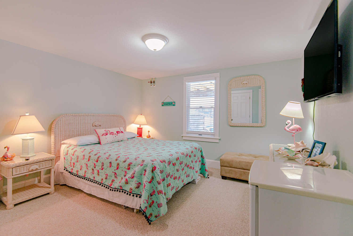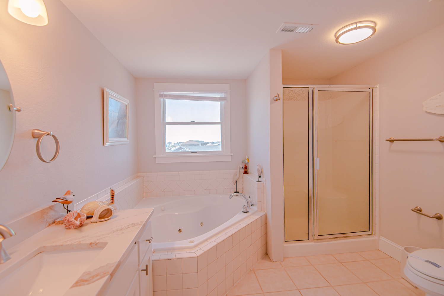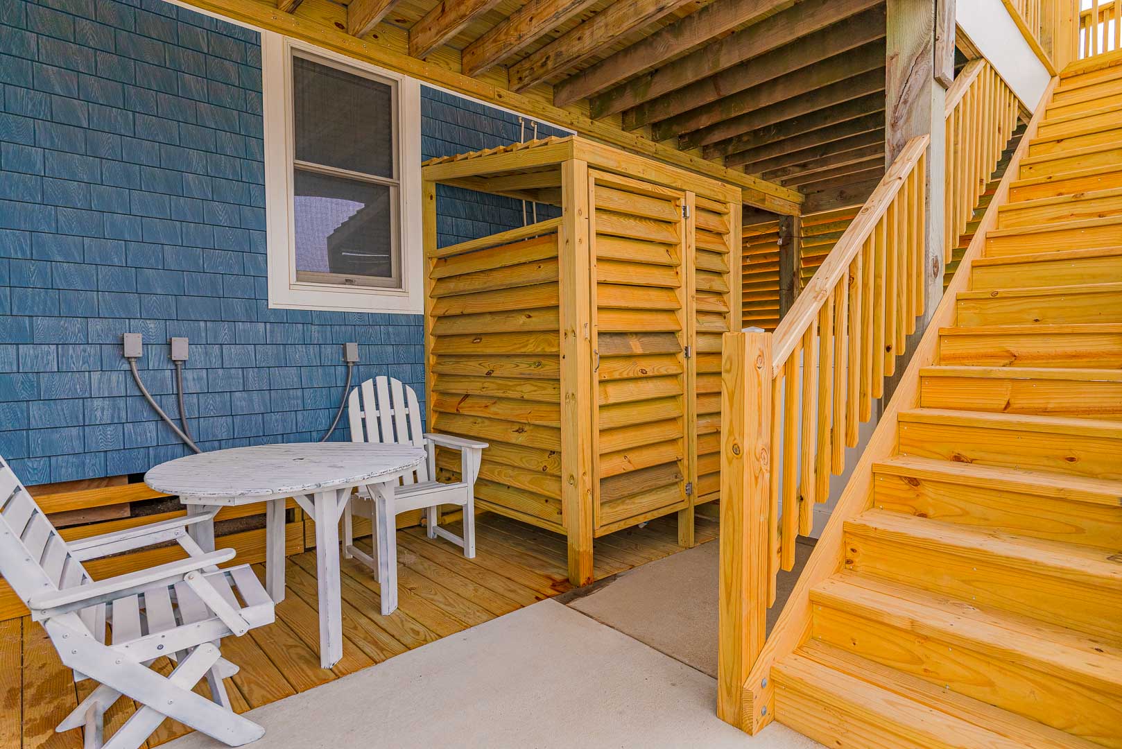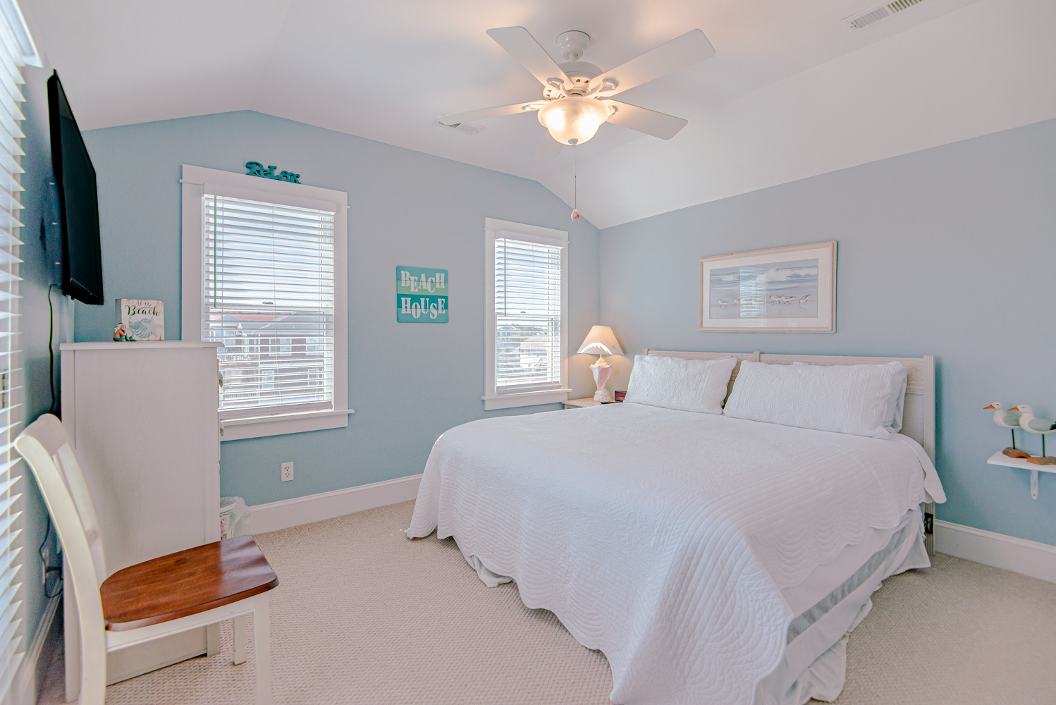 Mid Level: 3 Bedrooms (1 w/King, Smart TV, 1 w/Duo Bunk, Bunk Set, Smart TV, Jack-n-Jill Full Bath w/Walk-in Shower; 1 w/Queen, Smart TV), Full Hall Bath w/Tub/Shower, West Side Covered Deck w/Hot Tub, and Ocean Facing Covered Deck w/Deck Furniture, Double Seat Hammock Swing, and Great Ocean Views.