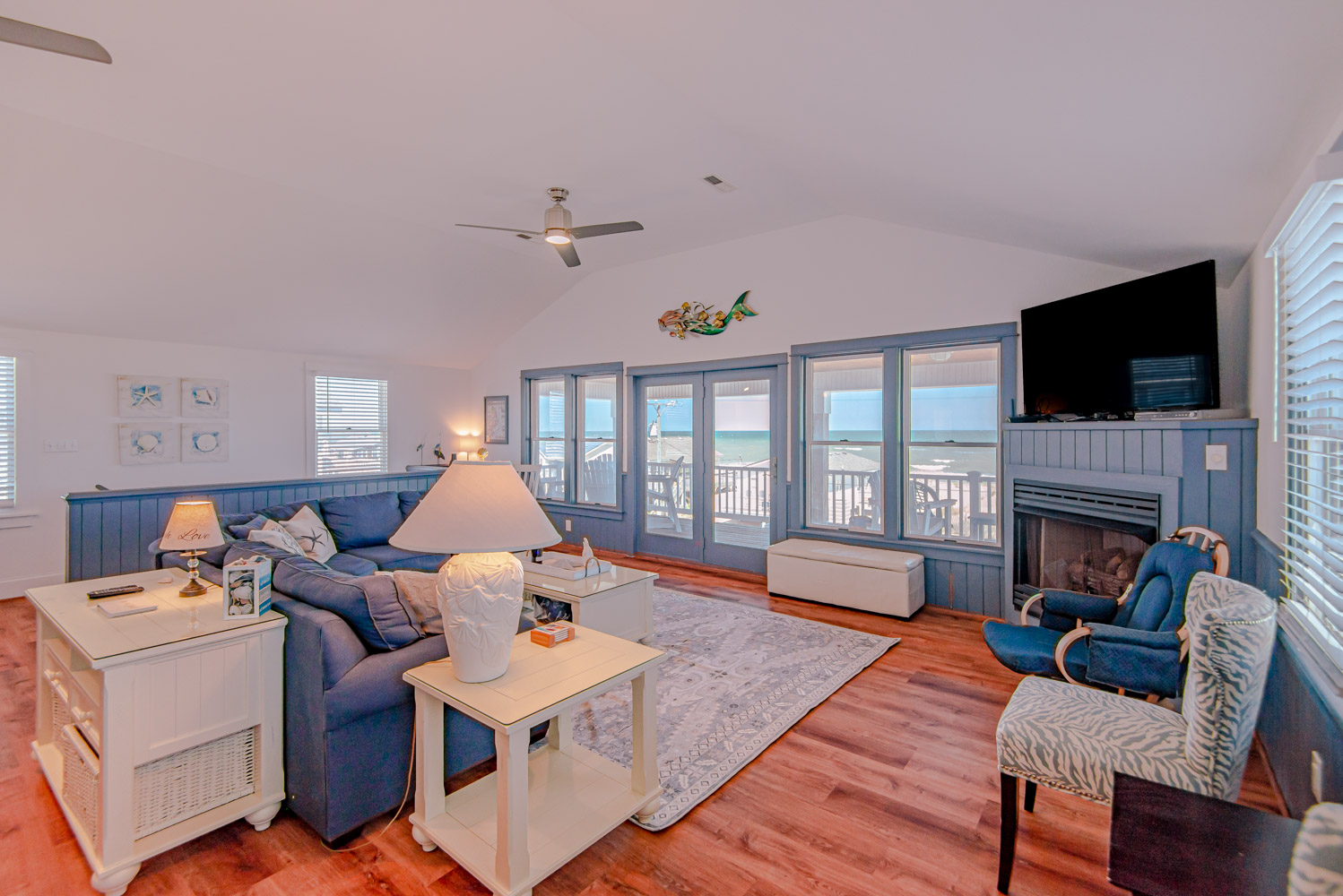 Top Level: Expansive Living Area, Smart TV, Cathedral Ceilings, Access to Covered Deck w/Deck Furniture, Stunning Ocean Views; Fully Equipped Kitchen, Breakfast Bar Seating for Four (4); Dining Area; Half Bath, and Private Suite w/King, Smart TV, New Remodeled Full Bath, Shower, and Private Sun Deck.