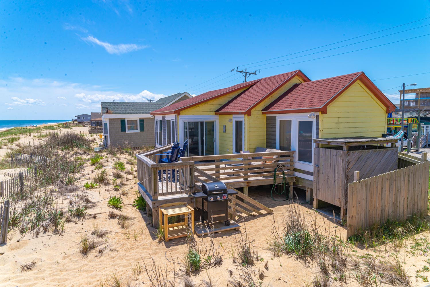 OCEANFRONT - KITTY HAWK Endless Ocean and Beach Views and a location that is just steps from the beach make Terra Mar an ideal choice for your Outer Banks getaway. Cozy and comfortable, all are sure to be thrilled with the great ocean views and natural dune scape vistas. The living area boasts large picture windows and the ocean front deck that is ideal for watching the sunrise over the Atlantic. This is a nicely decorated Oceanfront Home that is perfect for a small family or a romantic escape. Situated just above the Beach w/Excellent Views, this home has a sand path that leads directly to the ocean. Conveniently located across from a Quaint Beach Grille, Art's Place, and one of the area’s top restaurants, Ocean Boulevard. The Sea Scape Golf Links are only two blocks away so don't forget your clubs.