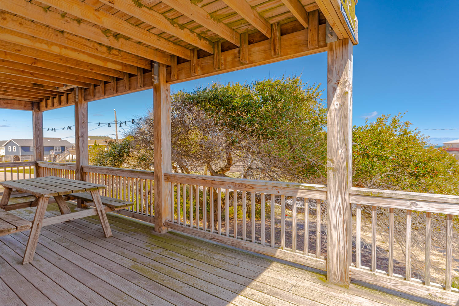 Mid Level: 3 Bedrooms (1 w/Queen, Full Bath (Shared w/Hallway); 1 w/Queen; 1 w/2 Singles, 1 Trundle), Laundry Area, and Covered Porch, Picnic Table, and Ocean Views.