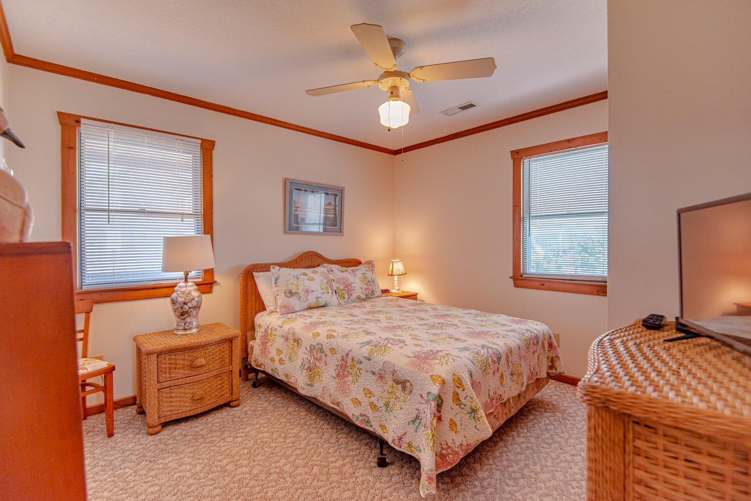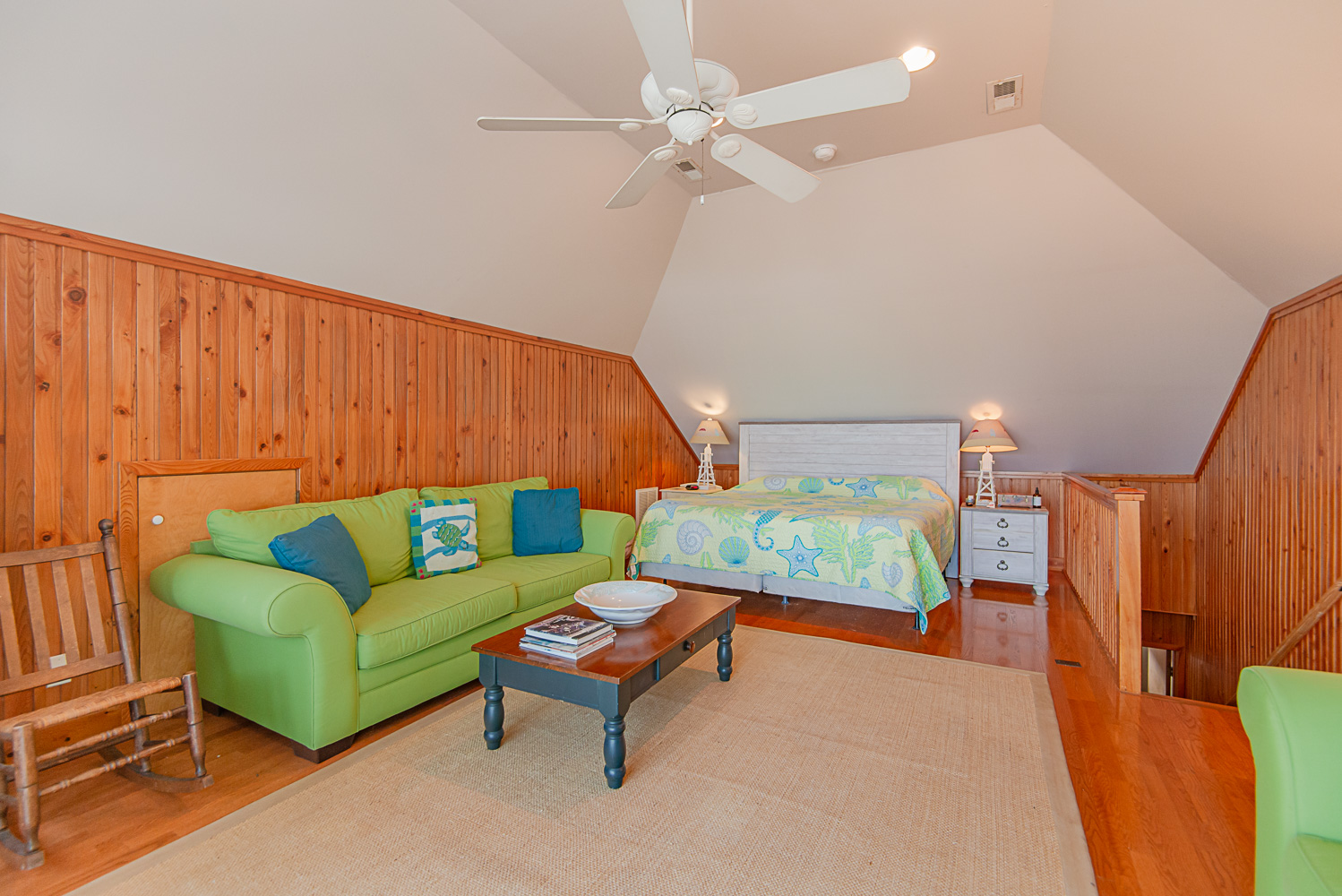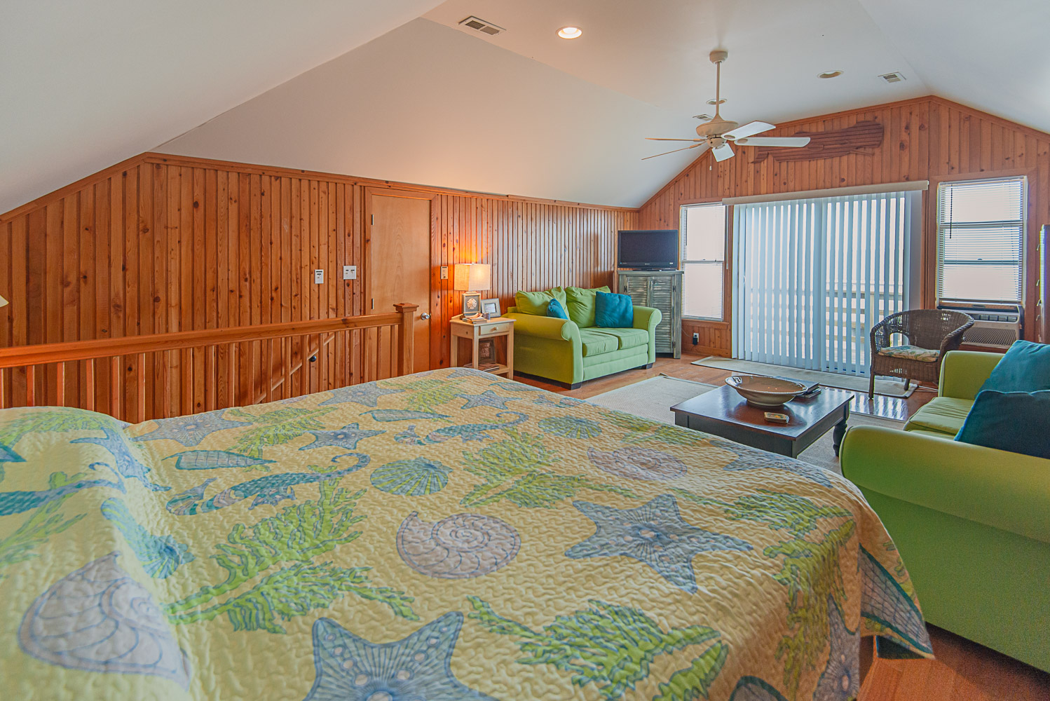 Top Level: Bedroom w/ King, TV, Ocean Views, and Sun Deck.