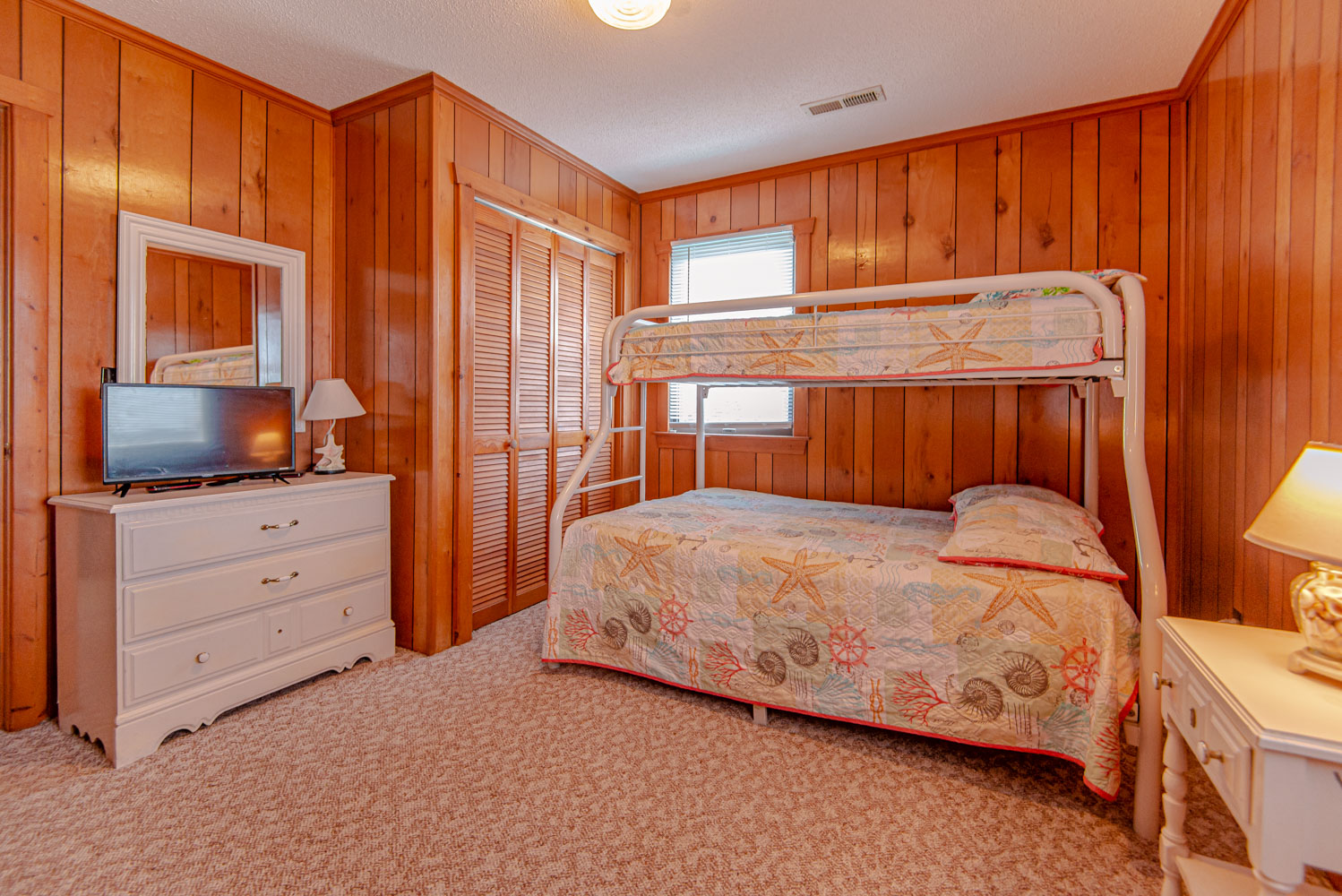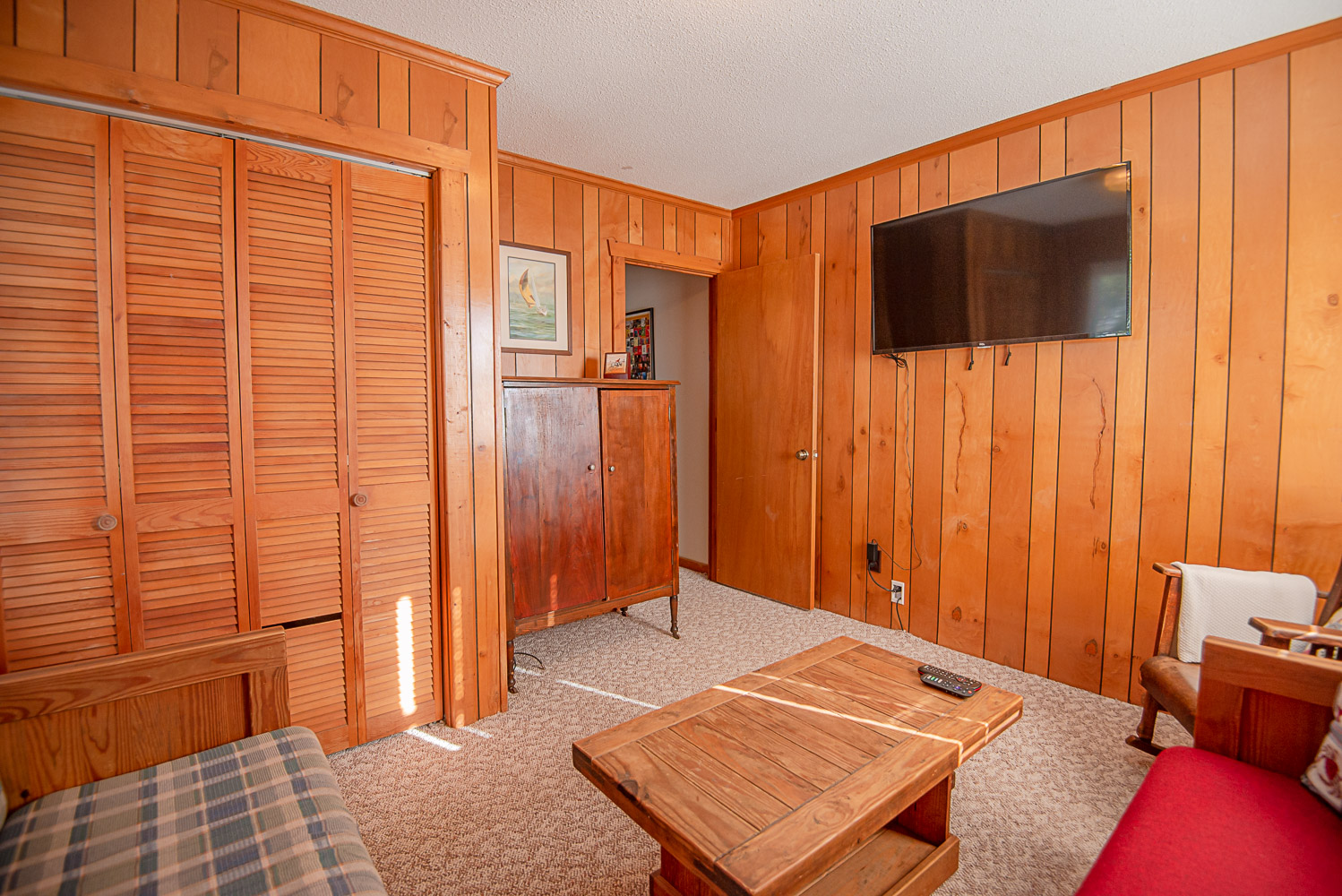 Mid Level: Living Area, Large TV, Kitchen/Dining Area, Seating for Eight (8), Den, Large TV, 3 Bedrooms (2 w/Queens; 1 w/Duo Bunk), 2 Full Baths w/Tub/Shower, and Covered Deck w/Deck Furniture.