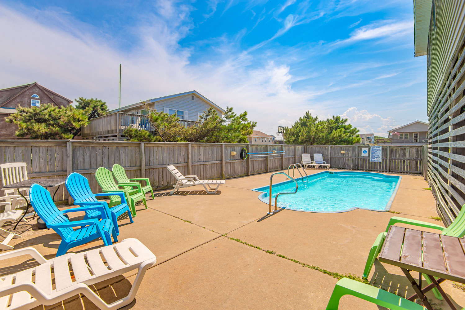 Ground Level: Parking for 4 Cars, Picnic Table, Private 12 x 30 Swimming Pool - Open Seasonally, Enclosed Outside Shower, Sitting Area, Charcoal Grill, and Fish Cleaning Station.