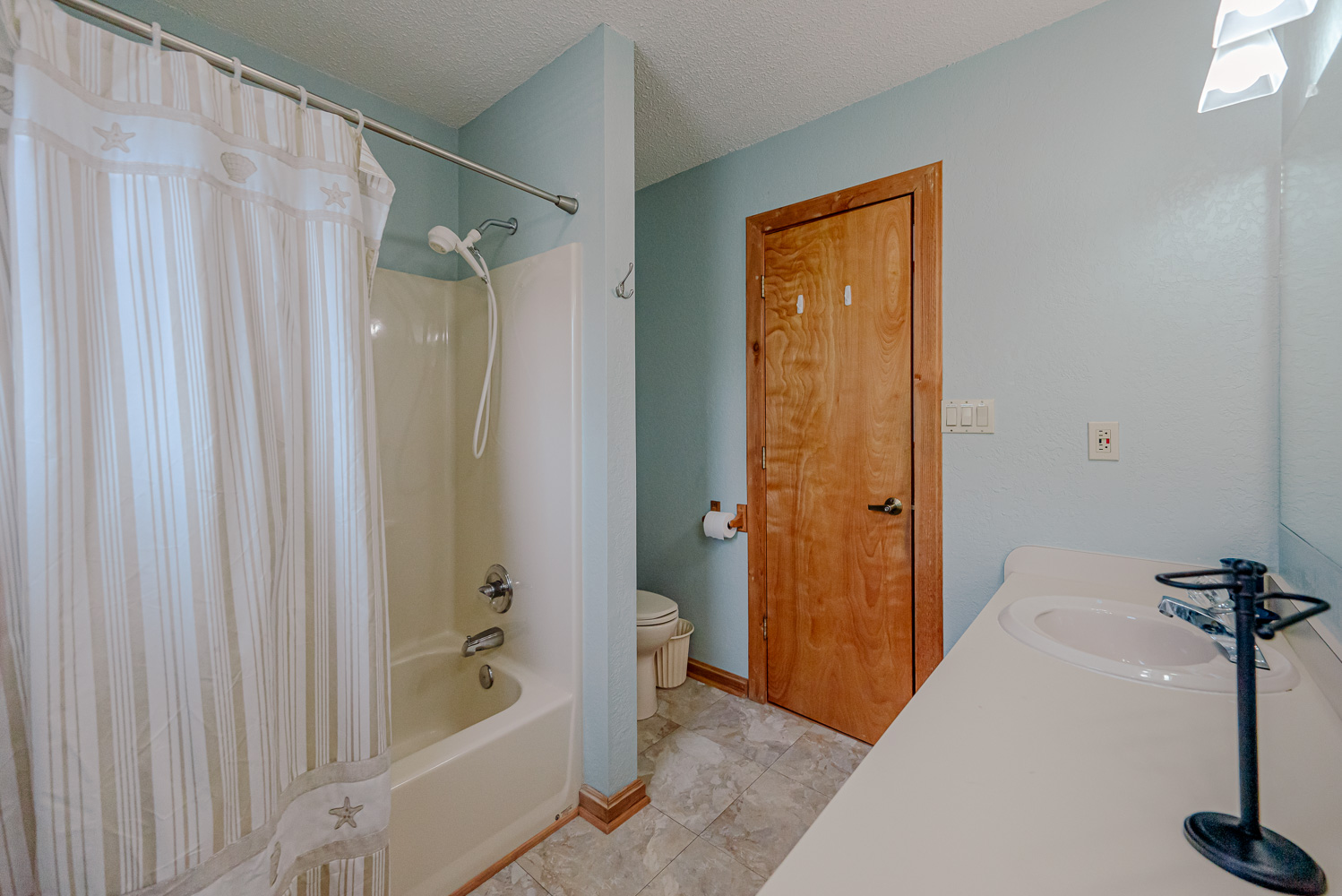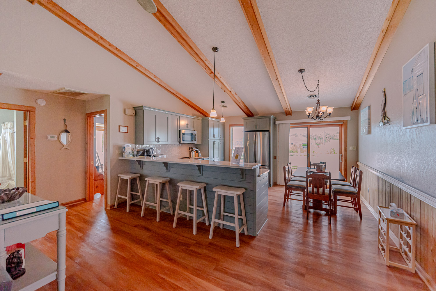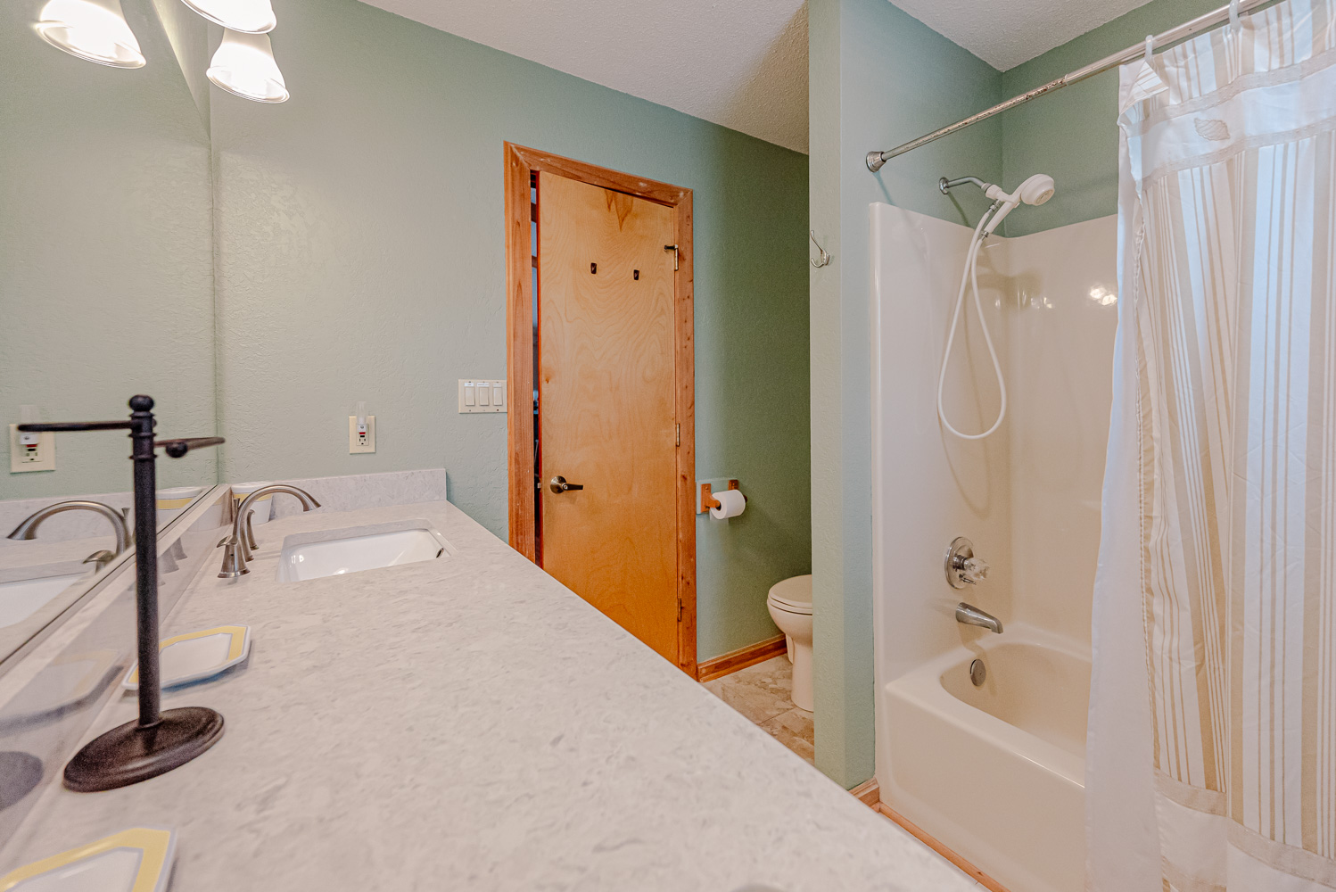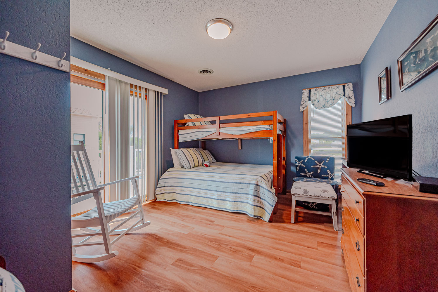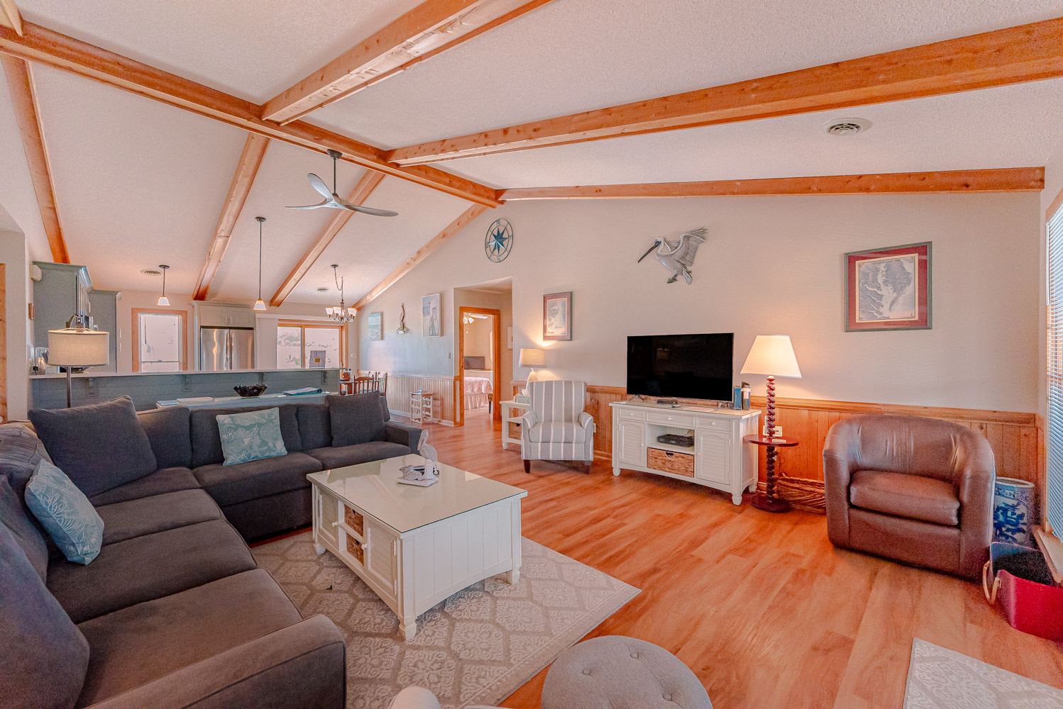 Main Level: Living/Dining/Kitchen Area, 40 Inch HDTV, DVD, 4 Bedrooms (1 w/King, 28 Inch TV; 2 w/Queens, 28 Inch TVs; 1 w/Duo Bunk, 28 Inch TV), 2 Full Baths w/Dual Sinks & Tub/Showers, Access to Covered Deck w/Deck Furniture.