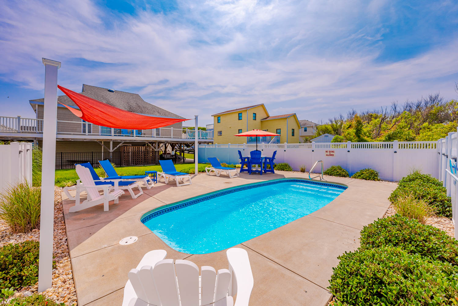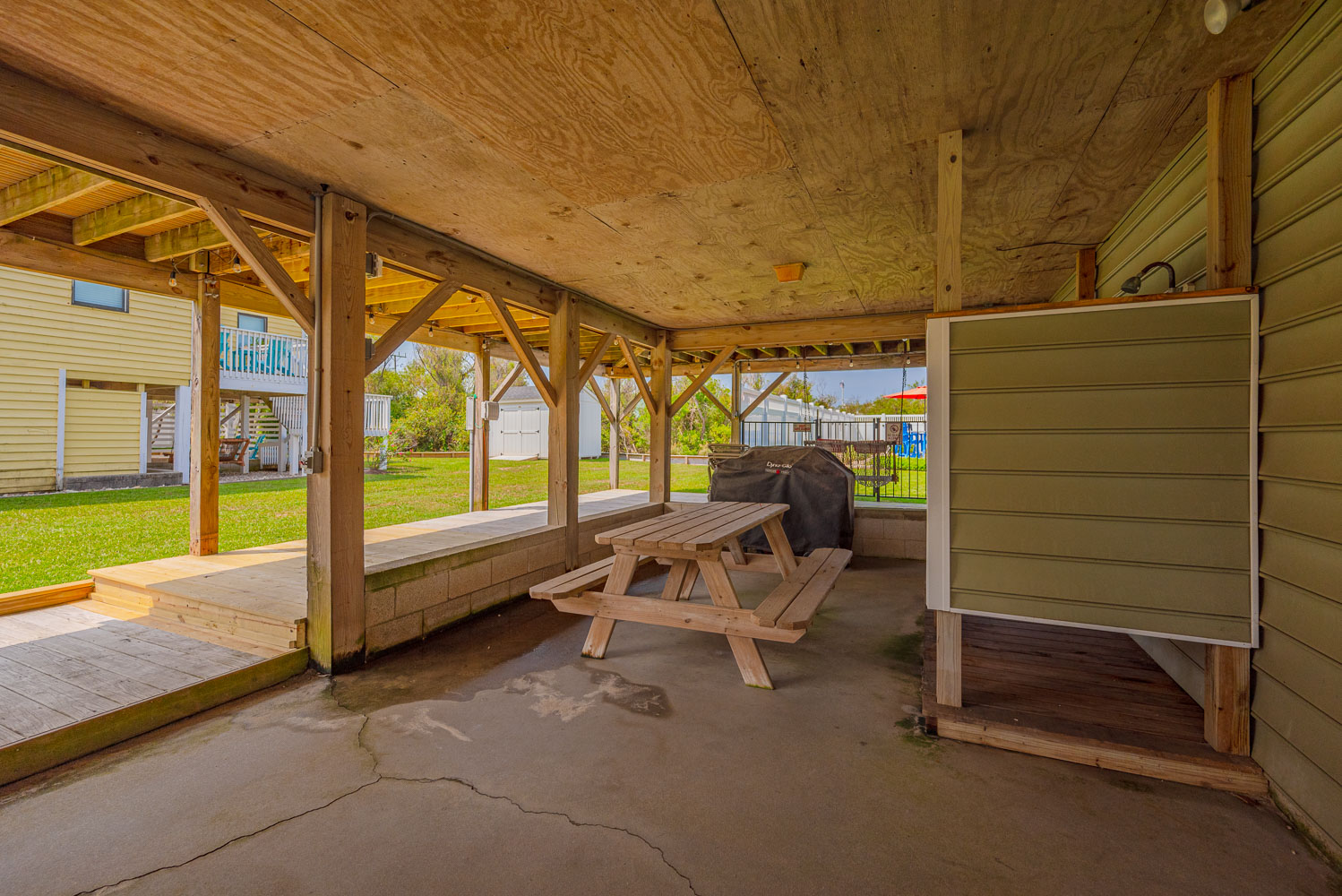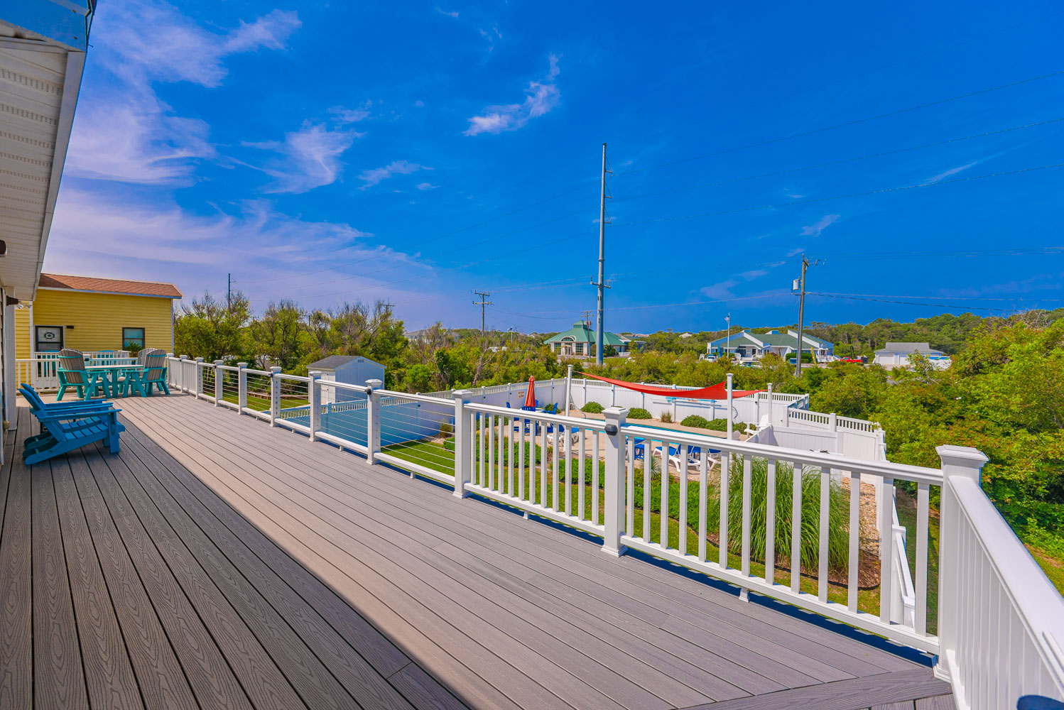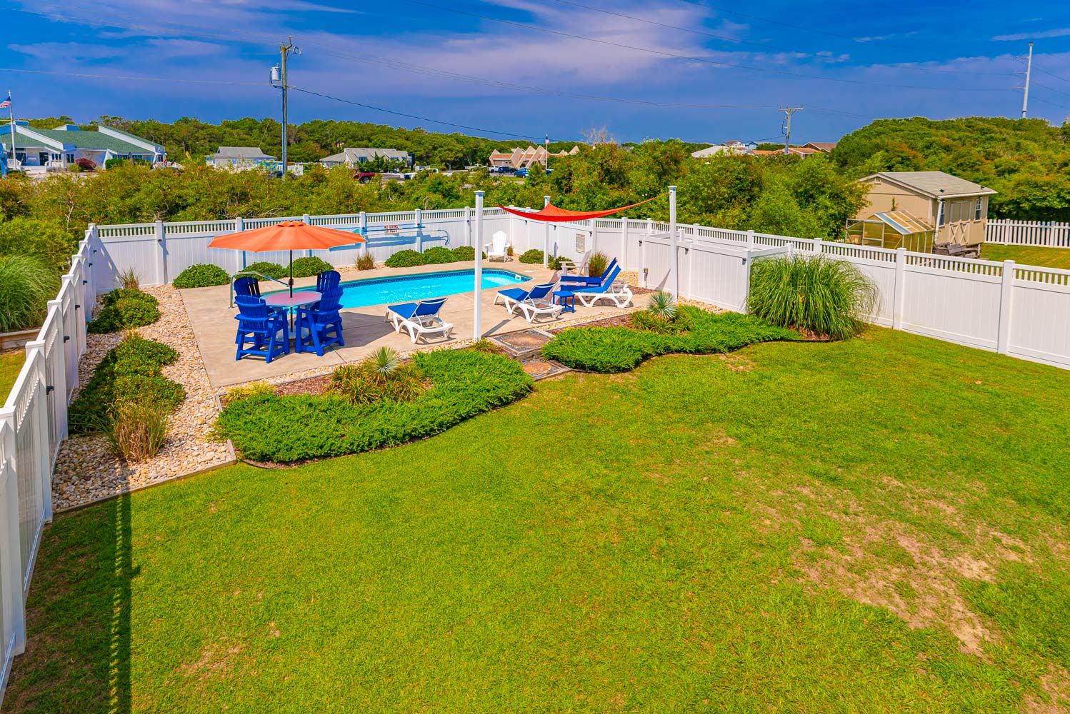 Ground Level: Parking for 4 Cars, Utility Room w/Washer/Dryer, Steps to Top Level Entry, Gas Grill, Picnic Table, Outdoor Ping Pong Table (Paddles in Storage Area), Private Swimming Pool - Open Seasonally, Deck, Fenced-In Landscaped Yard, Enclosed Outside Shower, & Corn Hole Boards.
