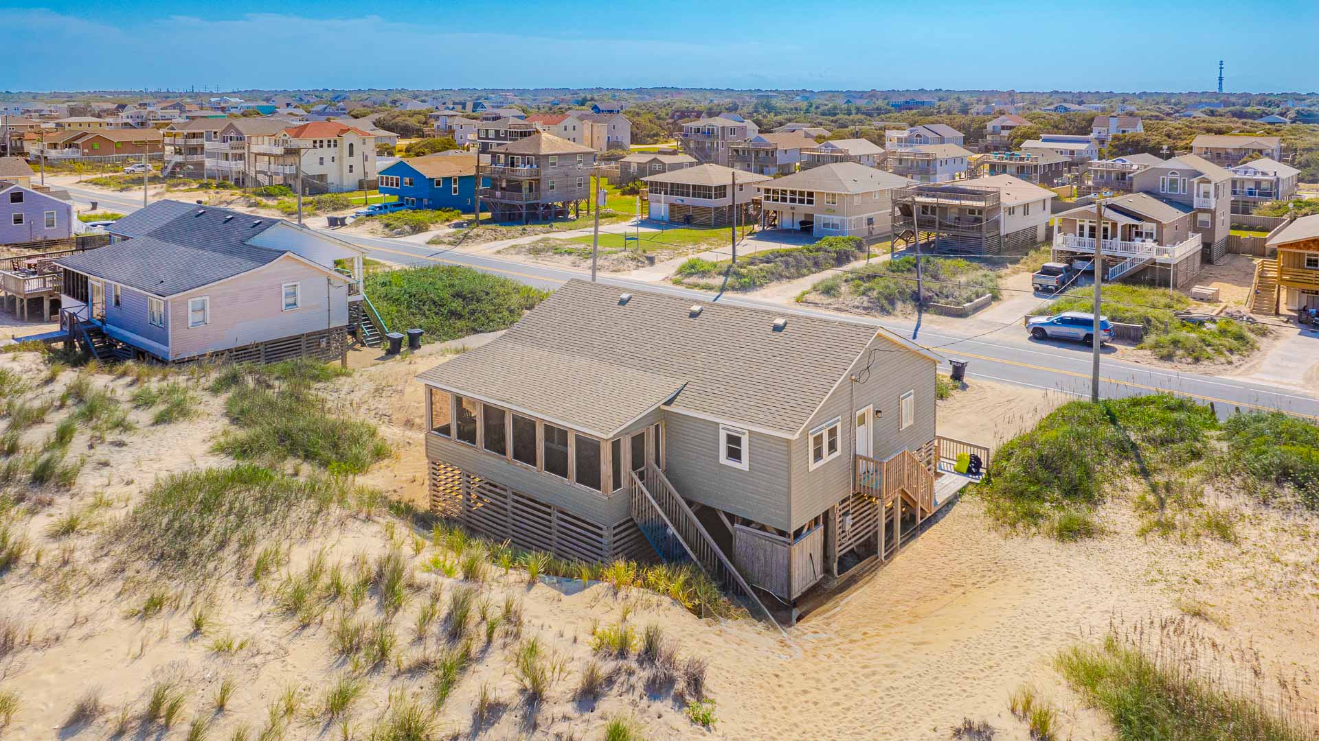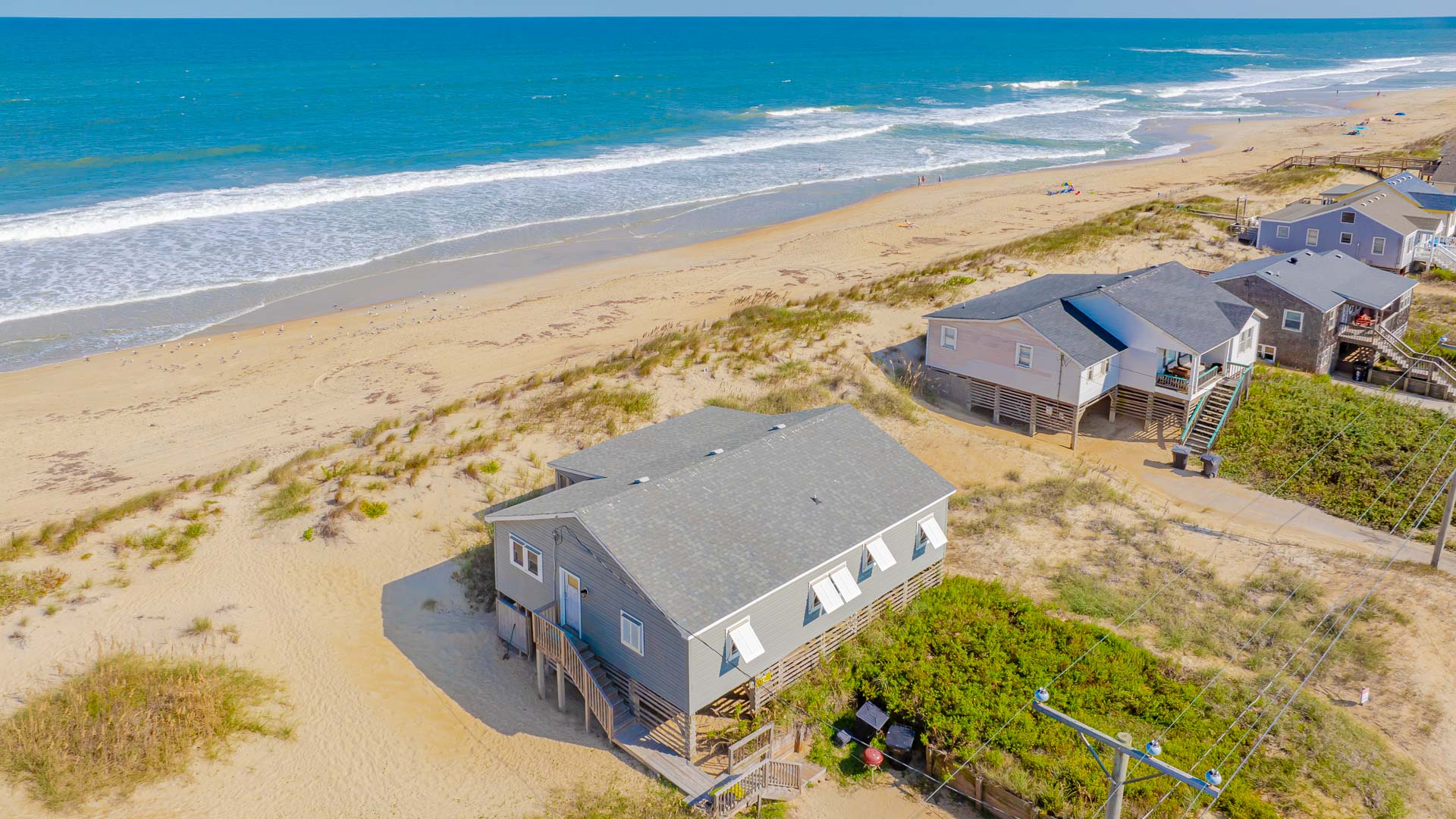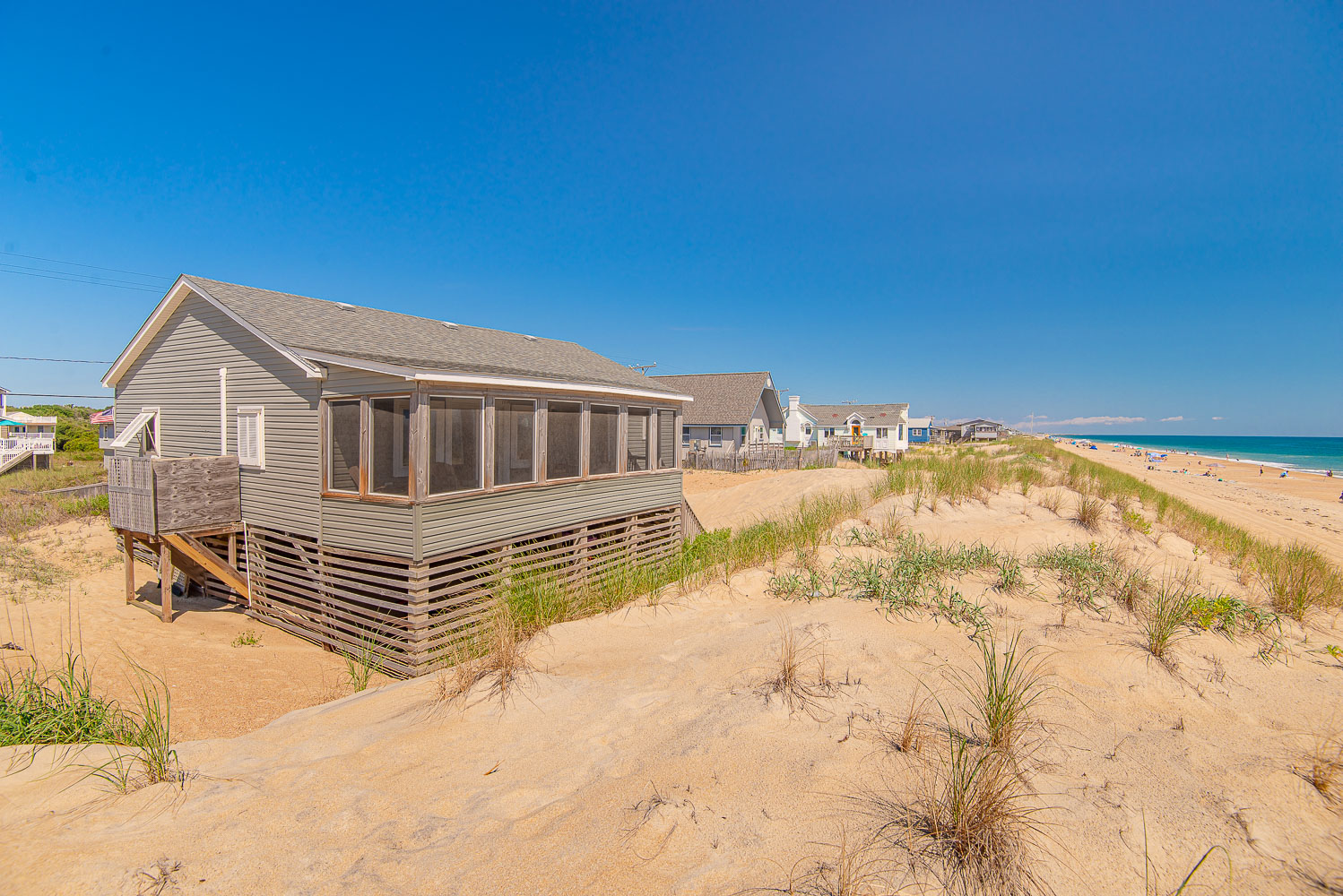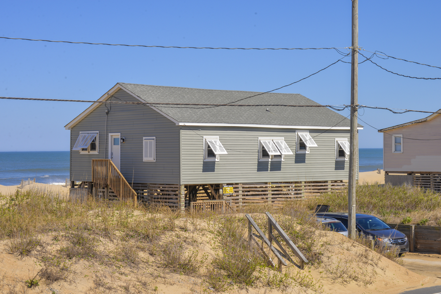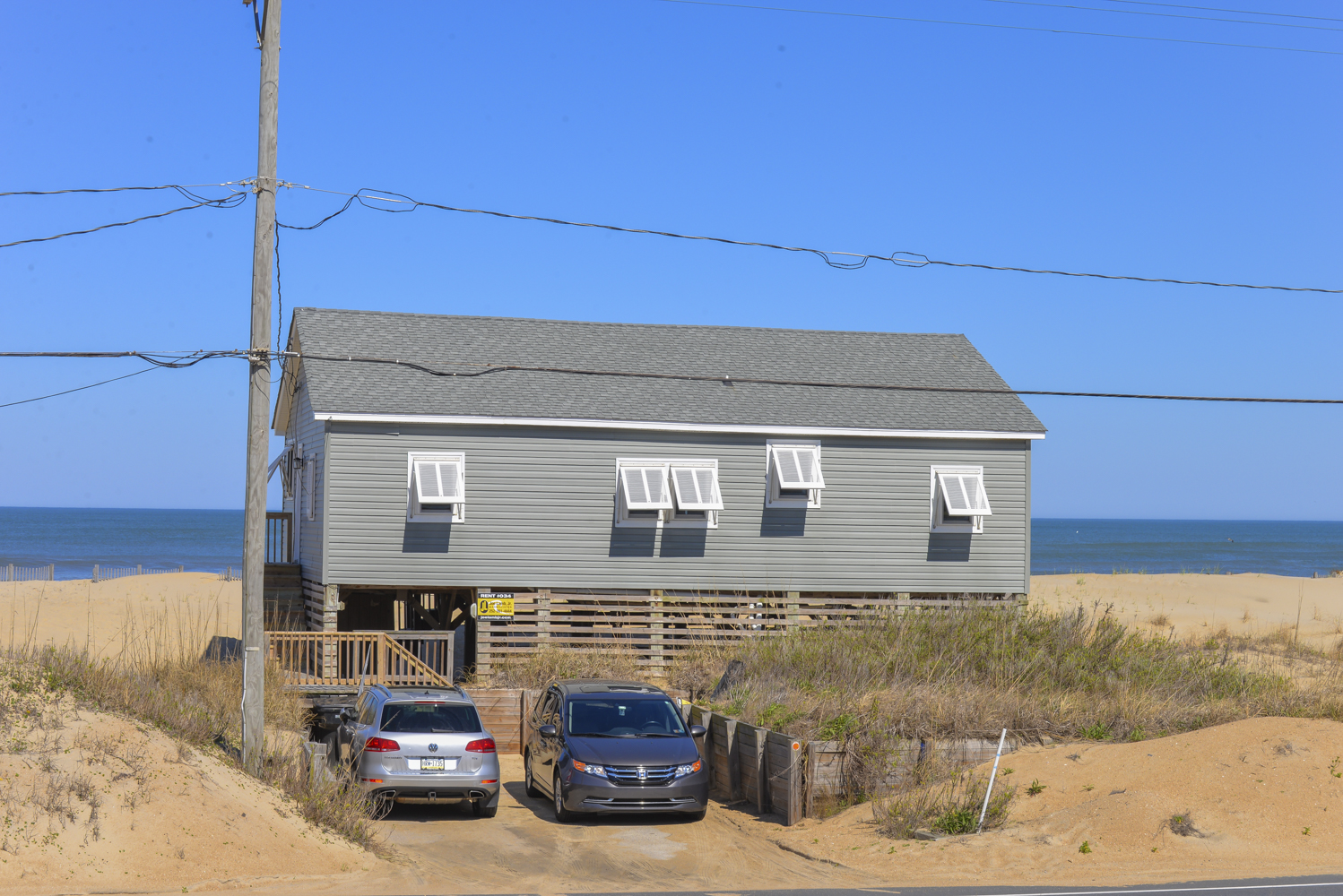 Ground Level: Parking for 3 Cars, Steps to Entry, Enclosed Outside Shower, Sand Path Over Dune to Beach, & Charcoal Grill.