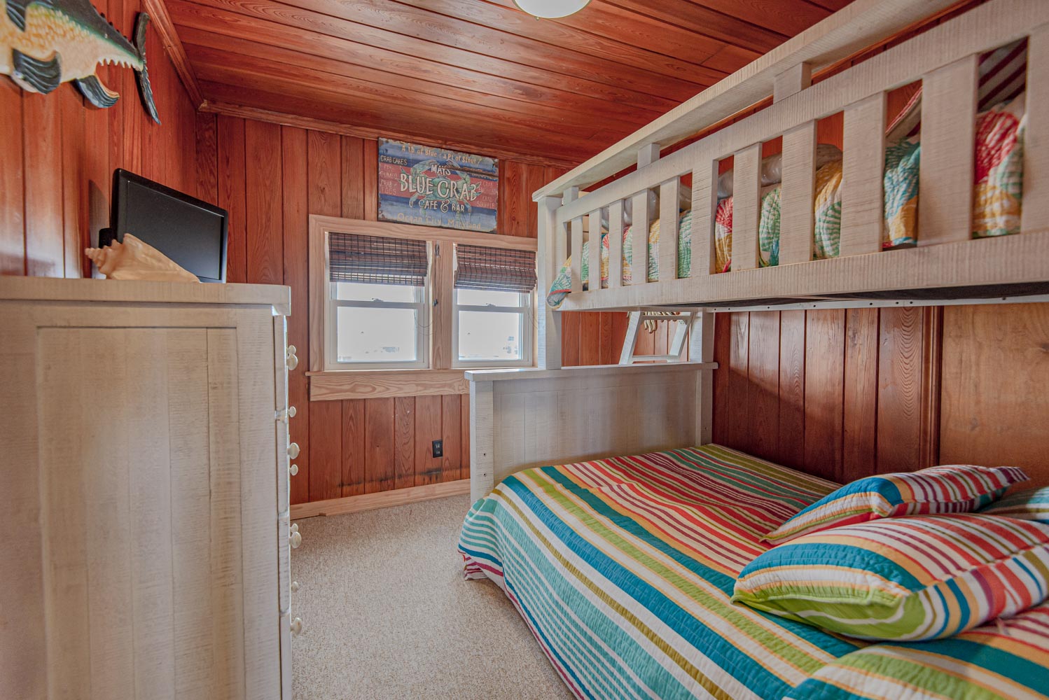 Main Level: Living/Dining/Kitchen Area, Flat Panel TV, 3 Bedrooms (1 w/Queen, Flat Panel TV; 1 w/2 Doubles, Flat Panel TV, Shared Full Bath w/Walk-In Shower; 1 w/Duo Bunk, Flat Panel TV), Full Hall Bath w/Tub/Shower, Screened Porch w/Furniture, & Great Views of the Ocean & Beach.