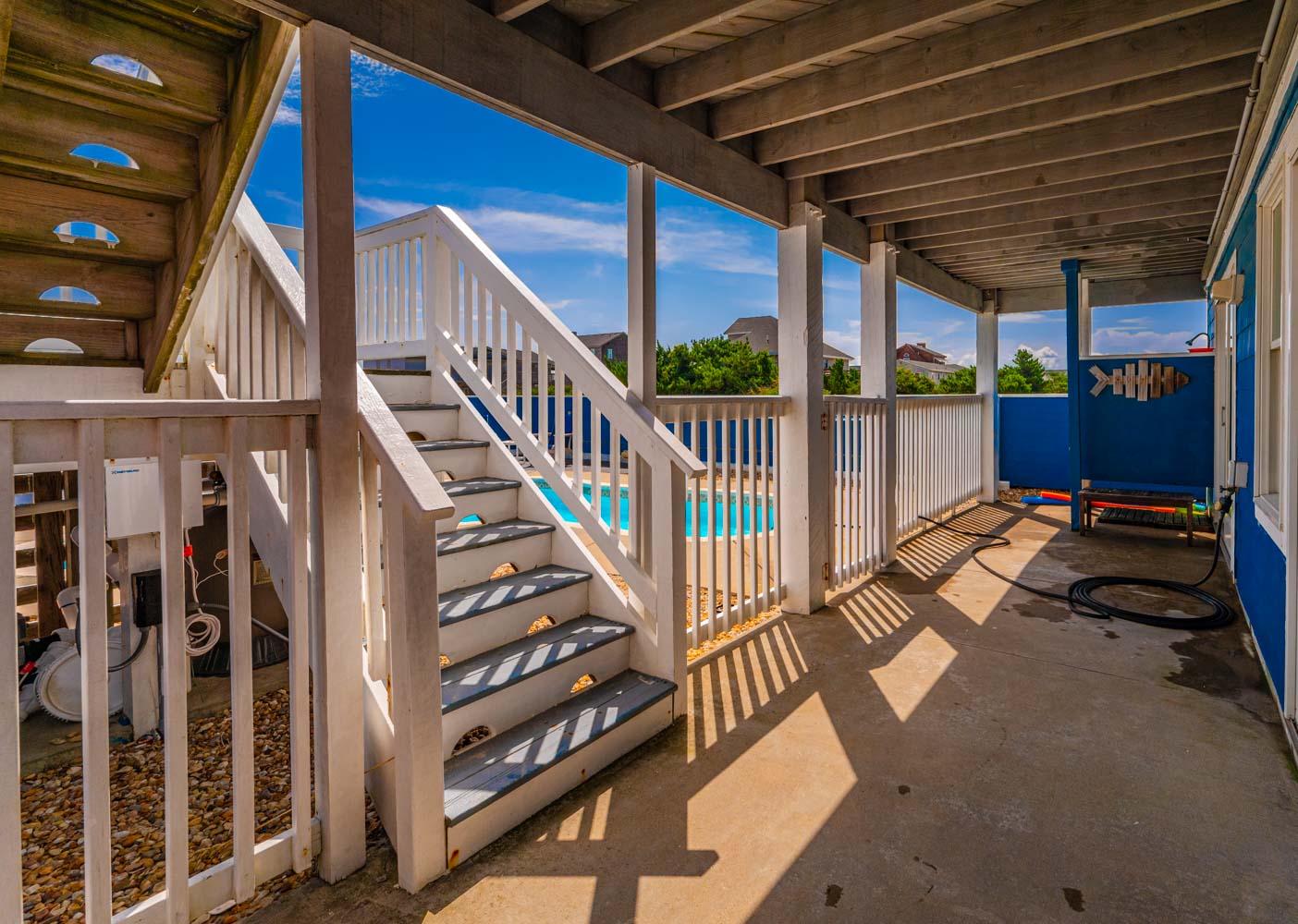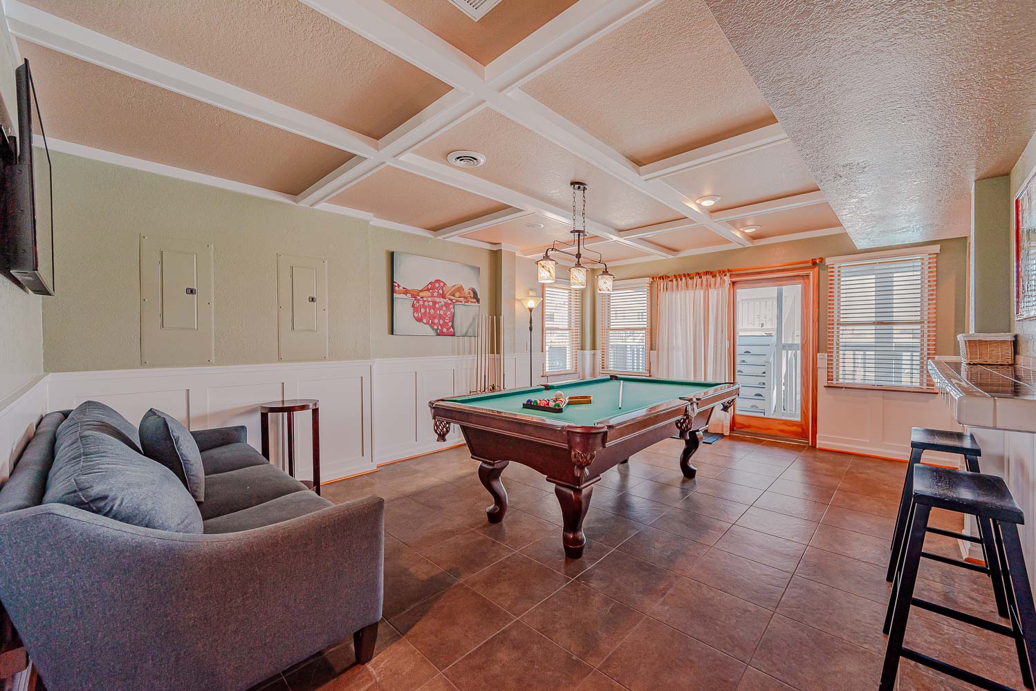 Ground Level: Parking for 6 Cars, Covered Entry, Rec. Room w/Pool Table, TV, Wet Bar, Mini-Refrigerator; 1 Bedroom w/Queen, Single; Access to Pool Patio Area w/Hot Tub, Private Swimming Pool - Open Seasonally, Enclosed Outside Shower, & Gas Grill.
