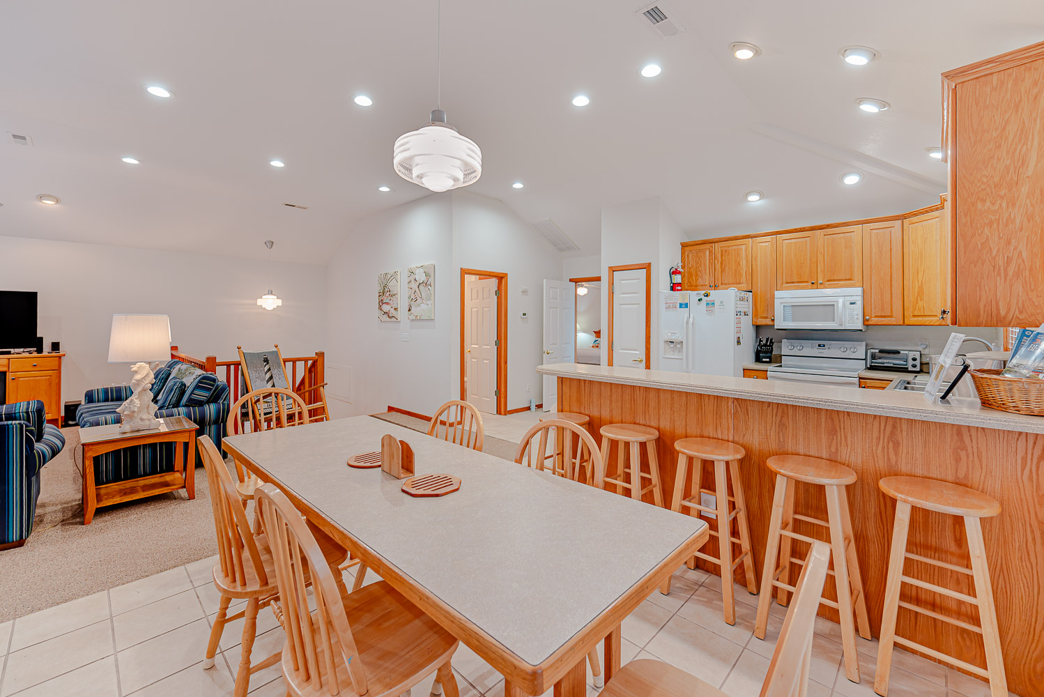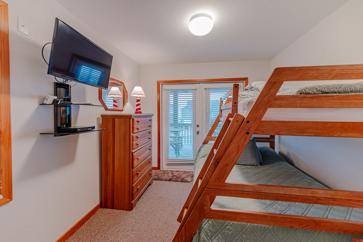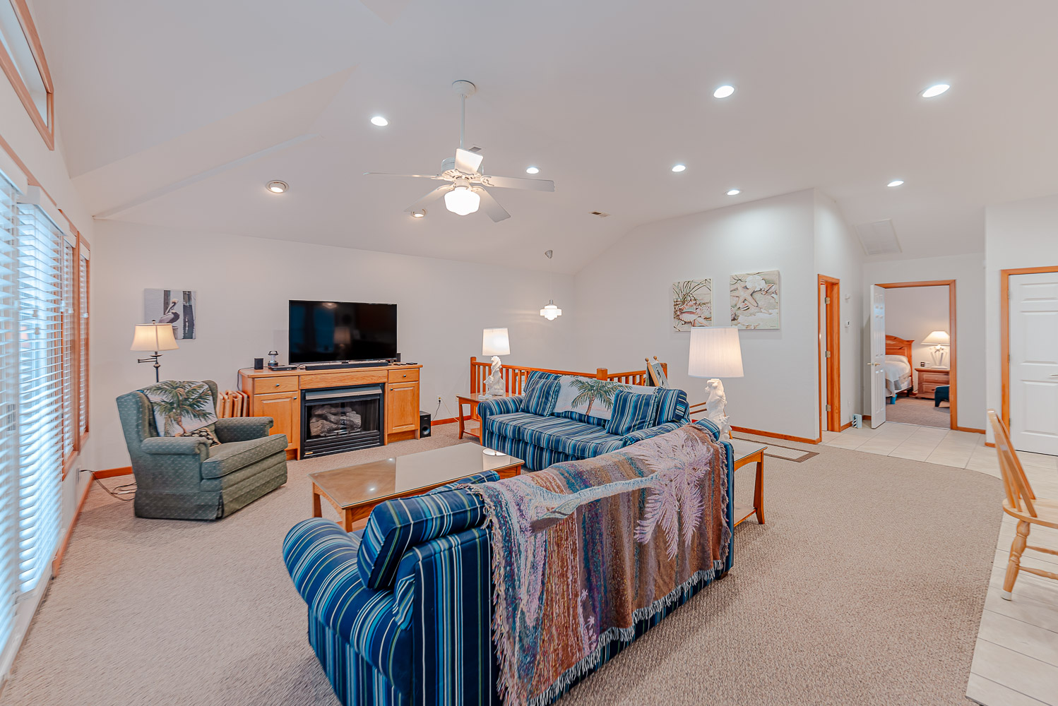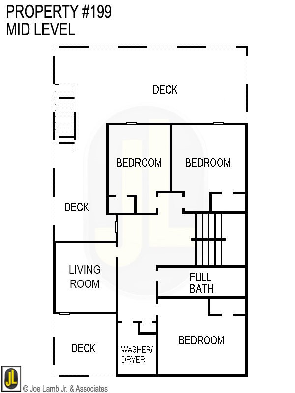 Mid Level: 3 Bedrooms (1 w/Queen, Smart TV, DVD; 2 w/Duo Bunk, Smart TVs, DVDs), Full Bath, Den, Large Flat Screen TV, Covered Deck w/Furniture and Ocean Views, and Covered Deck w/Furniture Overlooking Pool Area.