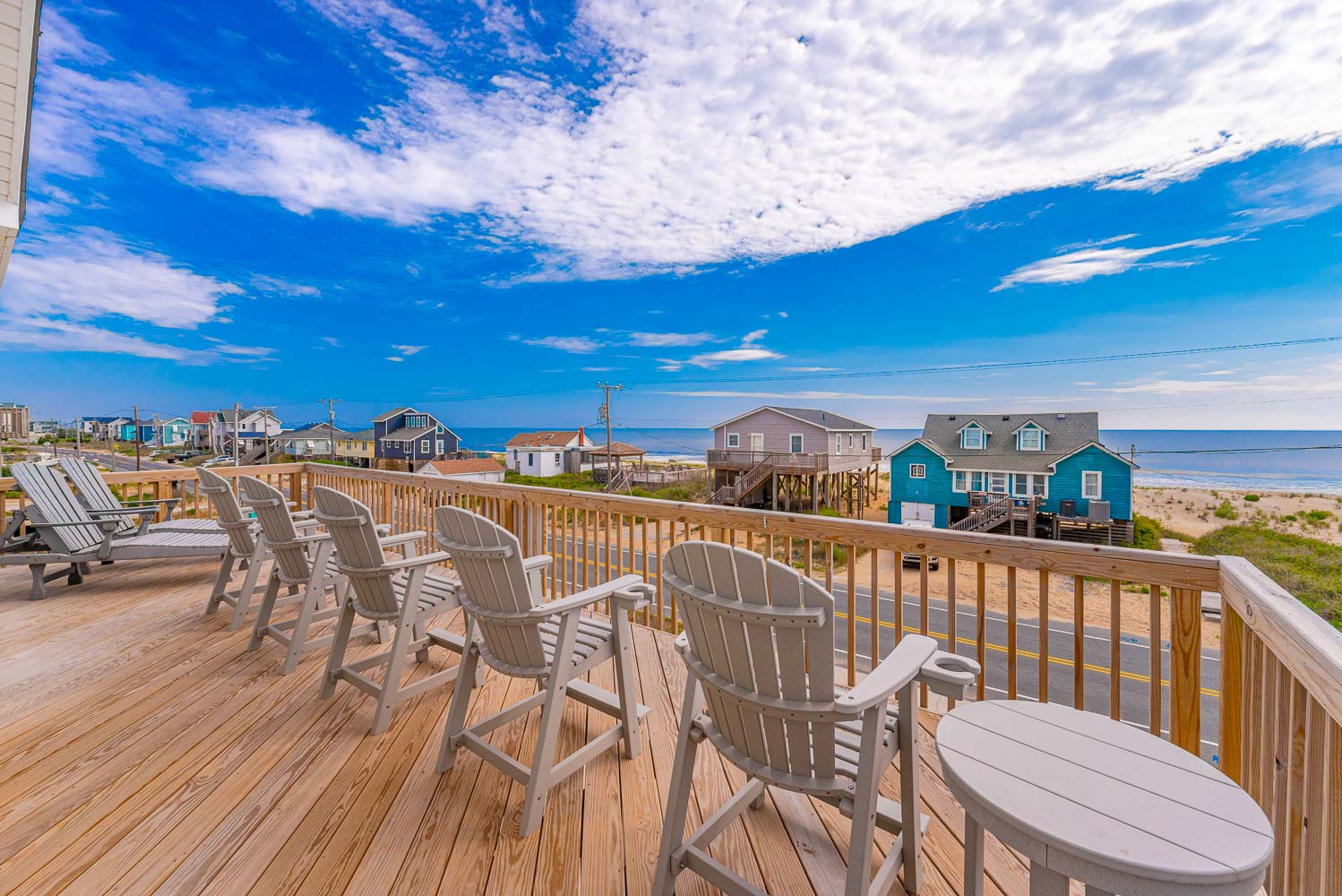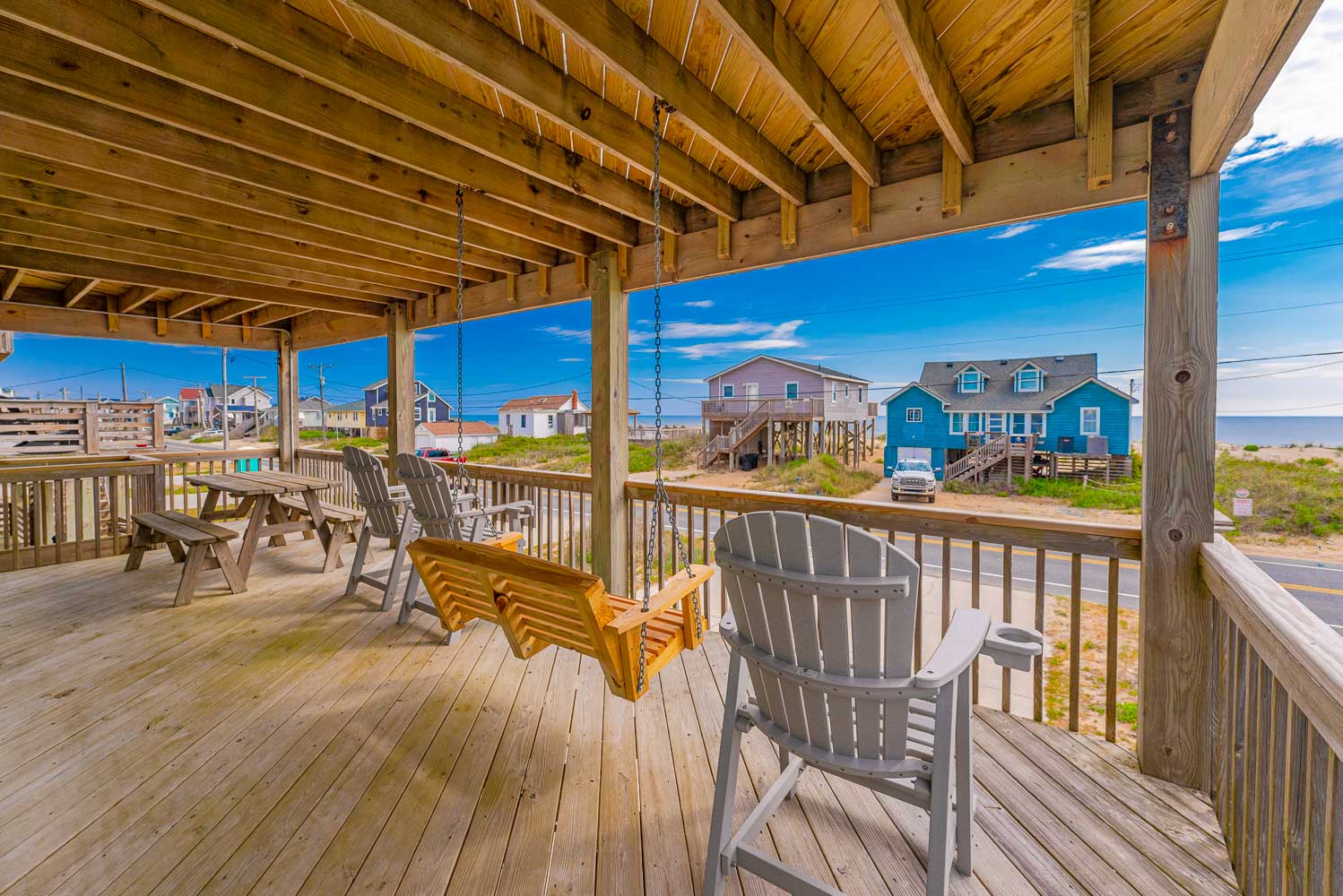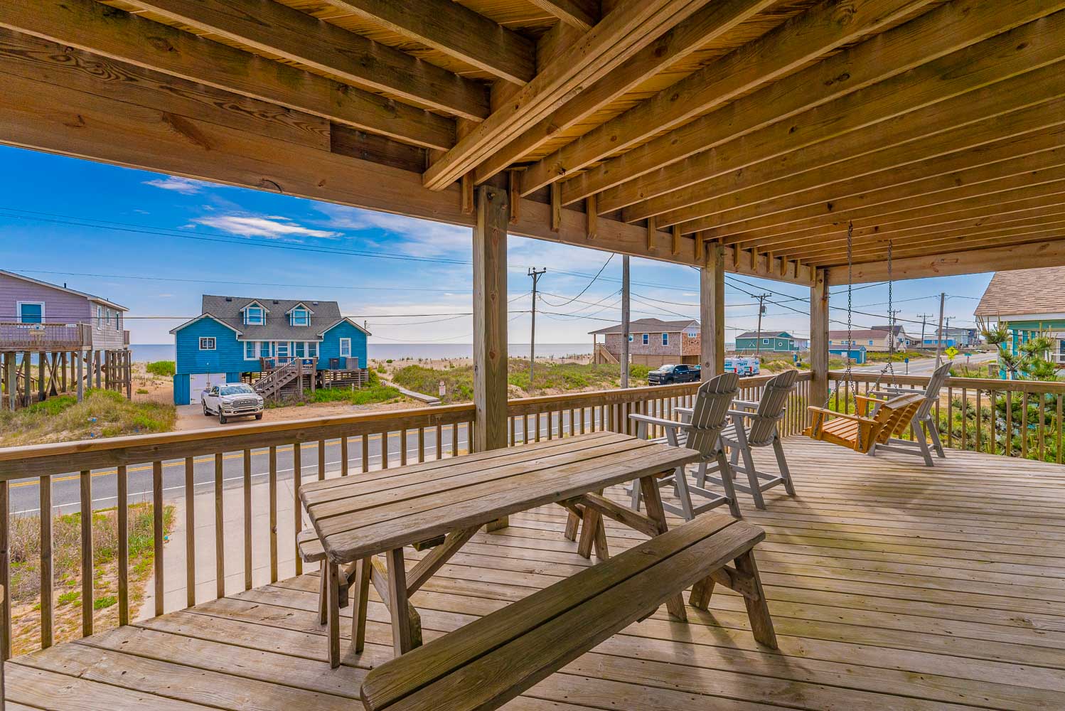 Top Level: Lovely Great Room w/Smart TV, DVD, Outstanding Ocean Views, Kitchen Area, Dining Area, Half Bath, Private Suite w/King, Smart TV, DVD, Full Bath w/Jacuzzi Tub; Screen Porch w/Furniture, Sun Deck w/Furniture and Beautiful Ocean Views, and Sun Deck w/Furniture.