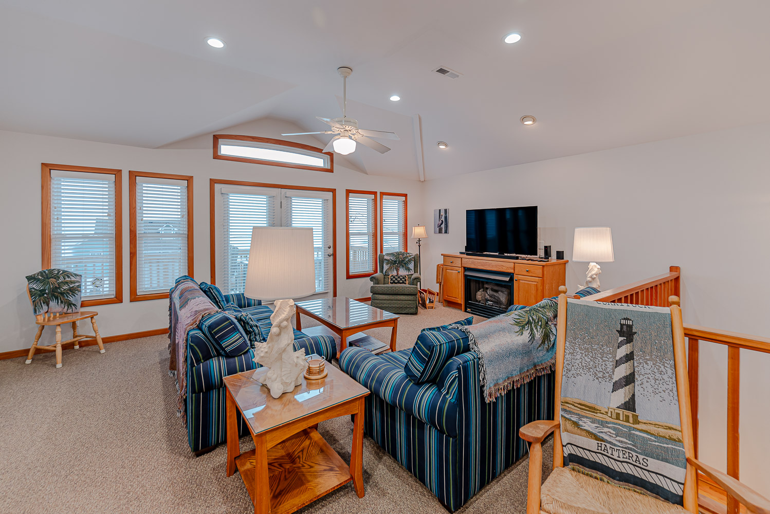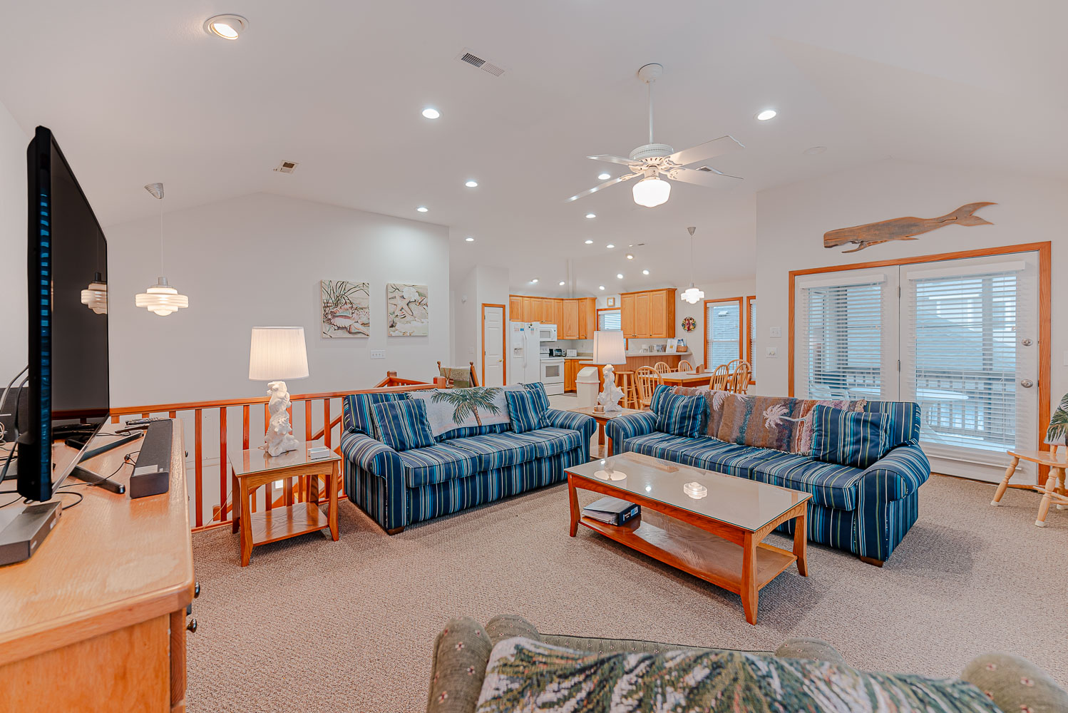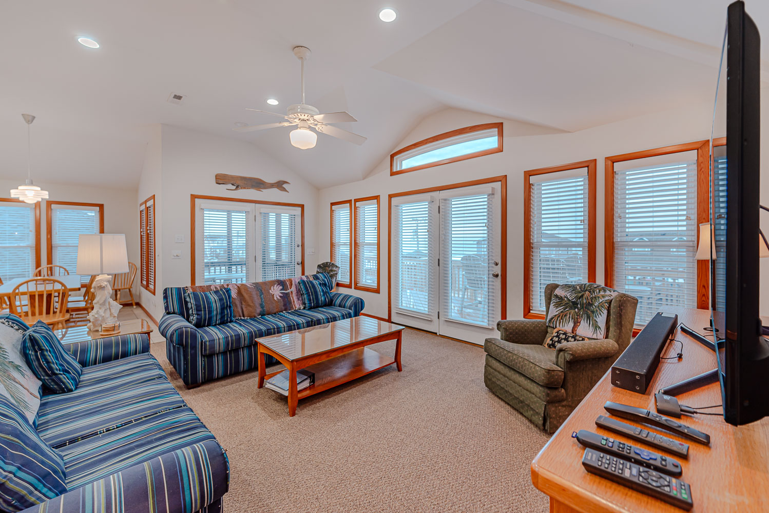 Top Level: Lovely Great Room w/Smart TV, DVD, Outstanding Ocean Views, Kitchen Area, Dining Area, Half Bath, Private Suite w/King, Smart TV, DVD, Full Bath w/Jacuzzi Tub; Screen Porch w/Furniture, Sun Deck w/Furniture and Beautiful Ocean Views, and Sun Deck w/Furniture.